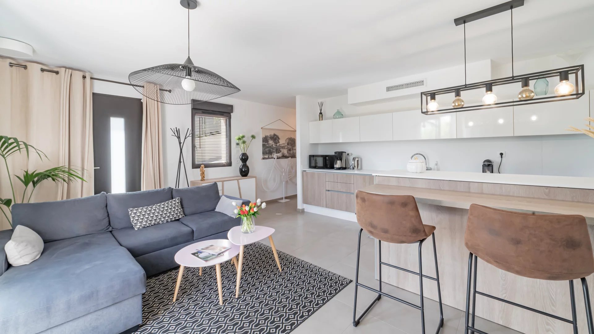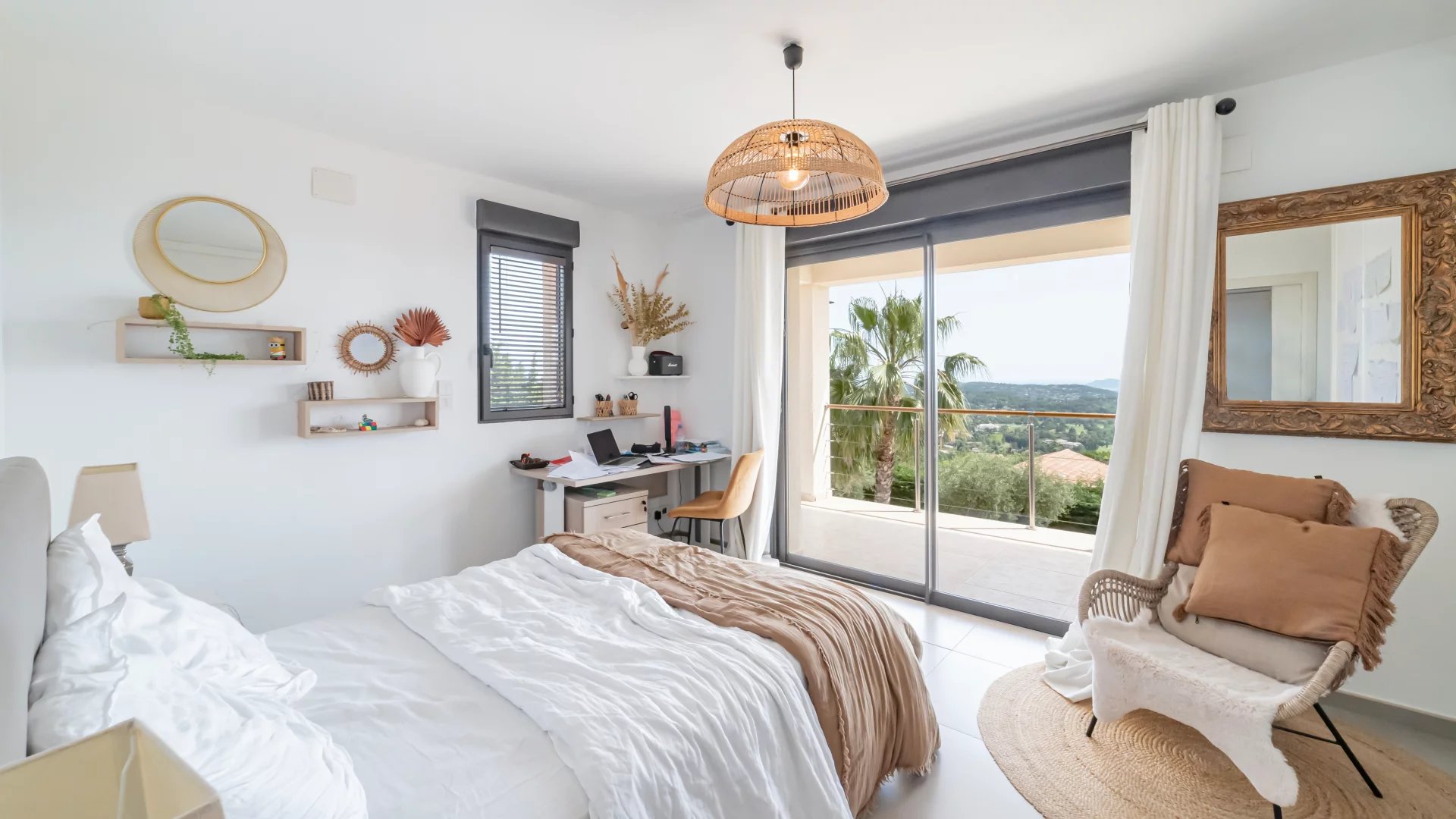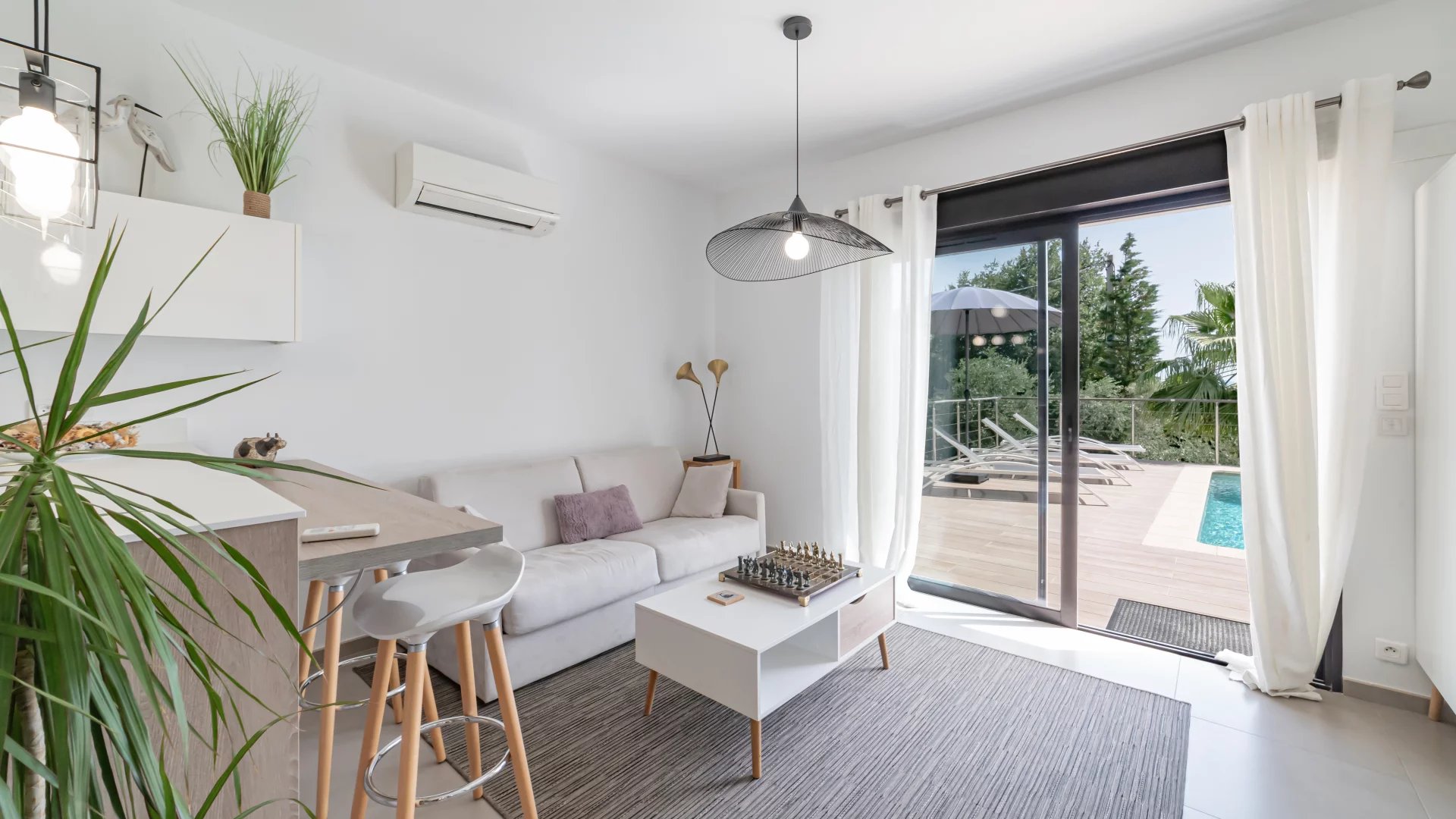 Ground Floor: 1 bedroom apartment with bedroom, bathroom, separate toilet, kitchen, laundry room, large wine cellar; Fully-equipped gym, Boules court, vehicle charging station, large parking area and fully paved driveway; Sprinkler system and automatic gate – Exterior lighting throughout the property, including the garden – Interior and exterior security cameras – Fiber optics and home automation for the entire villa – Integrated reversible air conditioning – Tiled infinity pool with self-cleaning system.