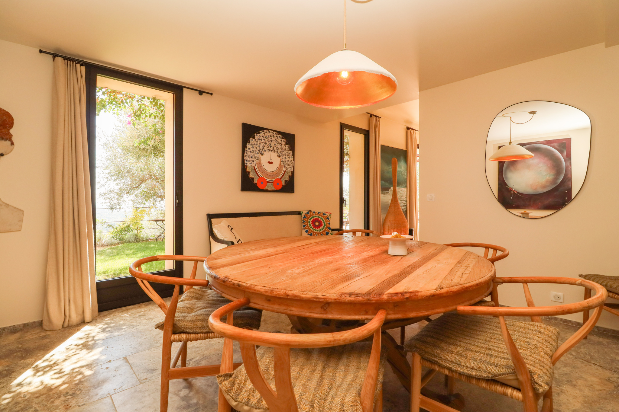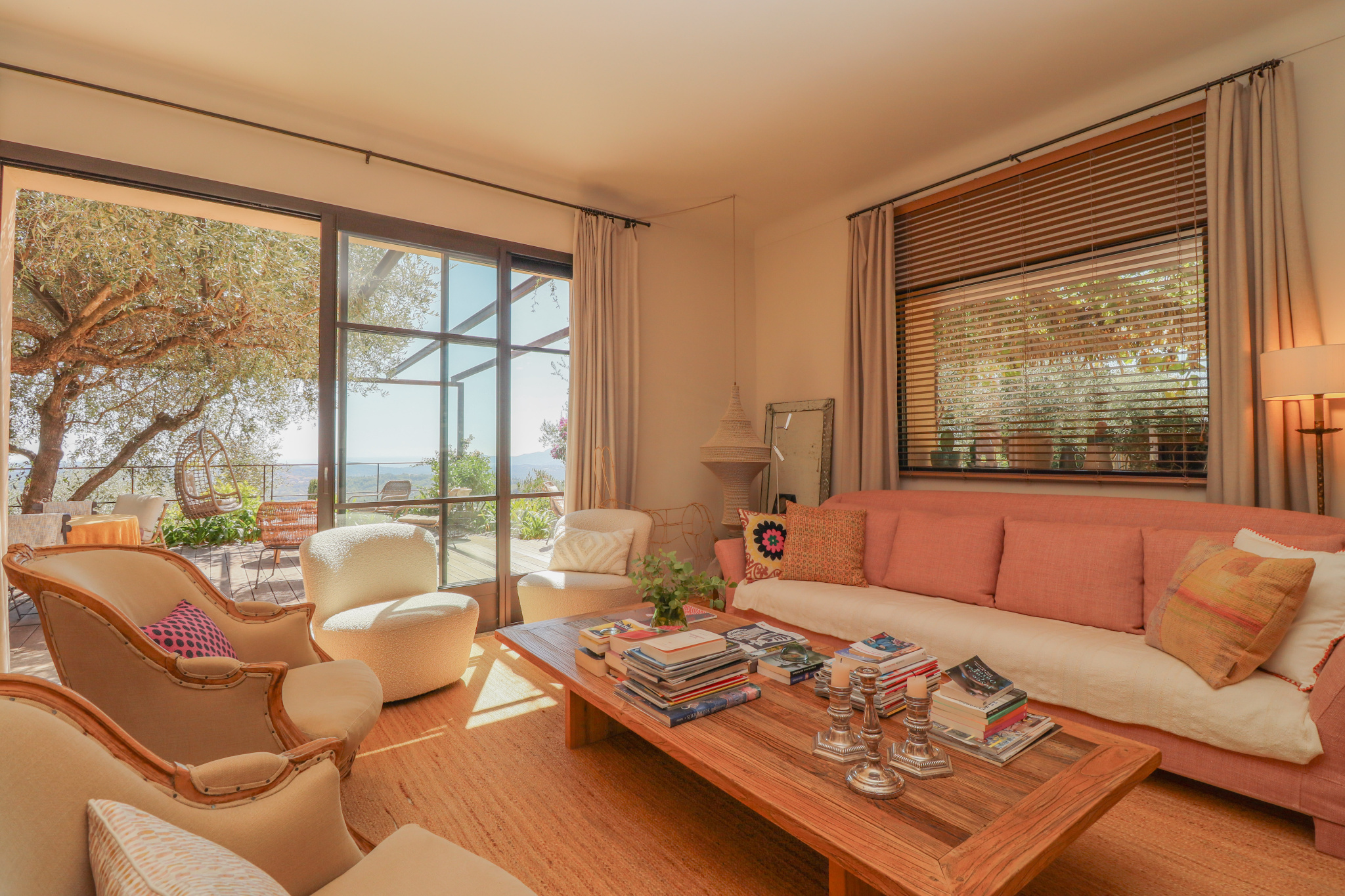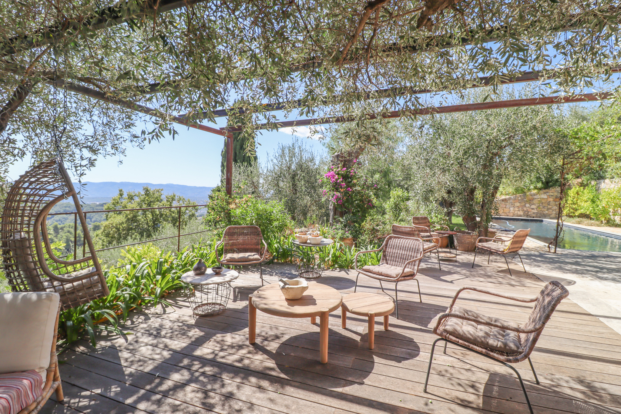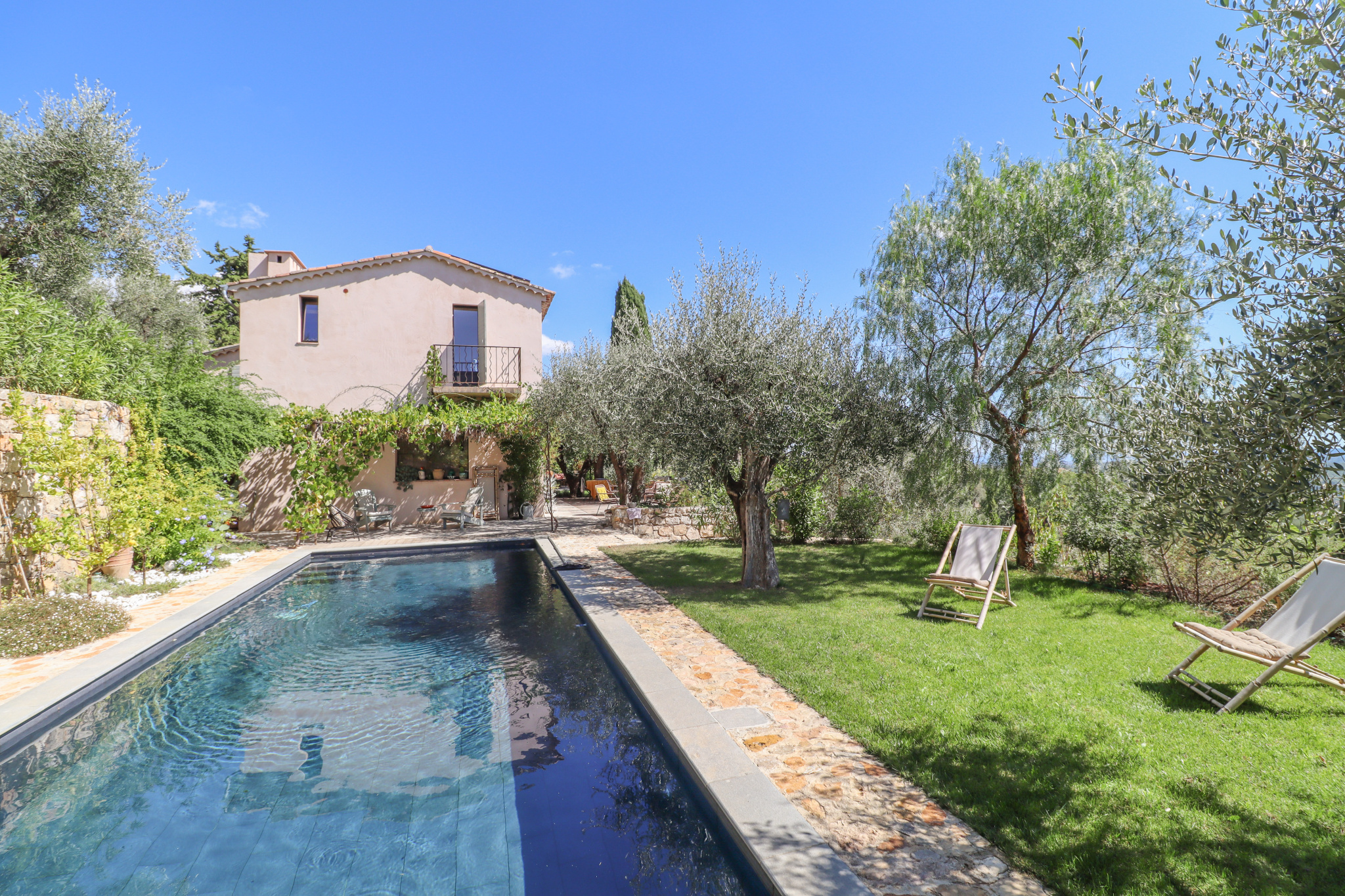 This property stands out for its panoramic sea view, the quality of its renovation carried out under the supervision of the French Heritage Authorities (*Batiments de France*), its generous volumes, and its refined finishes. It is set in a quiet and sought-after residential area, close to Valbonne, Opio, and all amenities.