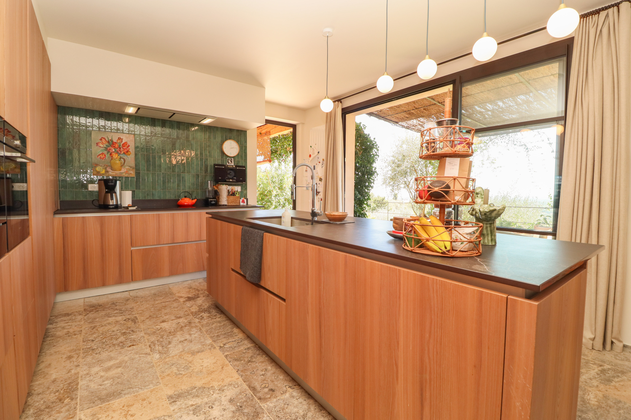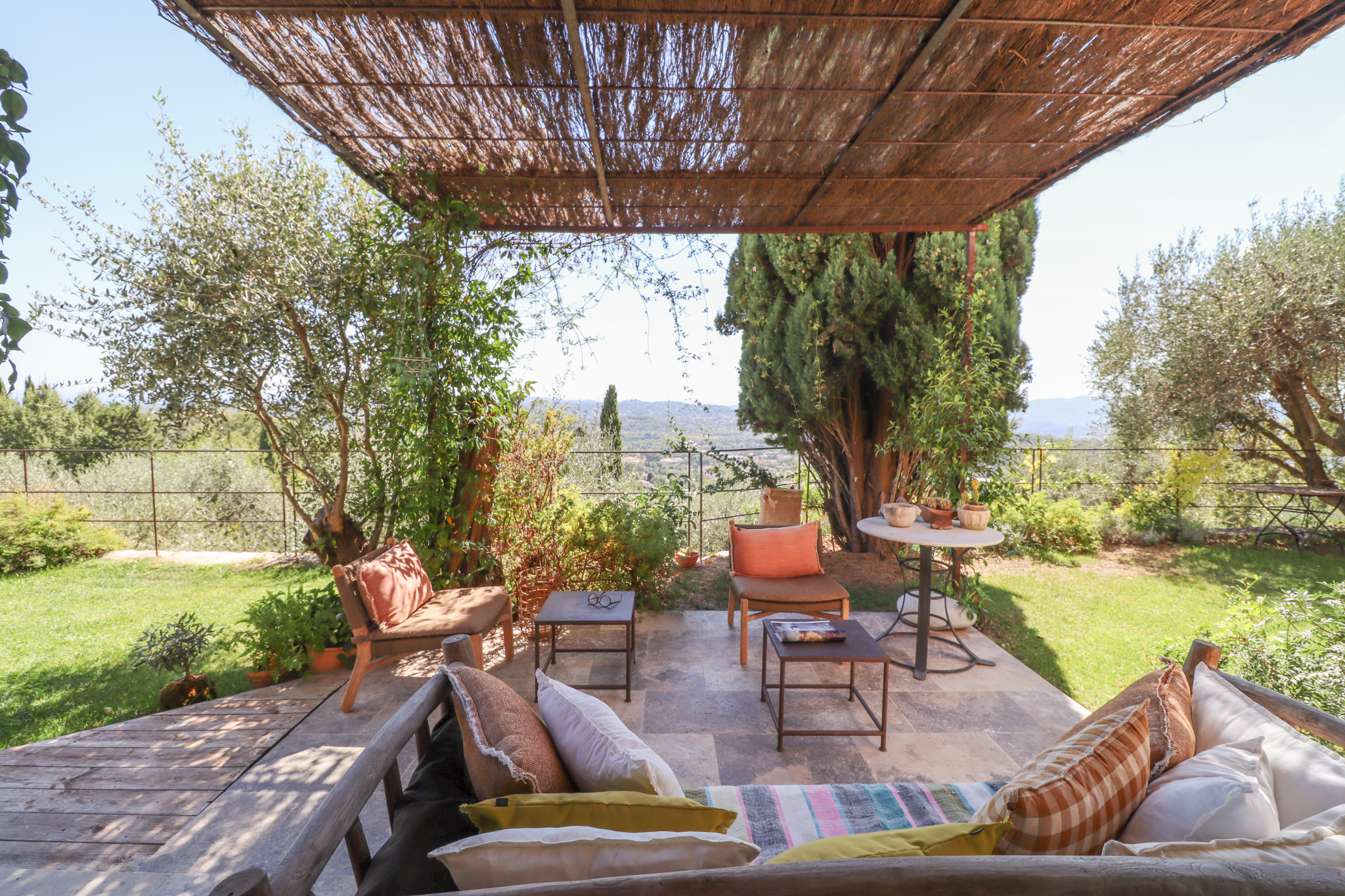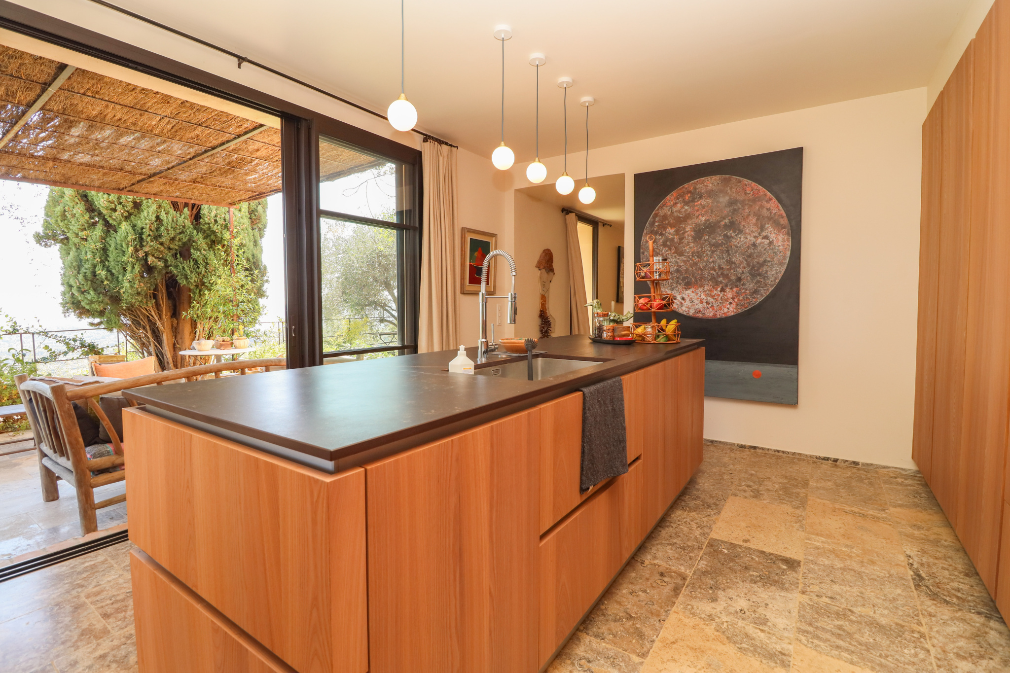 A covered terrace with summer kitchen, a workshop, and technical areas complete the property.
