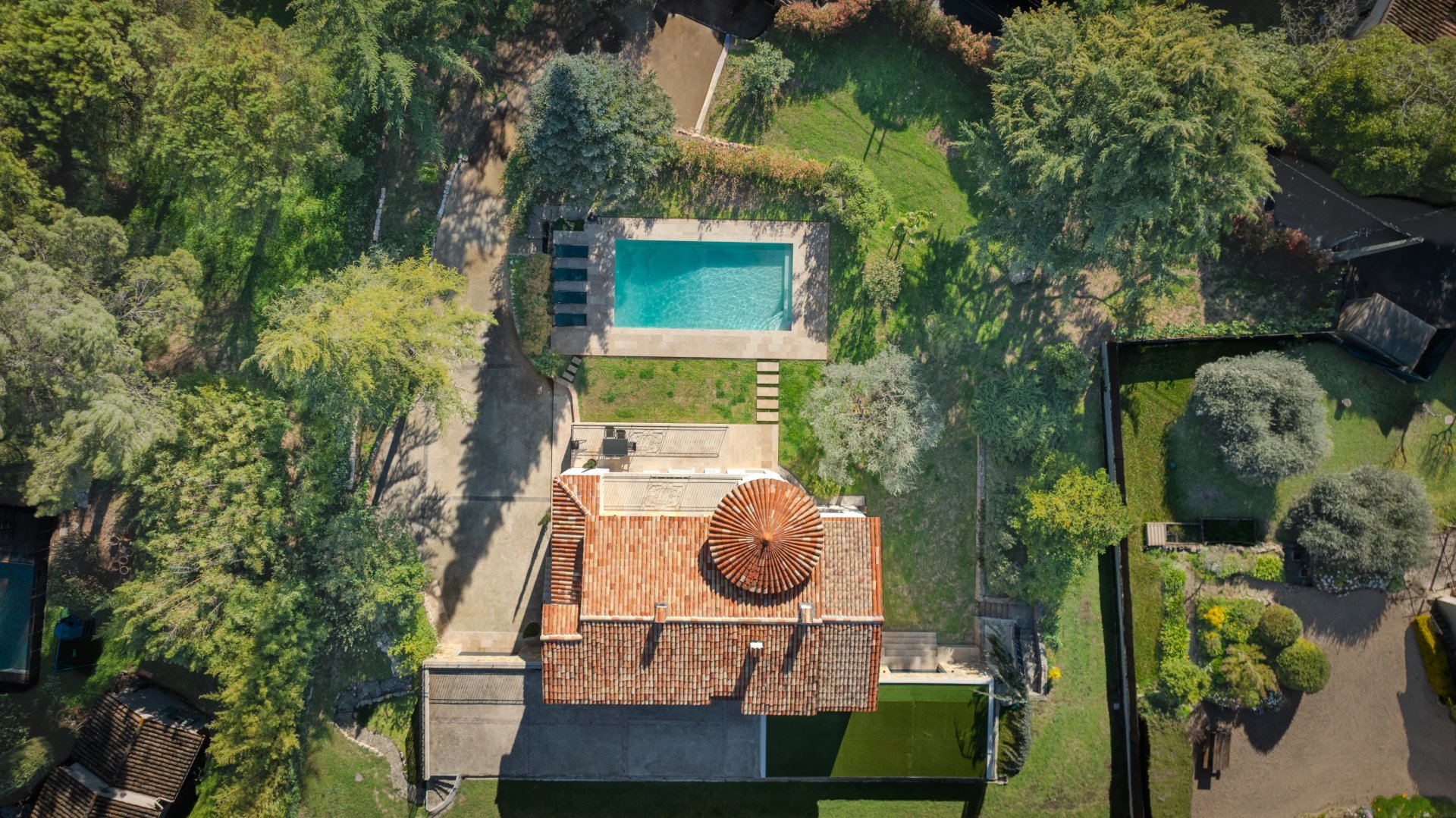 Built on a landscaped plot of 2,277 m2 the property benefits from an ideal southwest exposure and an unobstructed view of the surrounding countryside. A large swimming pool and an elegant courtyard complete this rare living environment.