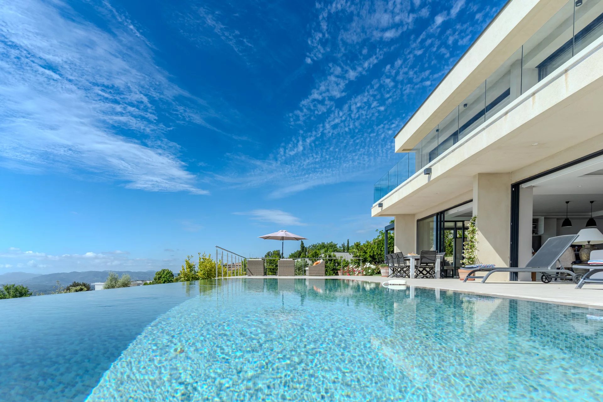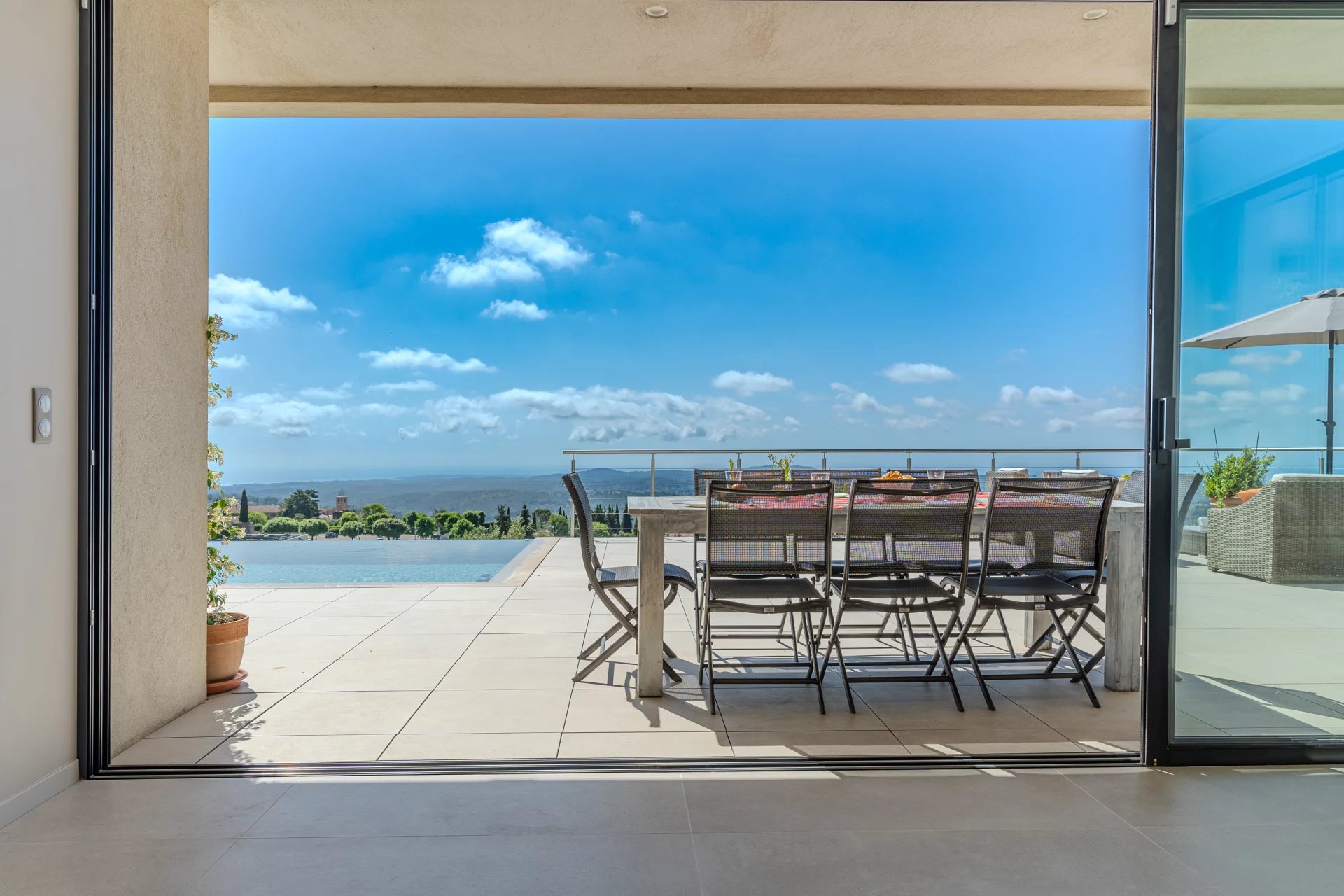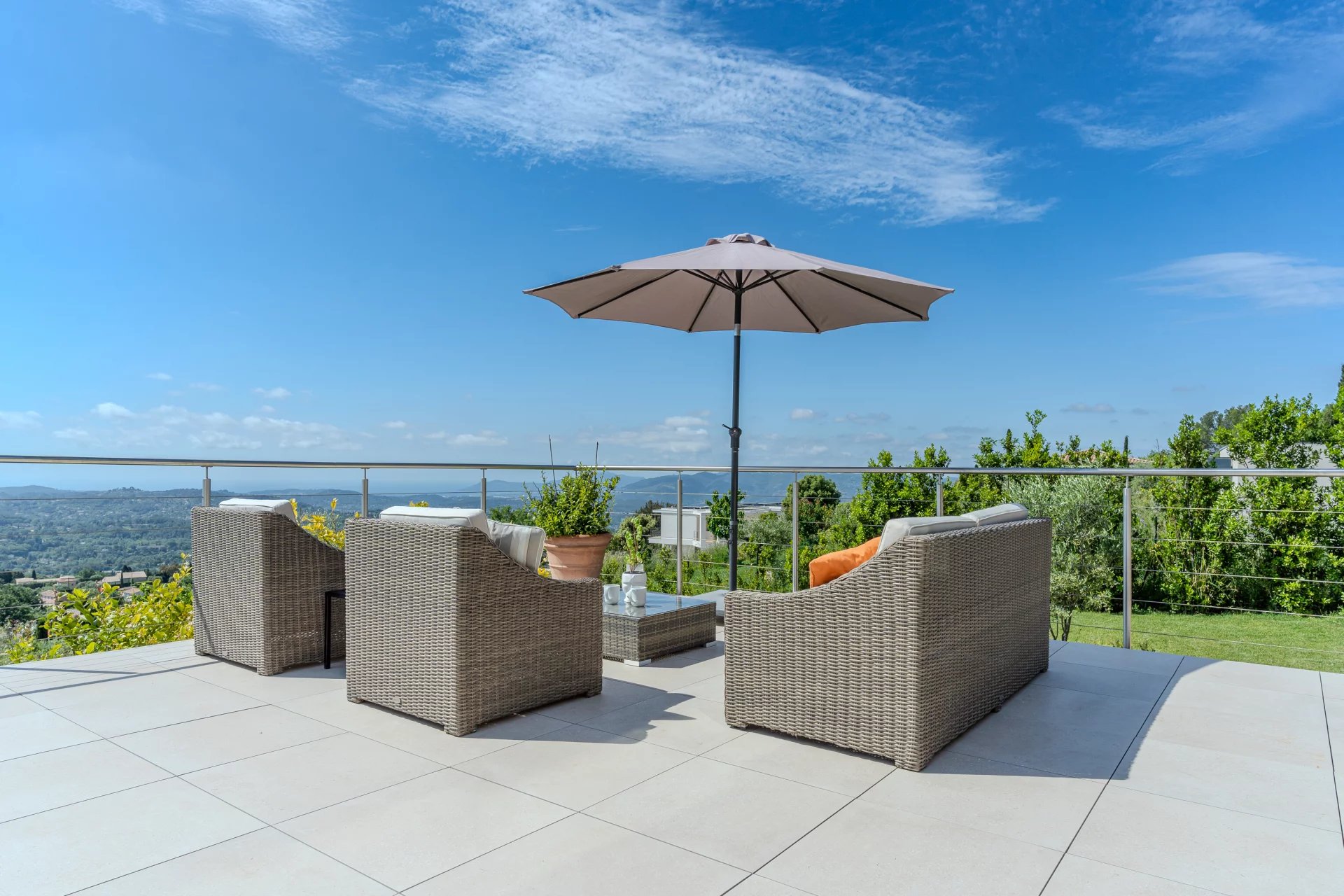 In the hills of Chateauneuf-Grasse, in a most peaceful setting, a sumptuous new-built villa within a small gated estate, conveniently located at a short walk from the village and its amenities.