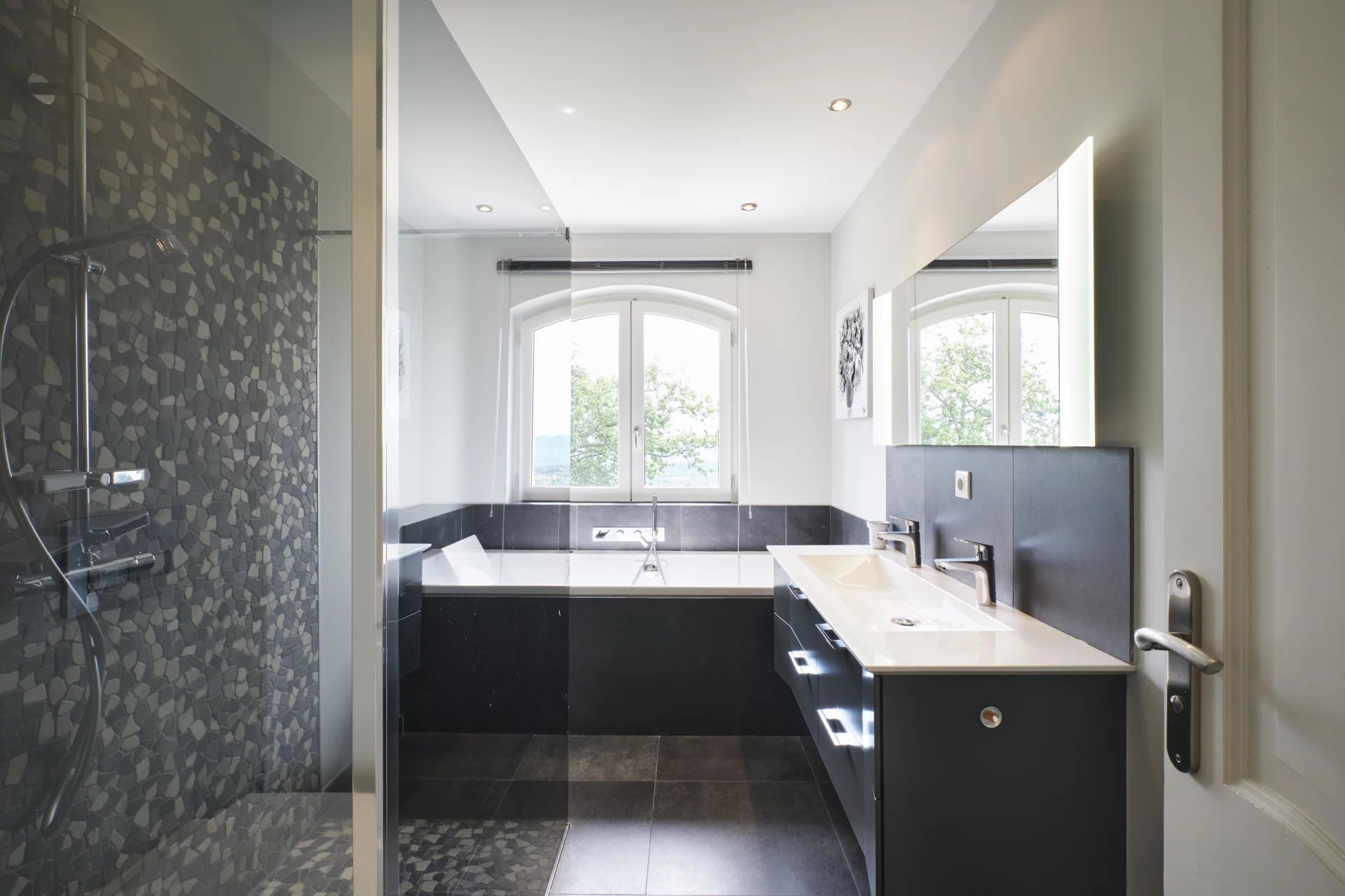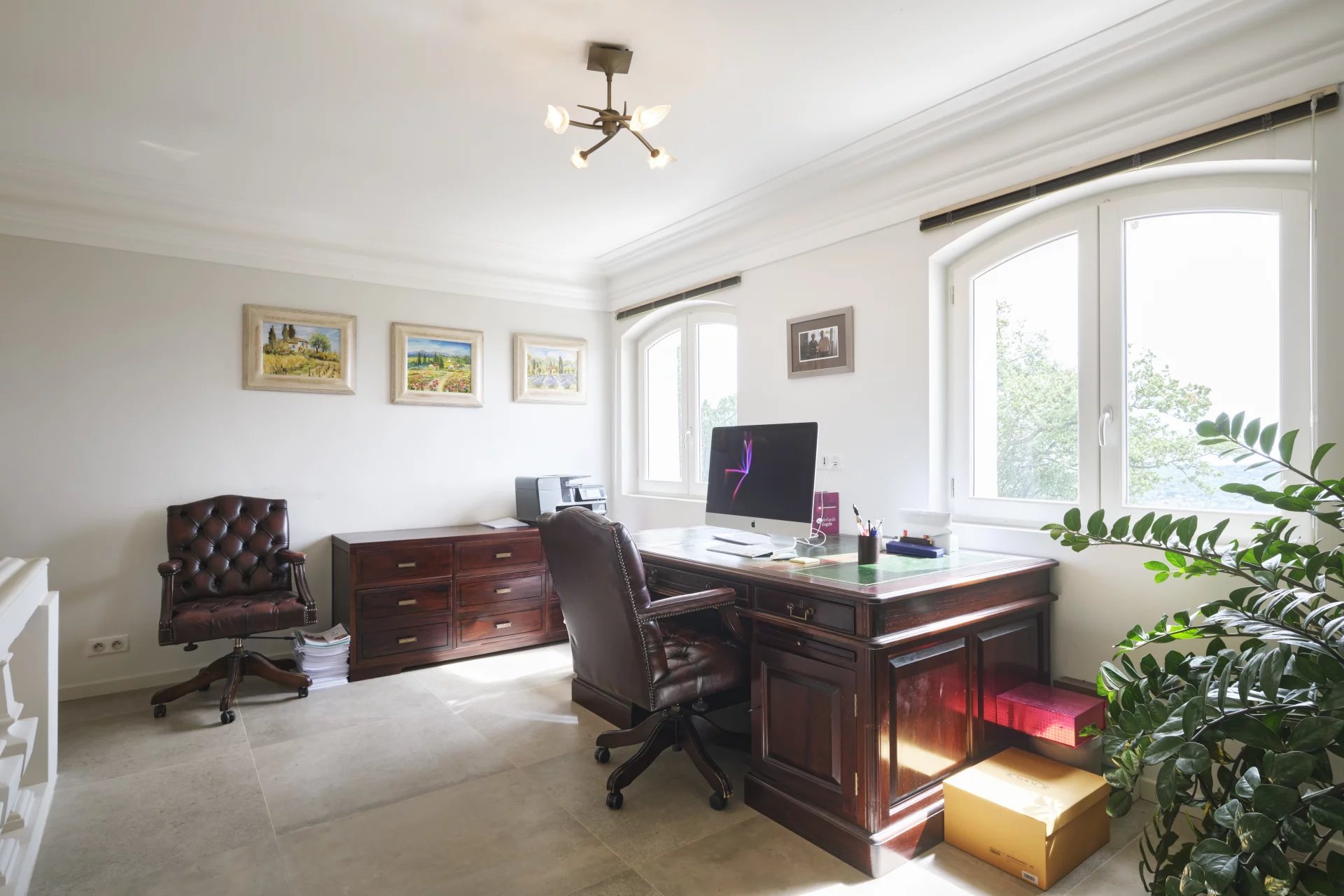A beautiful staircase leads to the first floor, where there is an open-plan study and a sun terrace from which you can enjoy the landscape of this charming region in peace and quiet. Two beautiful bedrooms, one with a romantic balcony, share a bathroom and could also be converted into an independent flat thanks to a separate access.