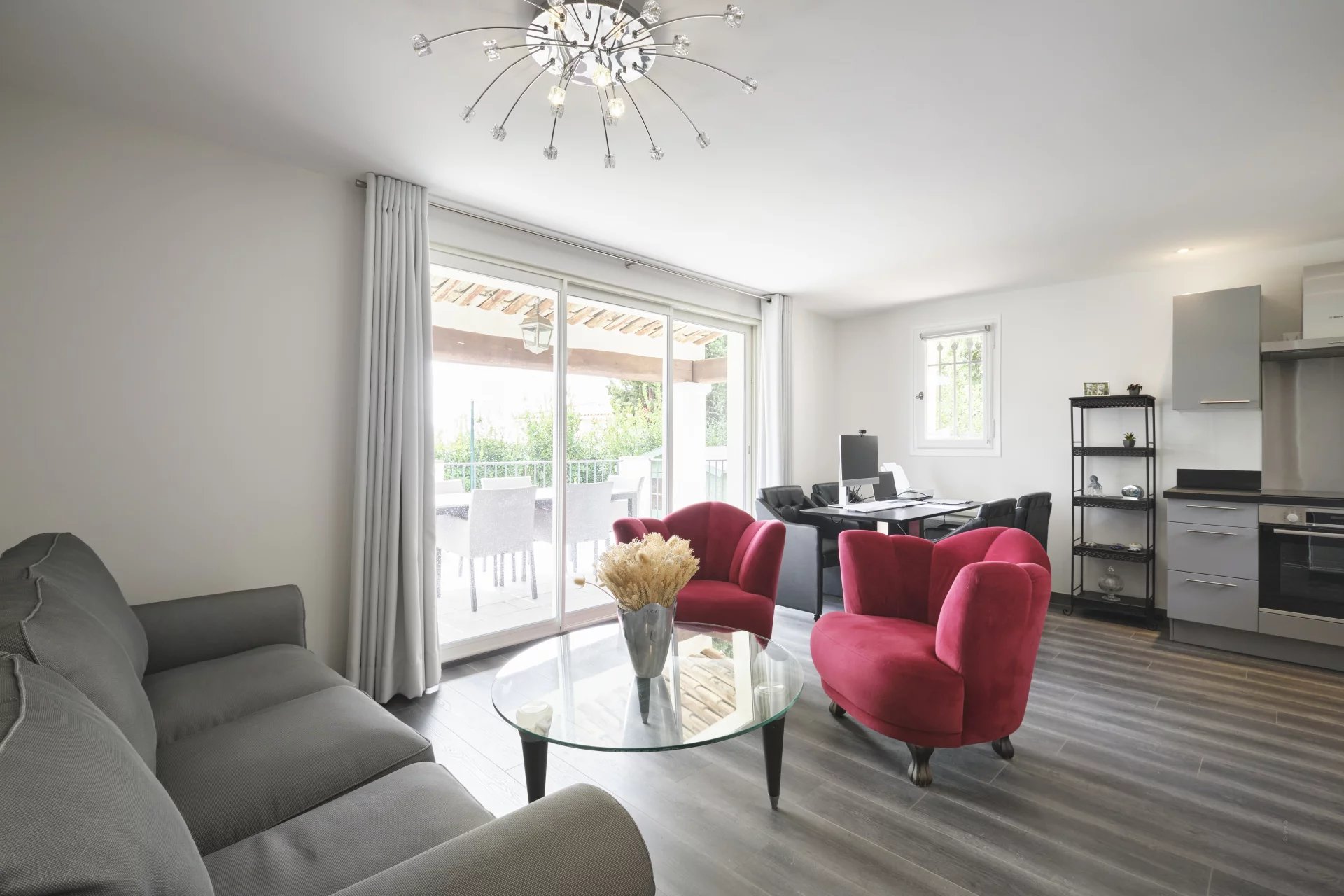 The guest house offers every comfort and has two bedrooms with en-suite bathrooms, a living room with an open-plan kitchen and direct access to a large covered terrace.