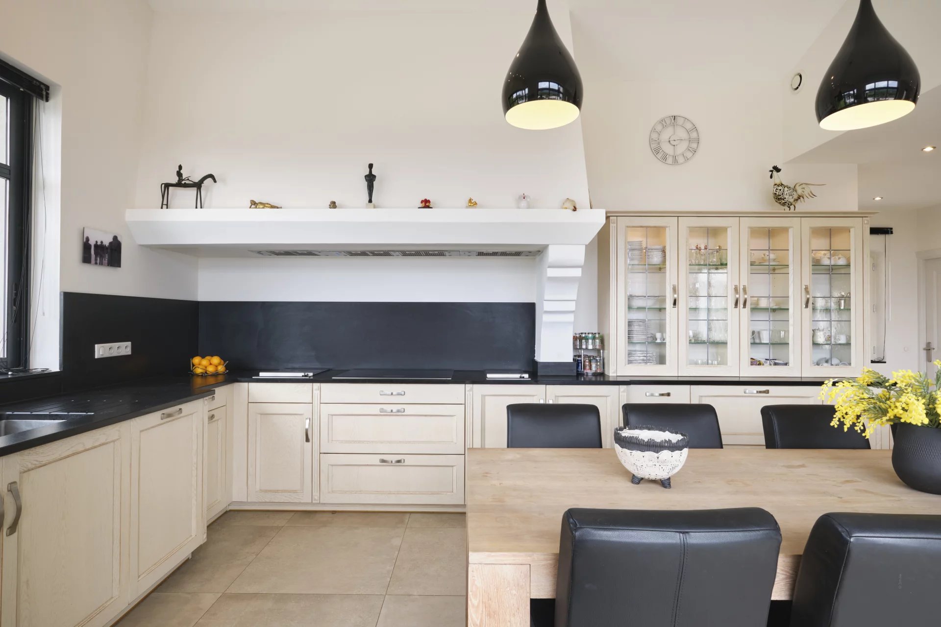 The large living room with a beautiful fireplace and large sliding doors opens directly onto a magnificent covered terrace. The high-quality kitchen is surrounded by sliding doors and windows and offers a spacious dining area, ideal for enjoying the Mediterranean culinary lifestyle with friends and family. An additional living room, currently used as a TV room, and a utility room complete this level.