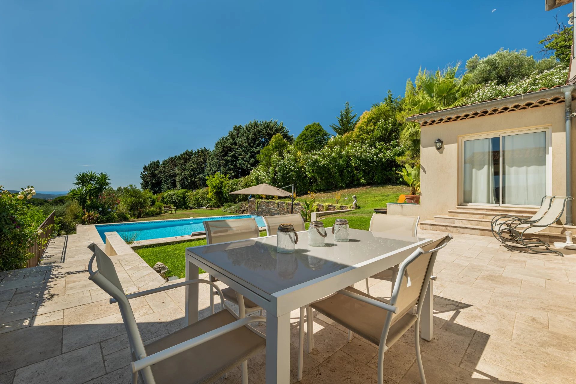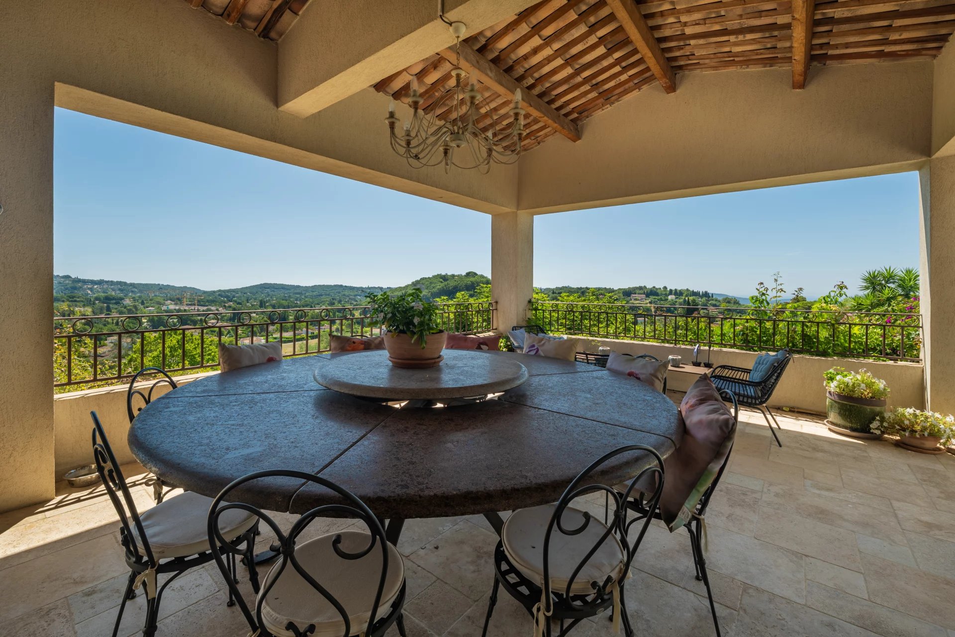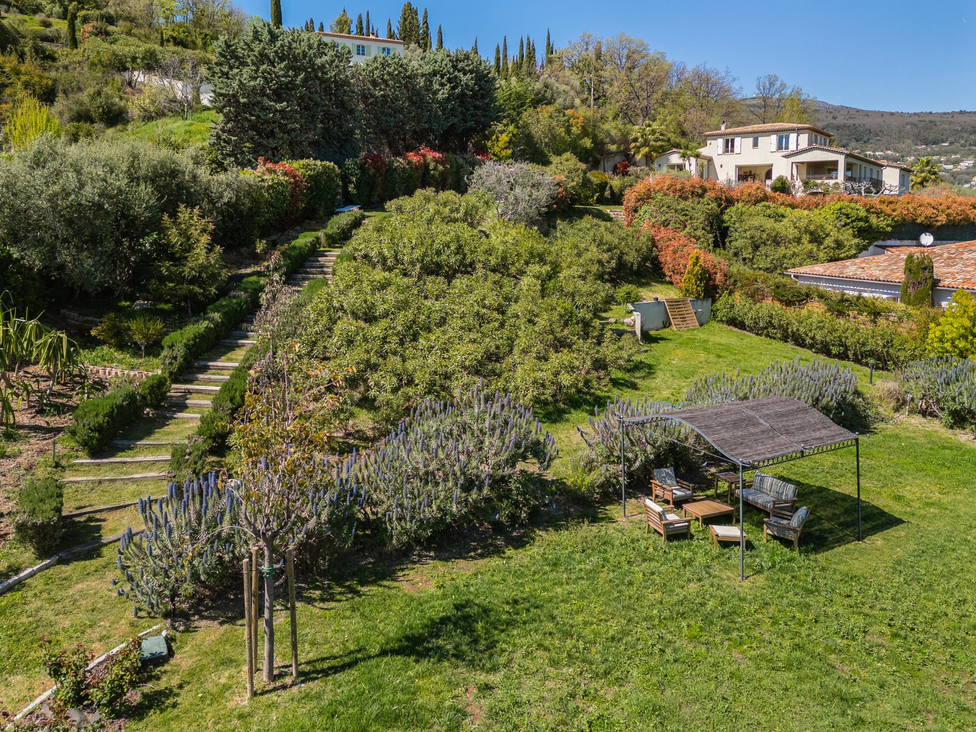 Perched in a commanding position yet quietly tucked away, this bright and elegant 305 m2 villa offers exceptional panoramic vistas, including glimpses of the sea, on a gently sloping plot of 5,839 m2. The property offers a main house and independent fully equipped studio.