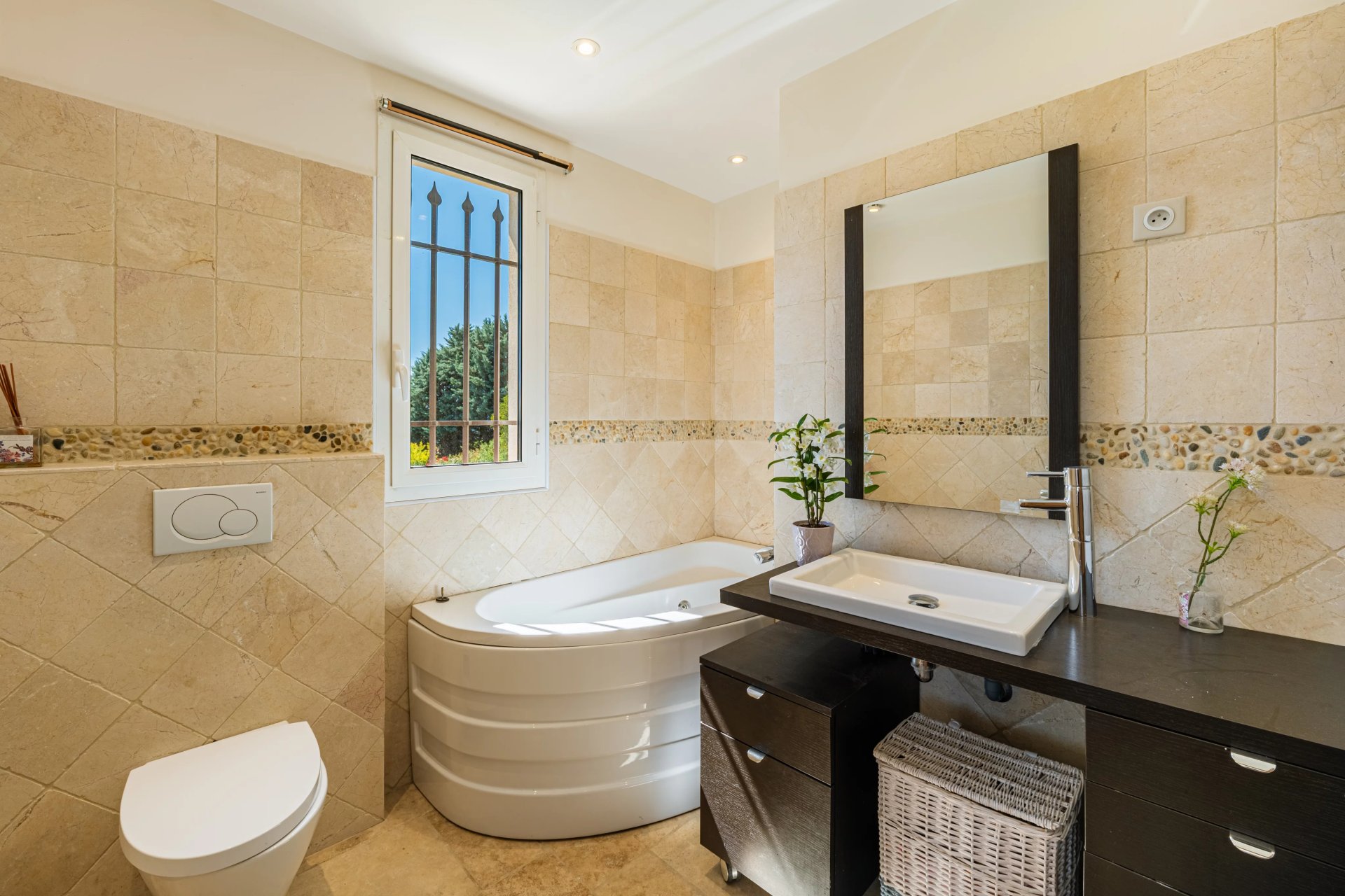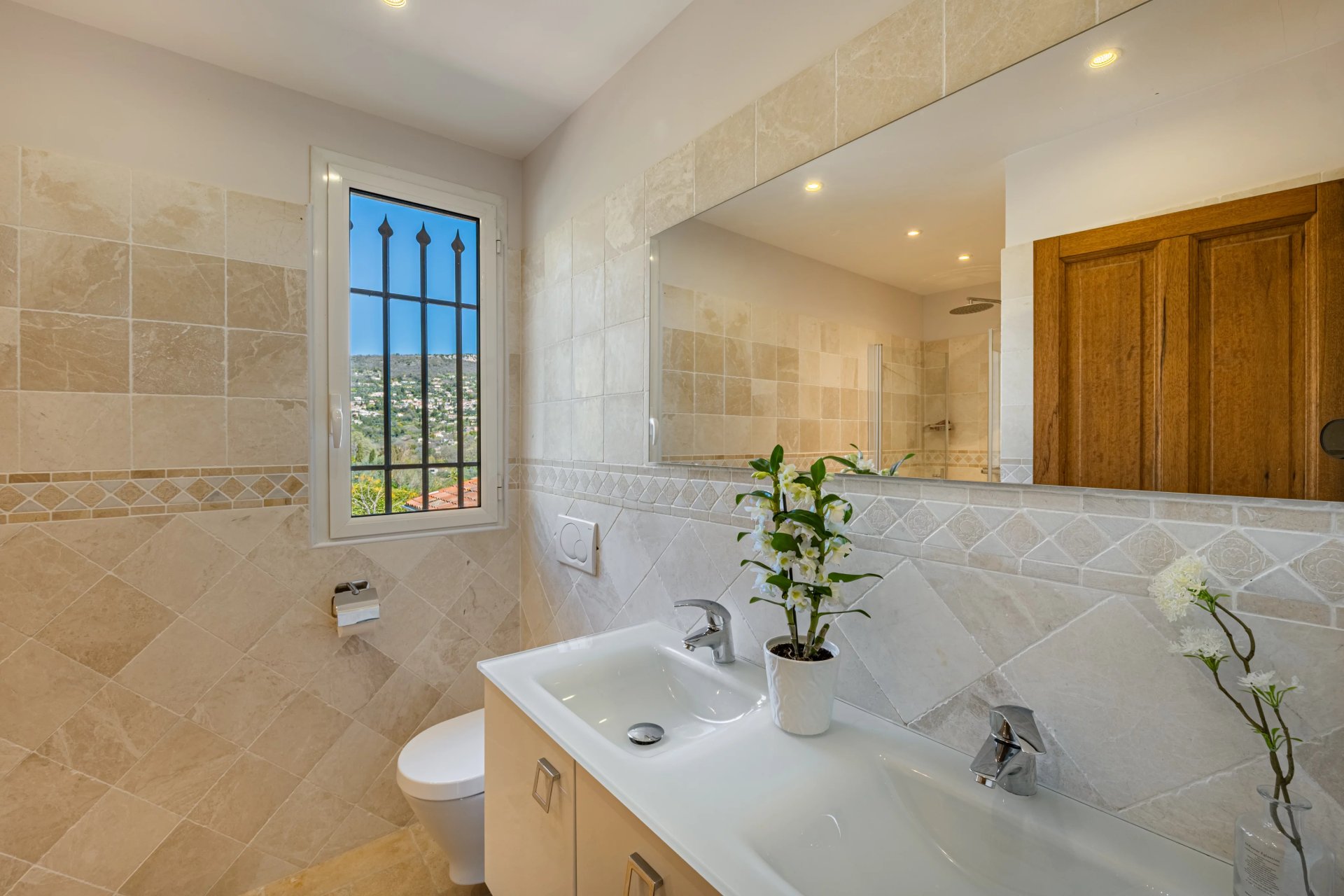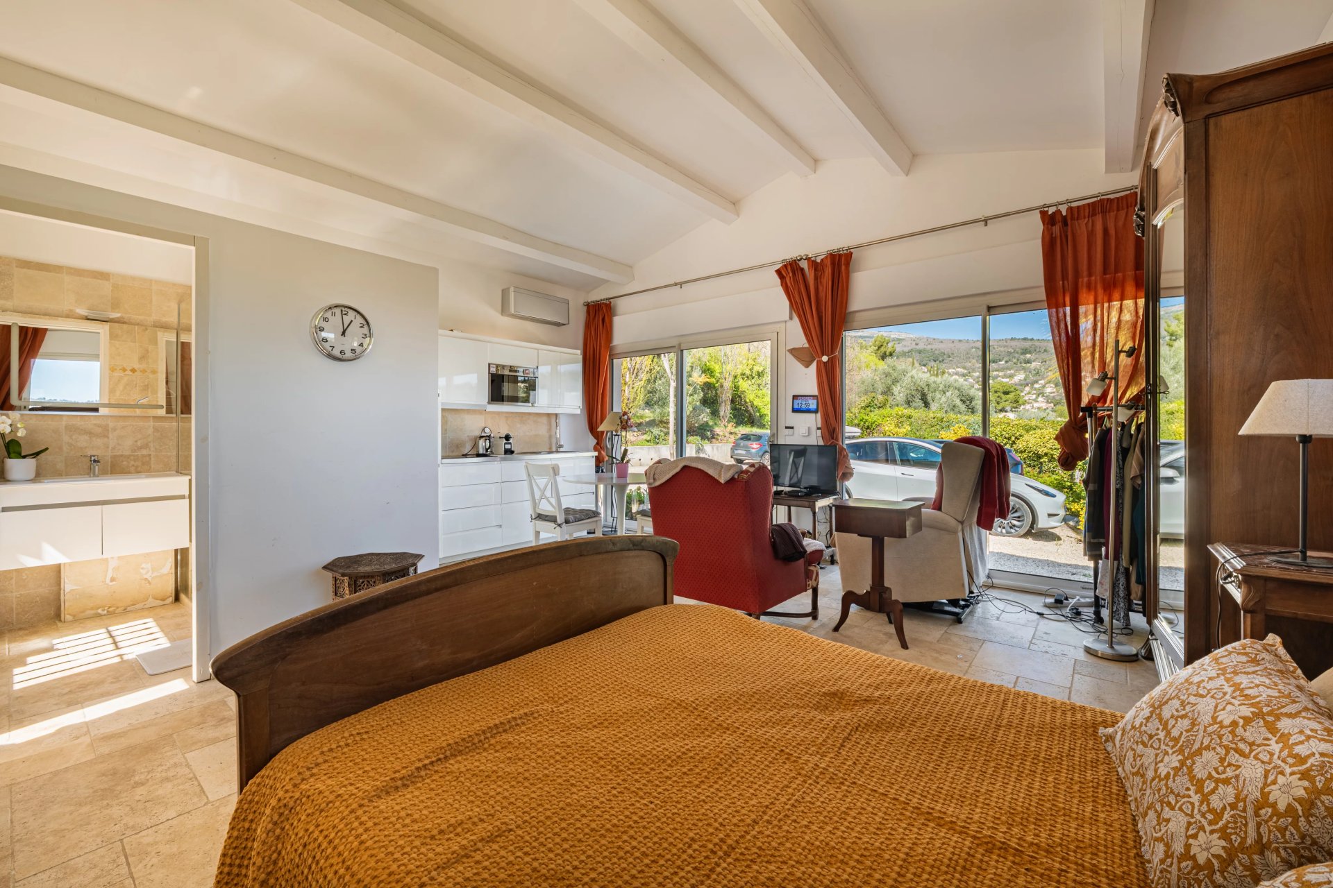 Perched in a commanding position yet quietly tucked away, this bright and elegant 305 m2 villa offers exceptional panoramic vistas, including glimpses of the sea, on a gently sloping plot of 5,839 m2. The property offers a main house and independent fully equipped studio.