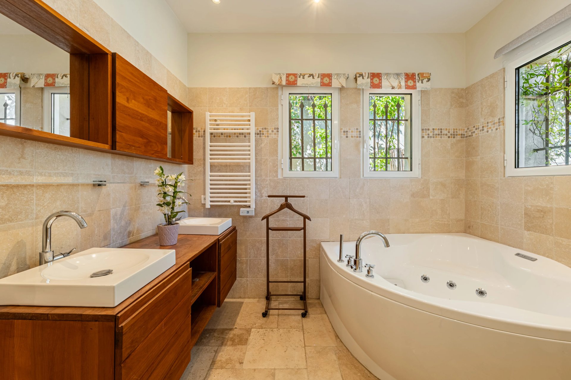 Outside, the property boasts a large swimming pool with fountain, beautifully manicured gardens, and a children’s play area, all bathed in sunlight from a full south-facing orientation. The villa is remarkably peaceful, providing a true sanctuary.