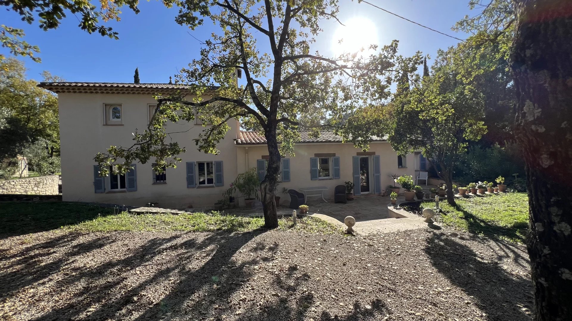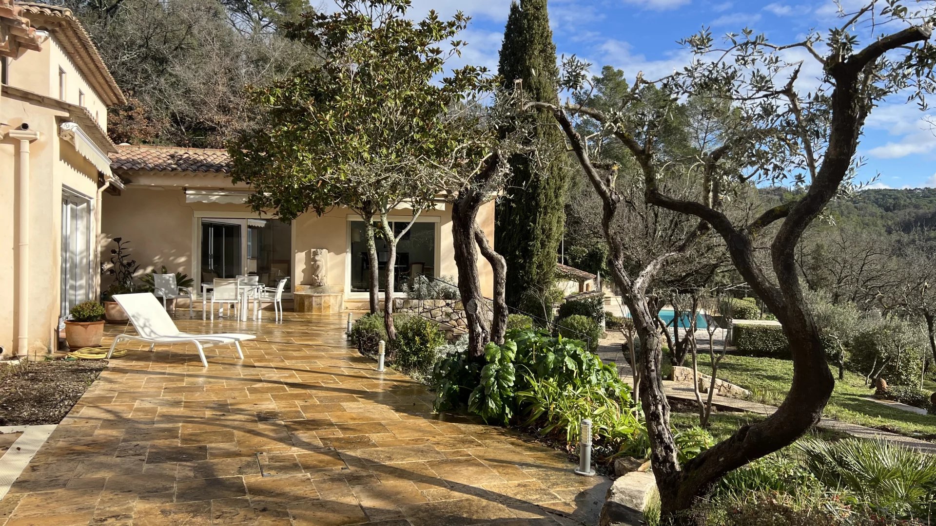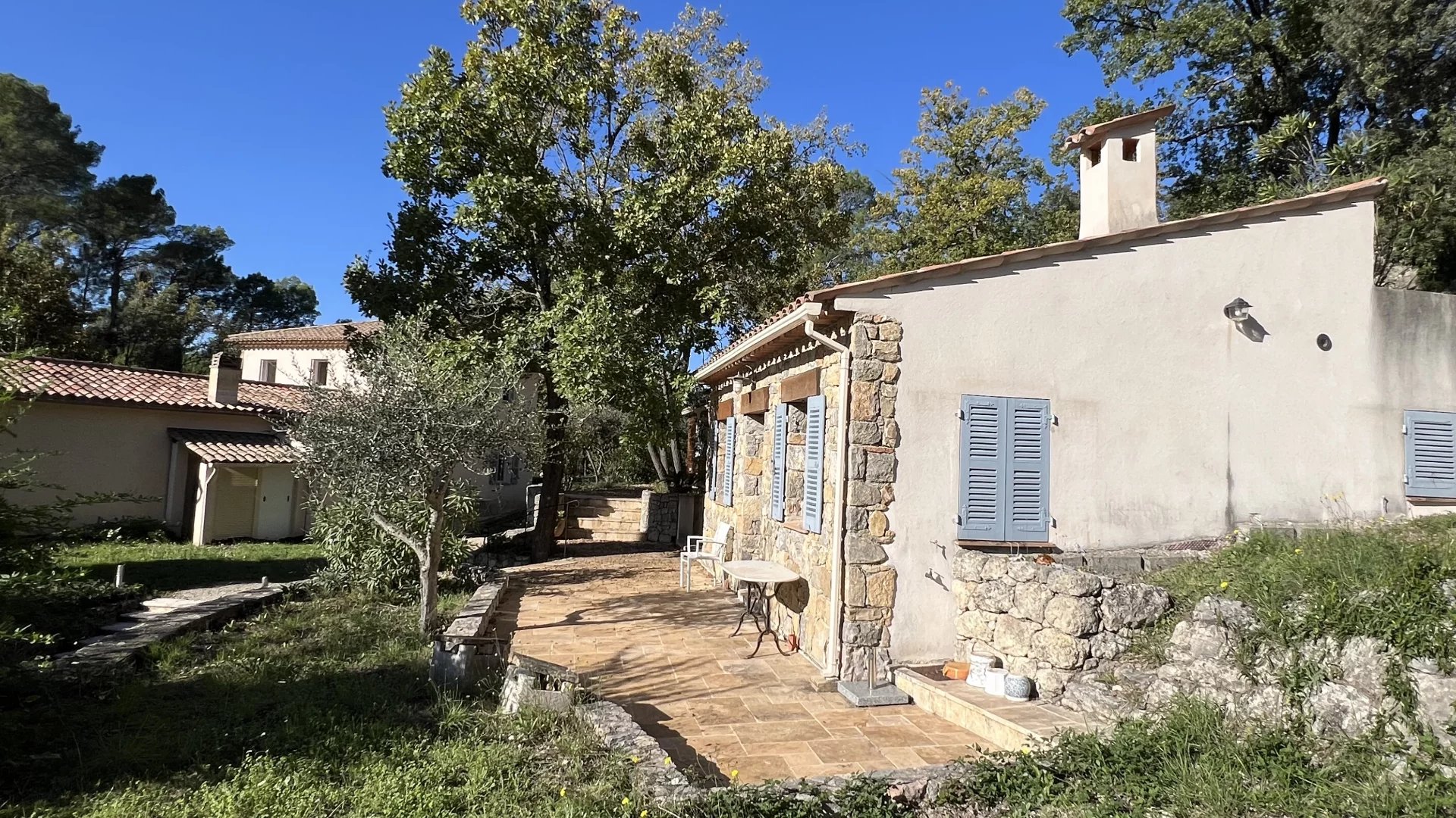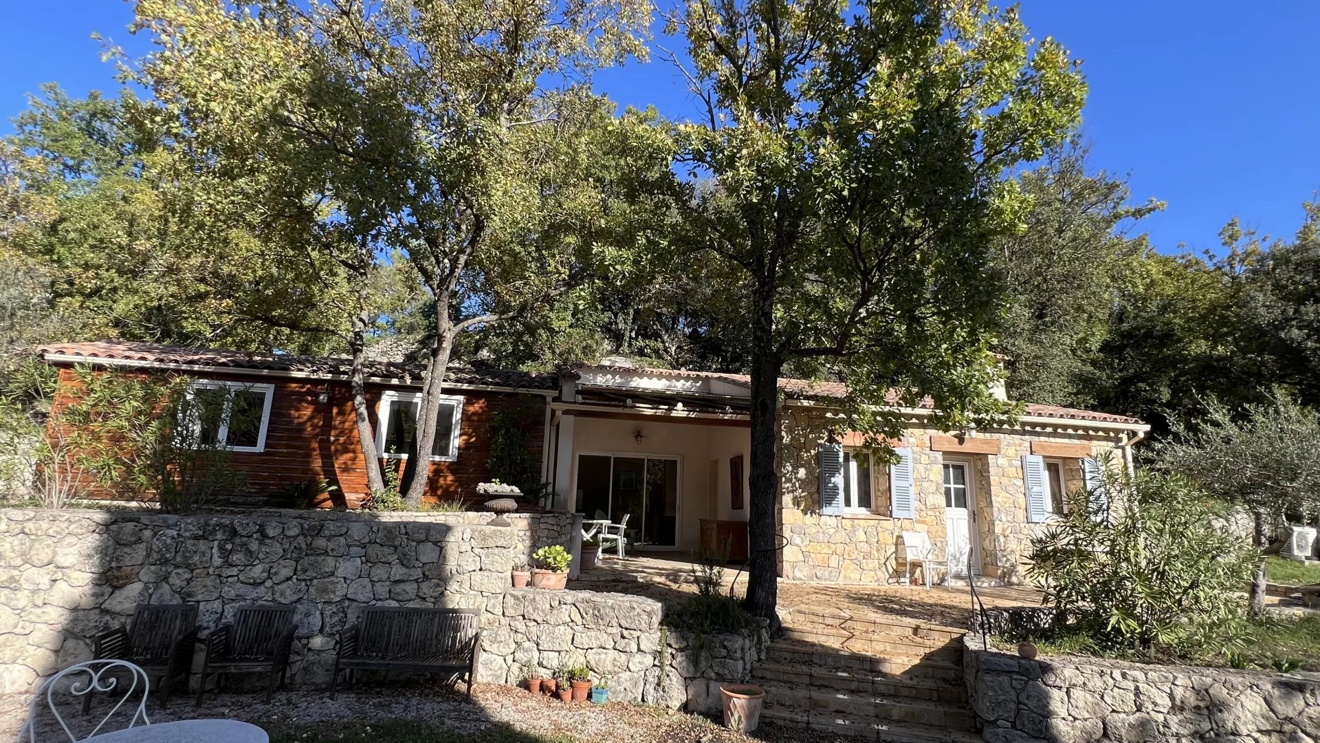 On 2 hectares of land with olive groves, property comprising a 205 m2 villa, a 55 m2 stone Mazet, a 25 m2 chalet, a 33 m2 swimming pool with pool house and a 15 m2 stone garden shed. Garages and various outbuildings.