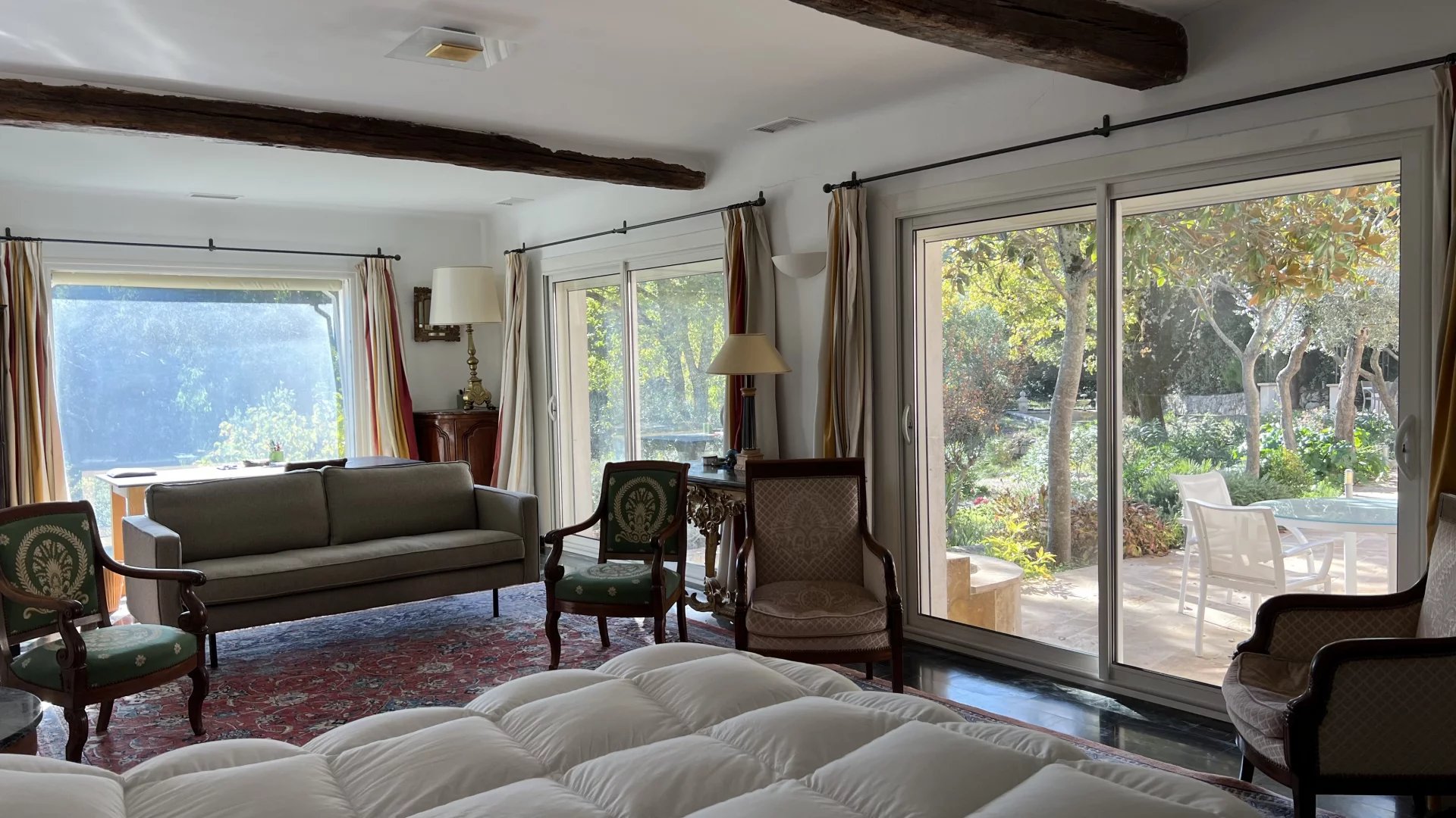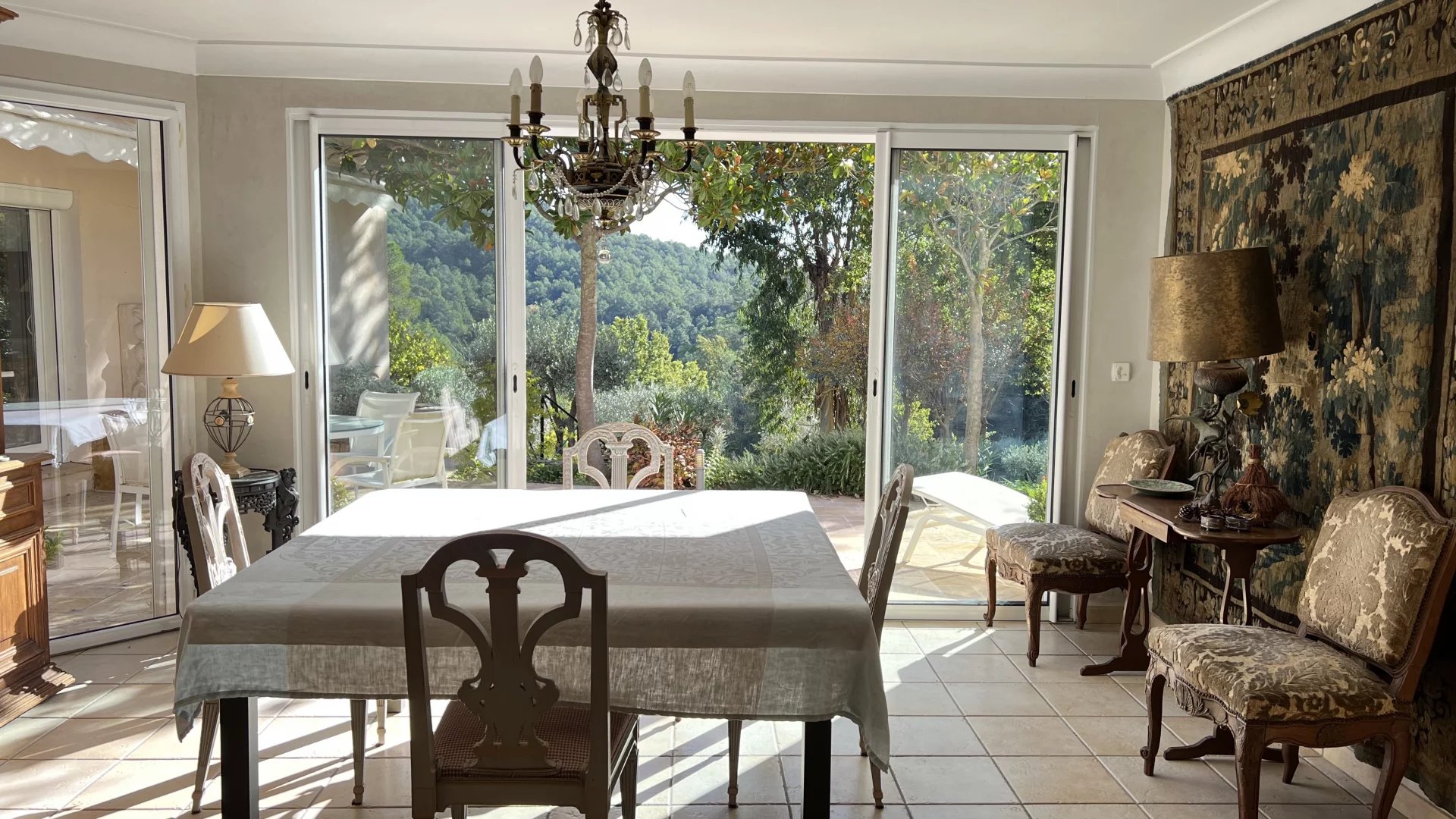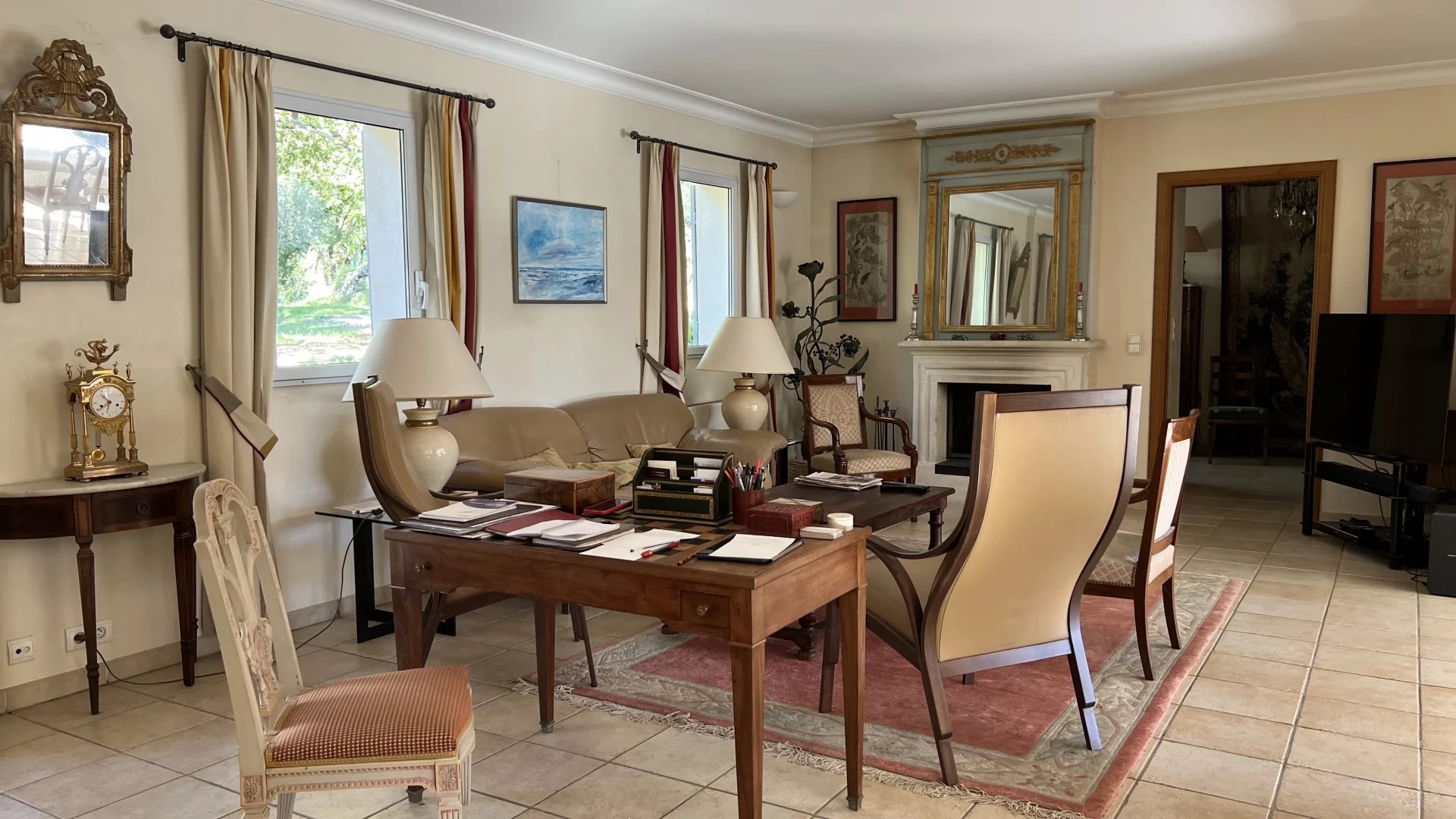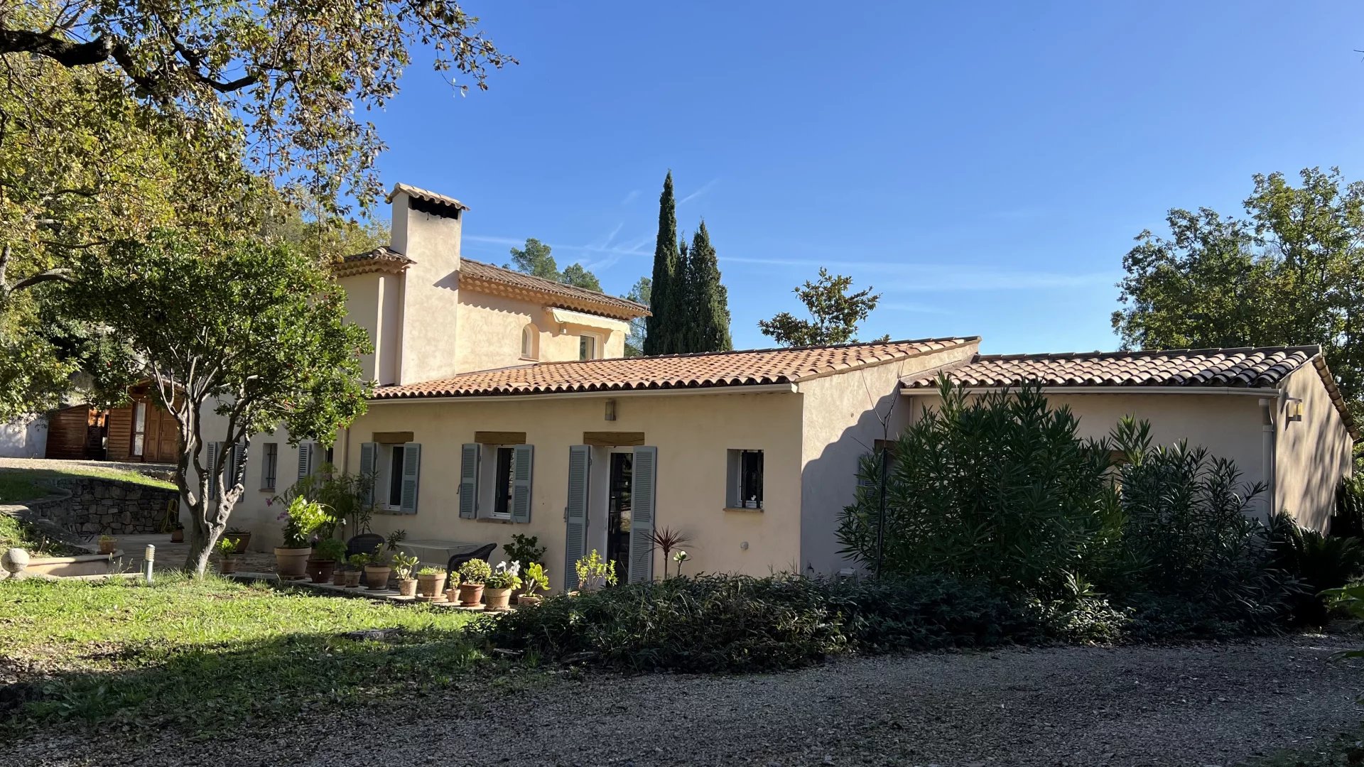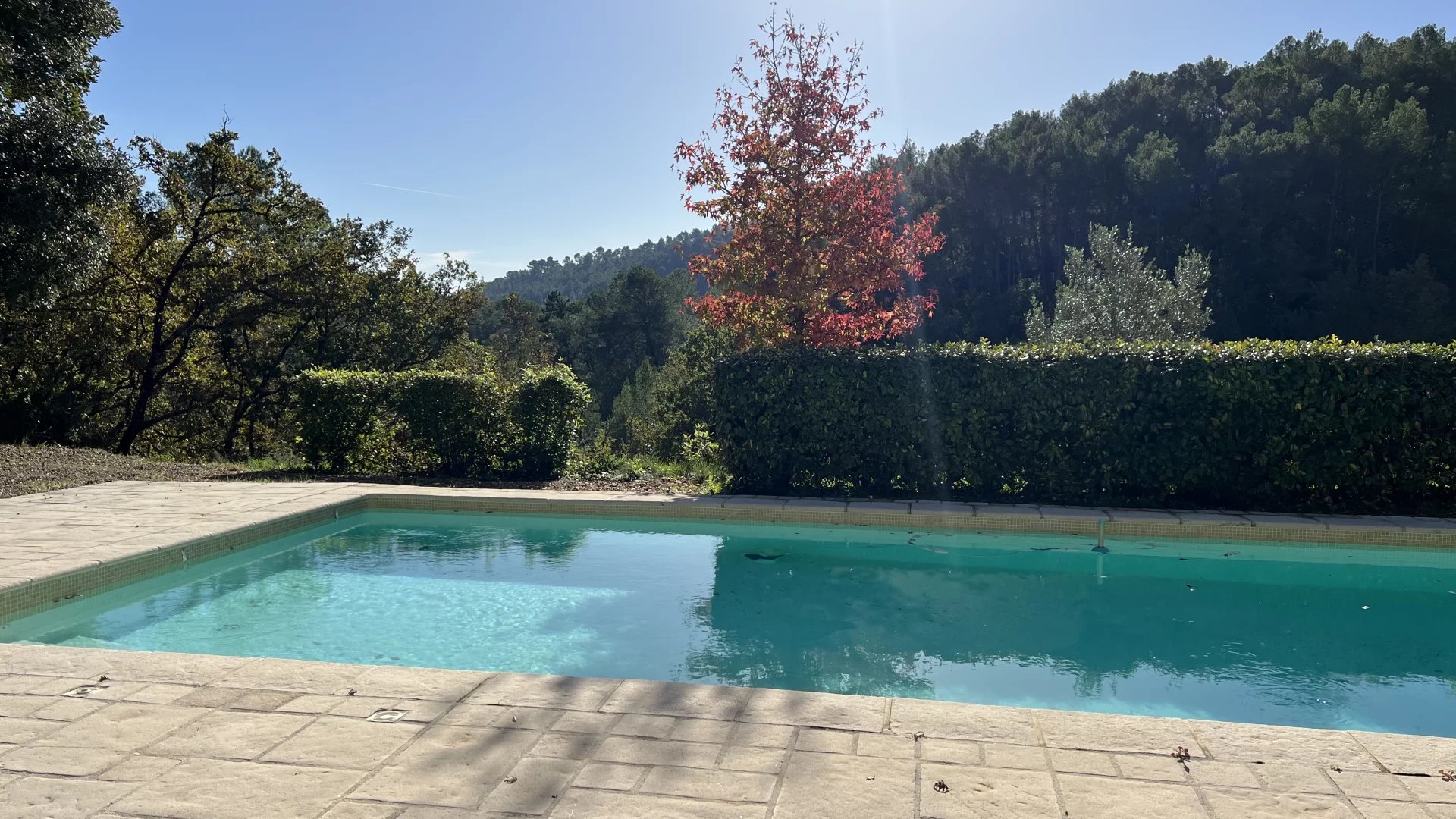 On 2 hectares of land with olive groves, property comprising a 205 m2 villa, a 55 m2 stone Mazet, a 25 m2 chalet, a 33 m2 swimming pool with pool house and a 15 m2 stone garden shed. Garages and various outbuildings.