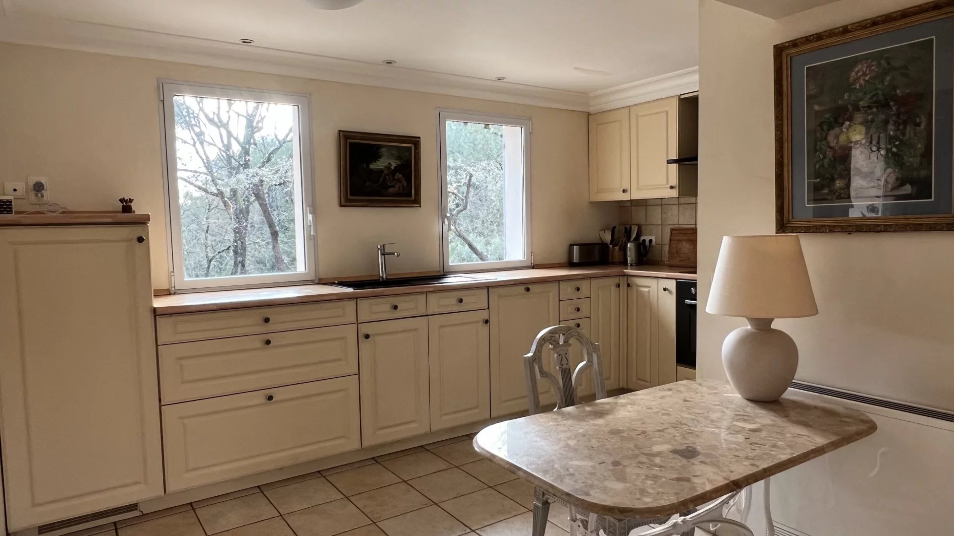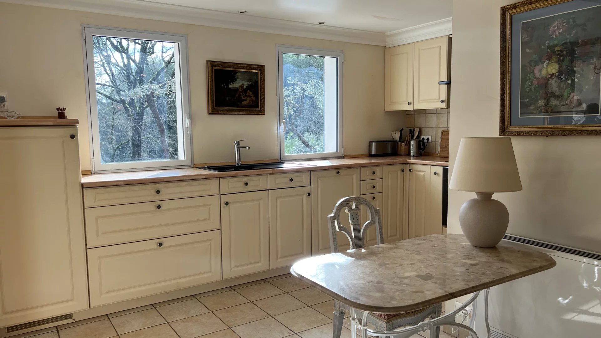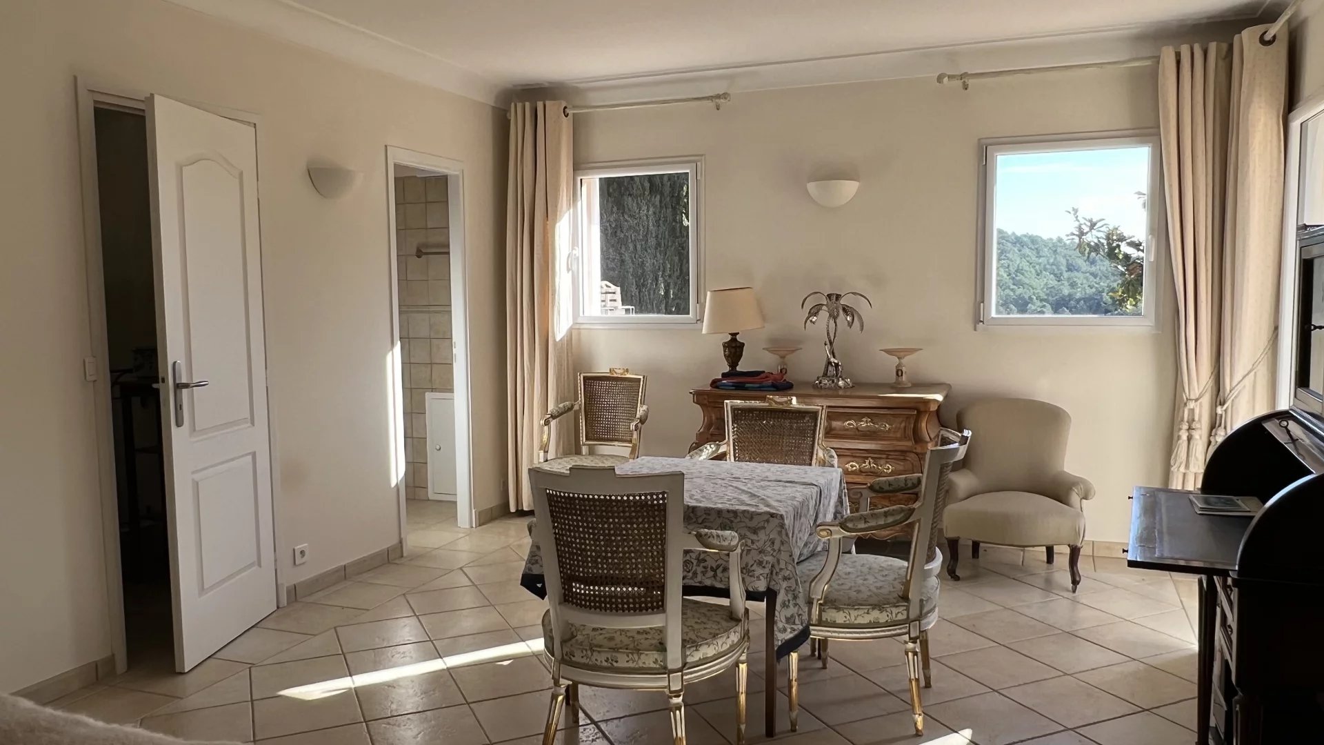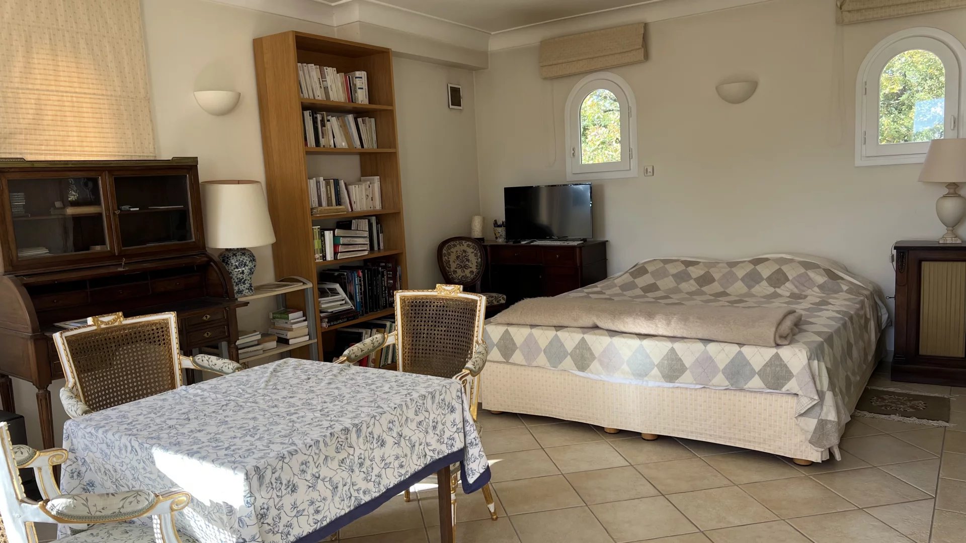 On 2 hectares of land with olive groves, property comprising a 205 m2 villa, a 55 m2 stone Mazet, a 25 m2 chalet, a 33 m2 swimming pool with pool house and a 15 m2 stone garden shed. Garages and various outbuildings.
