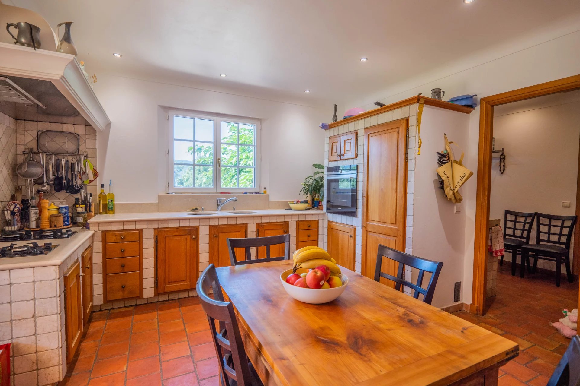 Very close to the village, in a quiet, sought-after area, beautiful 200 m2 Provencal villa built on one level on a 2300 m2 flat plot planted with fruit trees and bordered by vines.