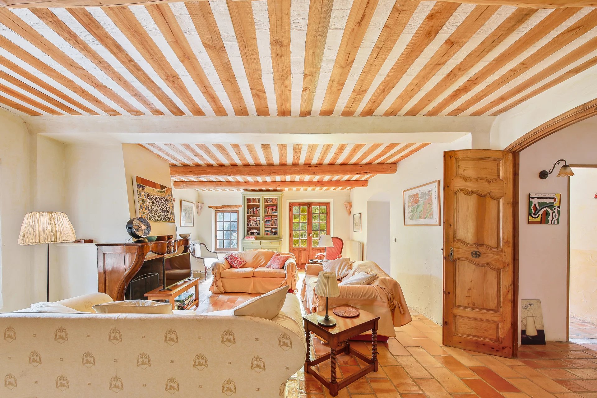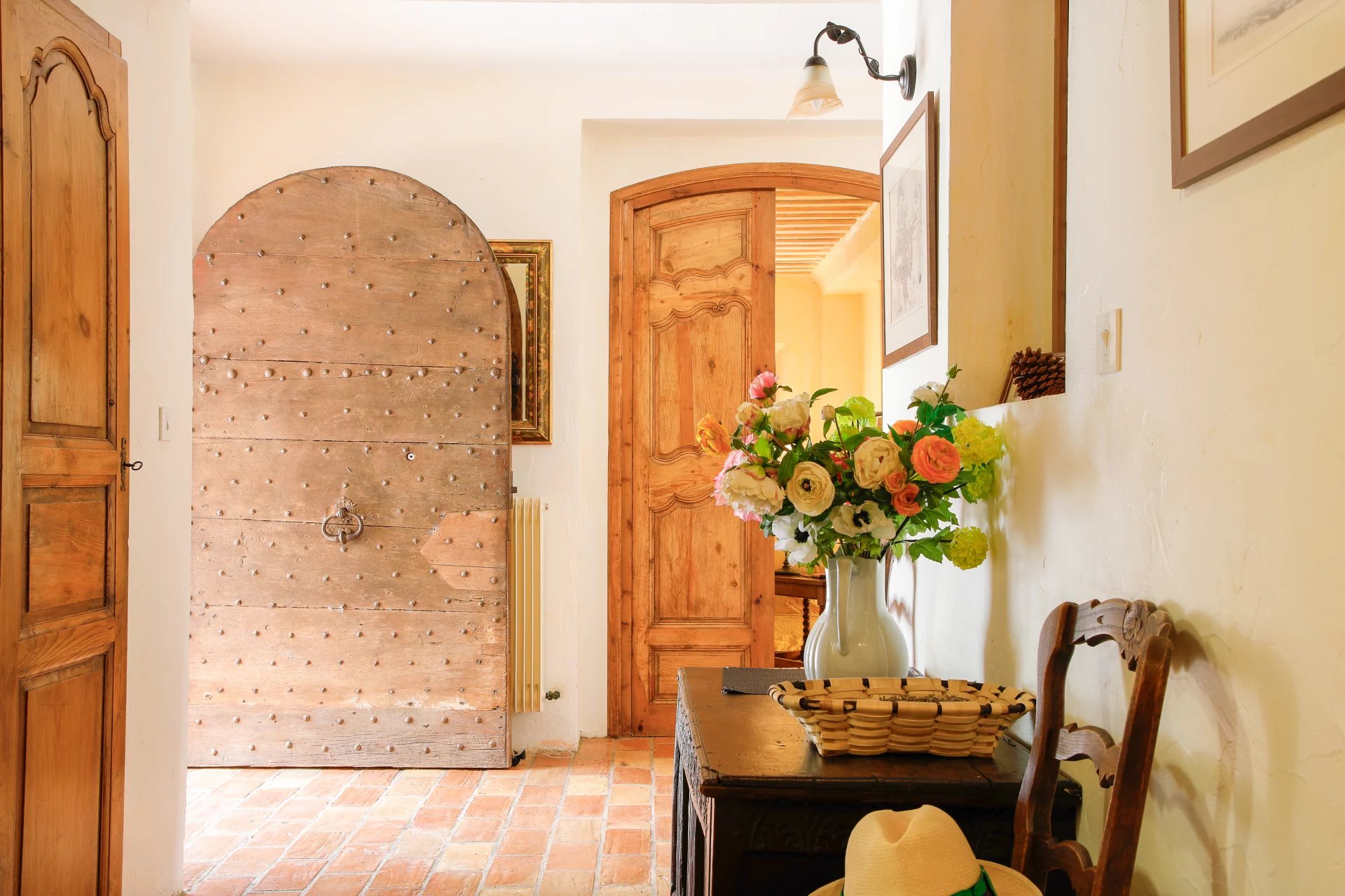 Two garages and a boules court complete the fully enclosed property, which also has a well-maintained borehole. High-end features include antique oak doors, Salernes tiles, alcove windows with shutters, window espagnolettes, and more.