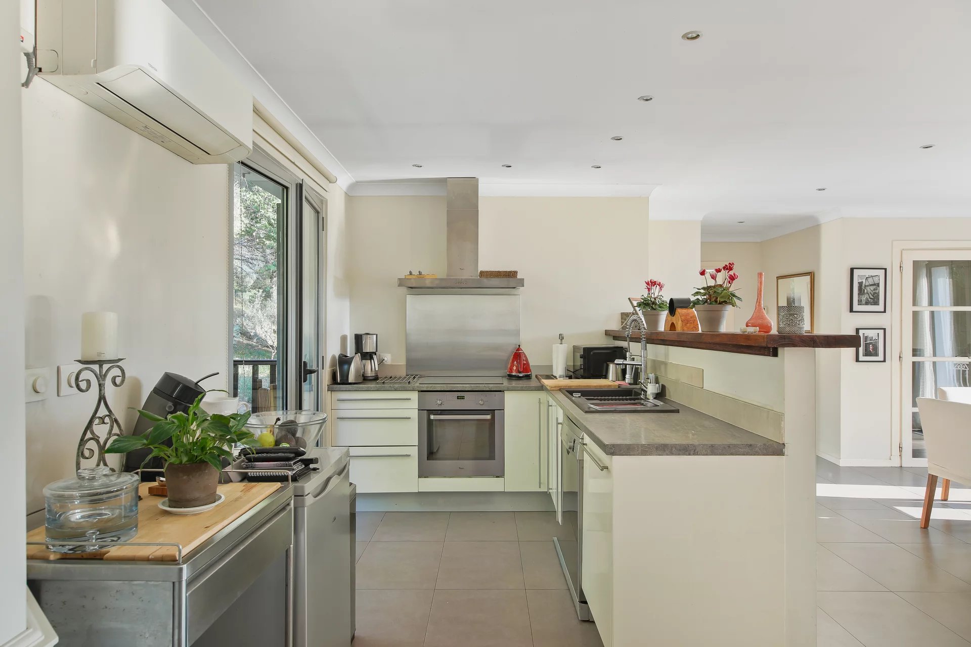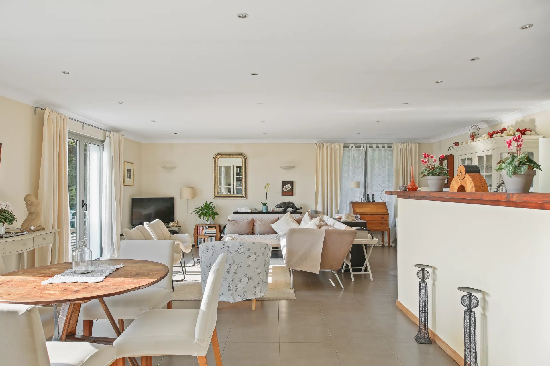 Upstairs, an entrance hall leads to a beautiful 50 m2 living room with an open-plan kitchen opening onto two terraces and a large master bedroom with en-suite bathroom.