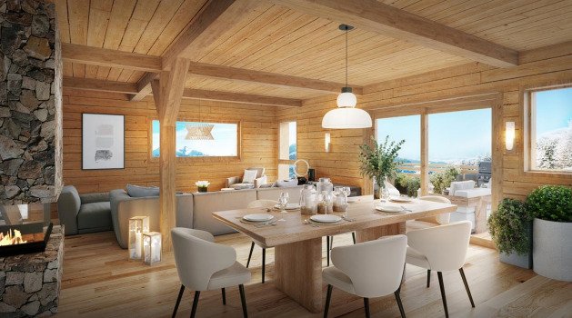 Designed by Grosset Janin, this chalet blends traditional architecture with modern comfort using premium materials and meticulous finishes. Its prime location provides easy access to amenities while being surrounded by the natural beauty of the Alps.