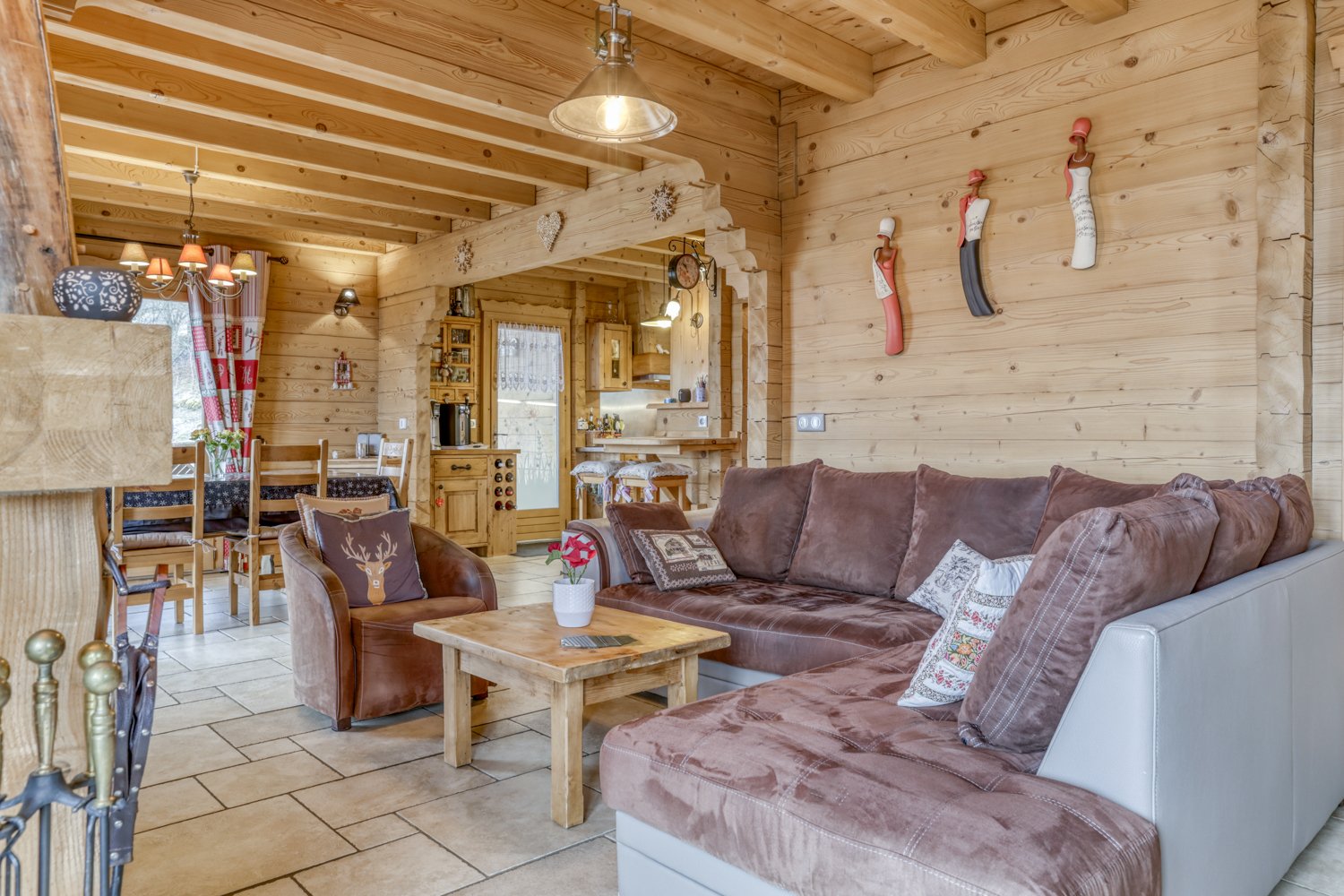 Designed to blend alpine authenticity with top-tier finishes, this property captivates from the moment you step inside. The spacious, light-filled living area features a central fireplace that creates a warm, inviting atmosphere, while the fully equipped open-plan kitchen integrates seamlessly into the modern and convivial living space. The chalet offers three elegant and comfortable bedrooms, along with a cozy mezzanine lounge — ideal for a relaxing retreat or a stylish home office. Outside, you’ll be charmed by the large terrace complete with a jacuzzi, and the beautifully landscaped garden — the perfect setting to enjoy the stunning mountain scenery in every season. Practical features include a garage on the ground floor and multiple outdoor parking spaces.A true mountain haven, where peace, comfort, and the beauty of the Alps come together year-round.