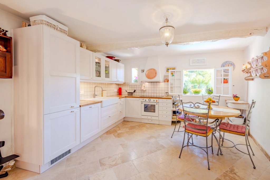 This historic jewel of a home, nestled in a secluded area a short stroll down to the main squares, cafes, bakery, will seduce you from its terracotta tiled roof and authentic shuttered facade to its minutely designed interiors with travertine tiled floors. Carefully renovated with style, it combines the charm of the old (exposed beams, natural stones…) with modern comfort.