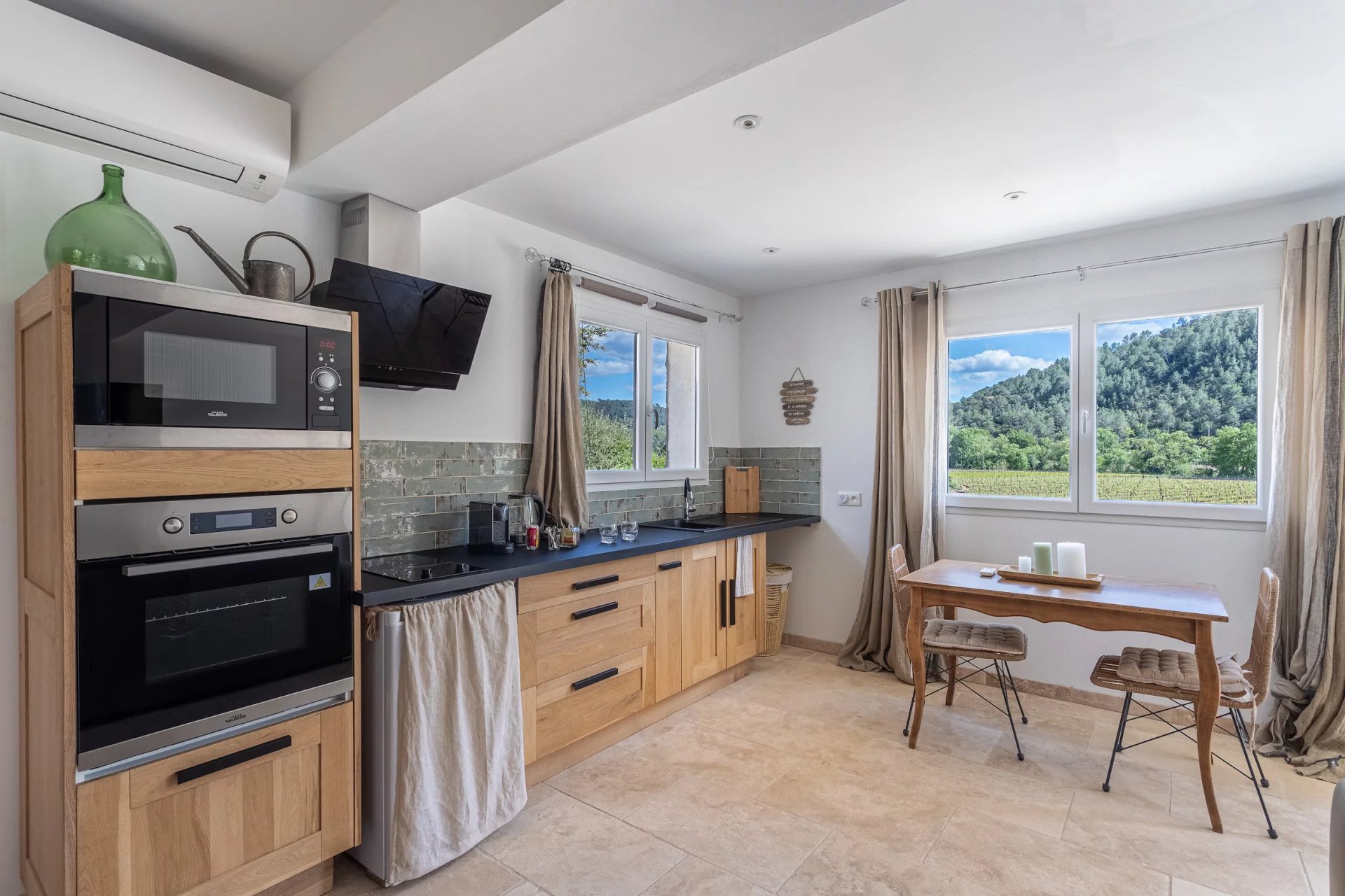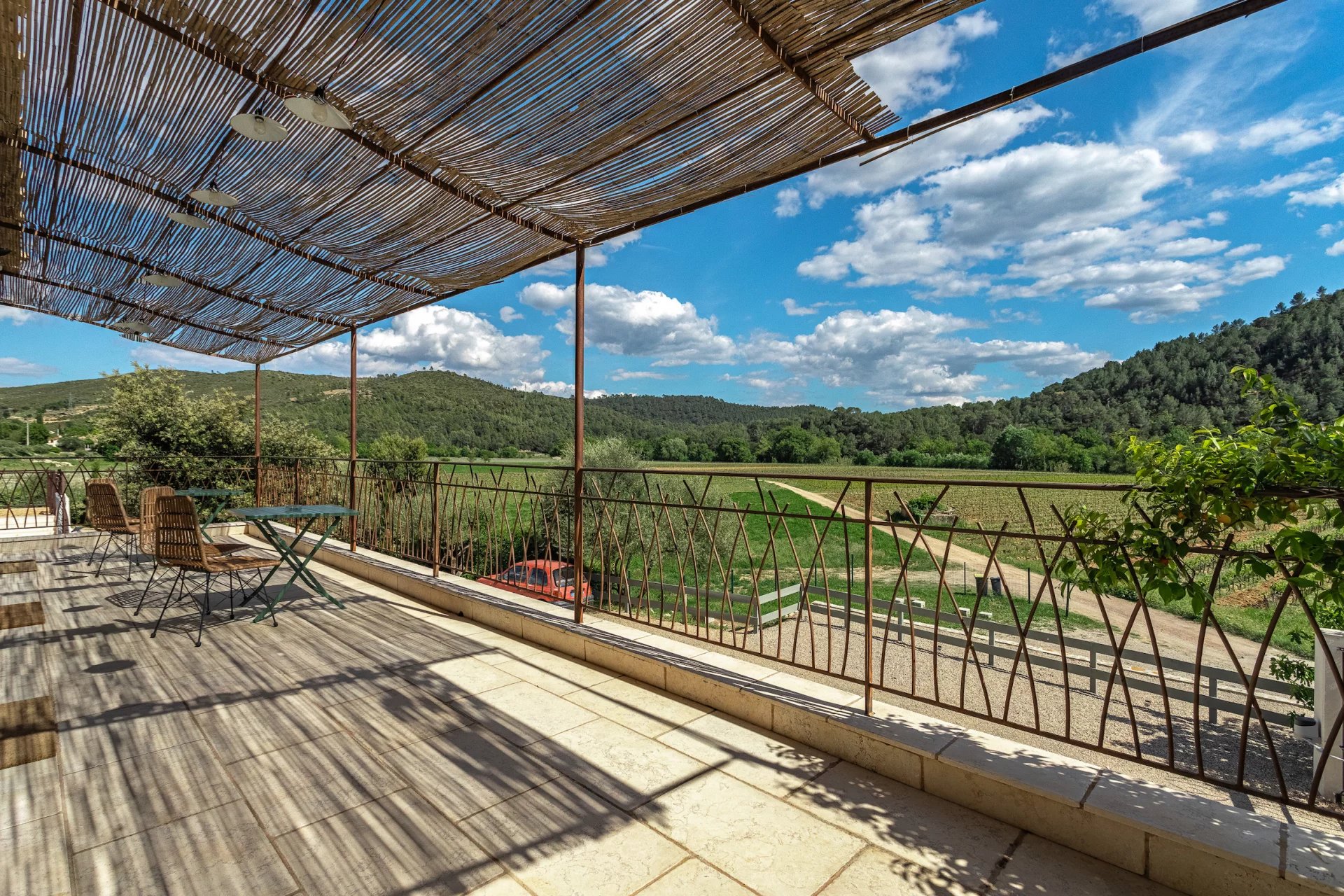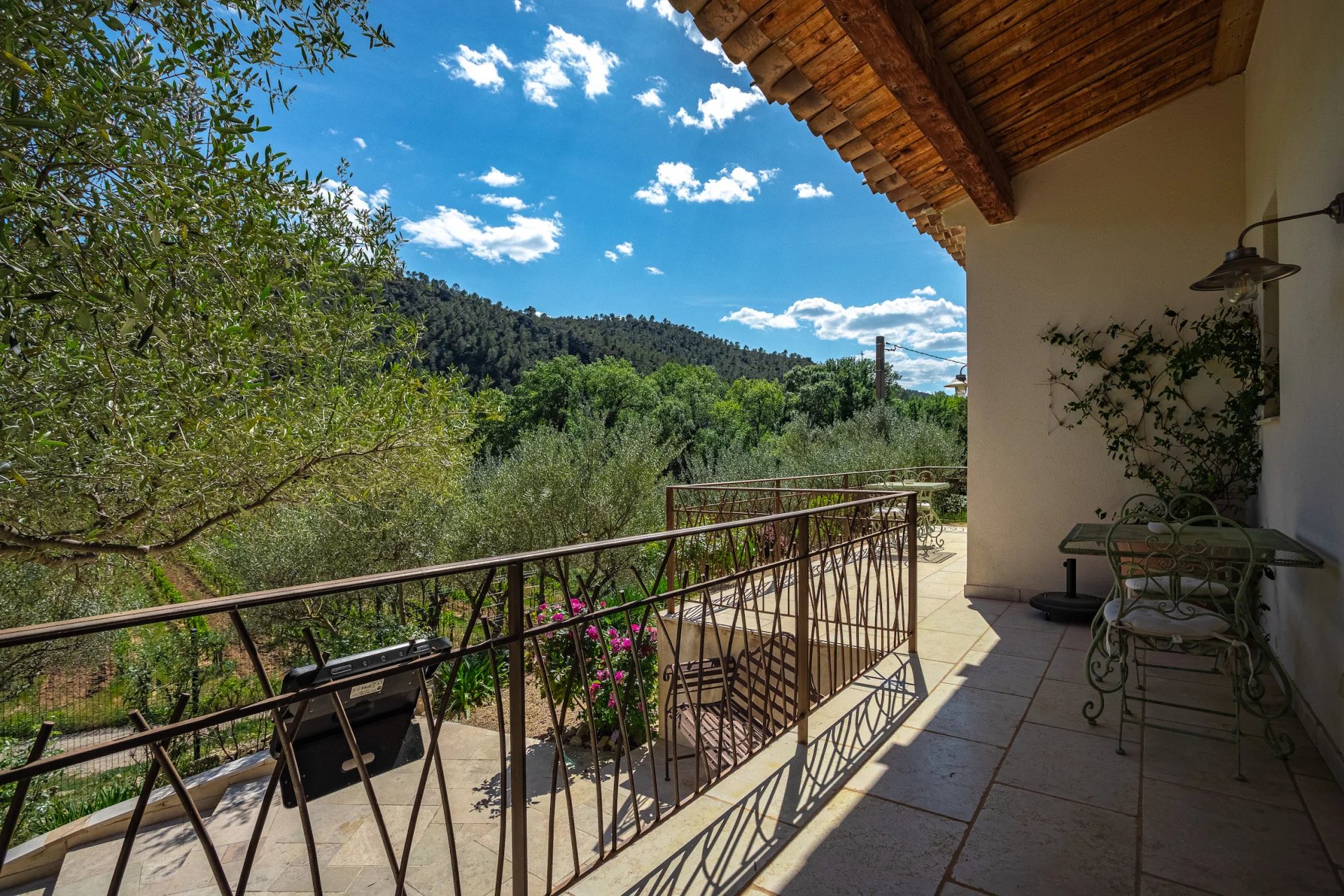 In a dominant position, it offers a unique and exceptional panoramic view on the surrounding countryside. Entrance, toilet, small lounge, living room with chimney, dining room, superb Provencal furnished kitchen. These different living rooms open onto terraces and a small patio with its fountain which will invite you to relax. Laundry room. 1 comfortable master bedroom with dressing room, private shower room, toilet and a pretty mezzanine. On another wing of the house, an independent part to receive your guests with 3 beautiful bedrooms each with private shower room, toilet and all opening onto terraces and the garden. Independent apartment (communicating with the house) : lounge space, furnished kitchen, 1 bedroom, shower room with toilet. Garage, storage room, wine cellar, floor heating, photovoltaic solar panels. . . Good exposition, the house is light and pleasant to live in. In perfect condition, low energy consumption, quality materials, generous dimensions and harmonious volumes. This quality house, tastefully decorated, full of charm offers many possibilities. It will be a peaceful place for holidays or in permanent residence. Excellent seasonal rental ratio possible. Information on the risks to which this property is exposed is available on the Géorisks website: georisks.gouv.fr