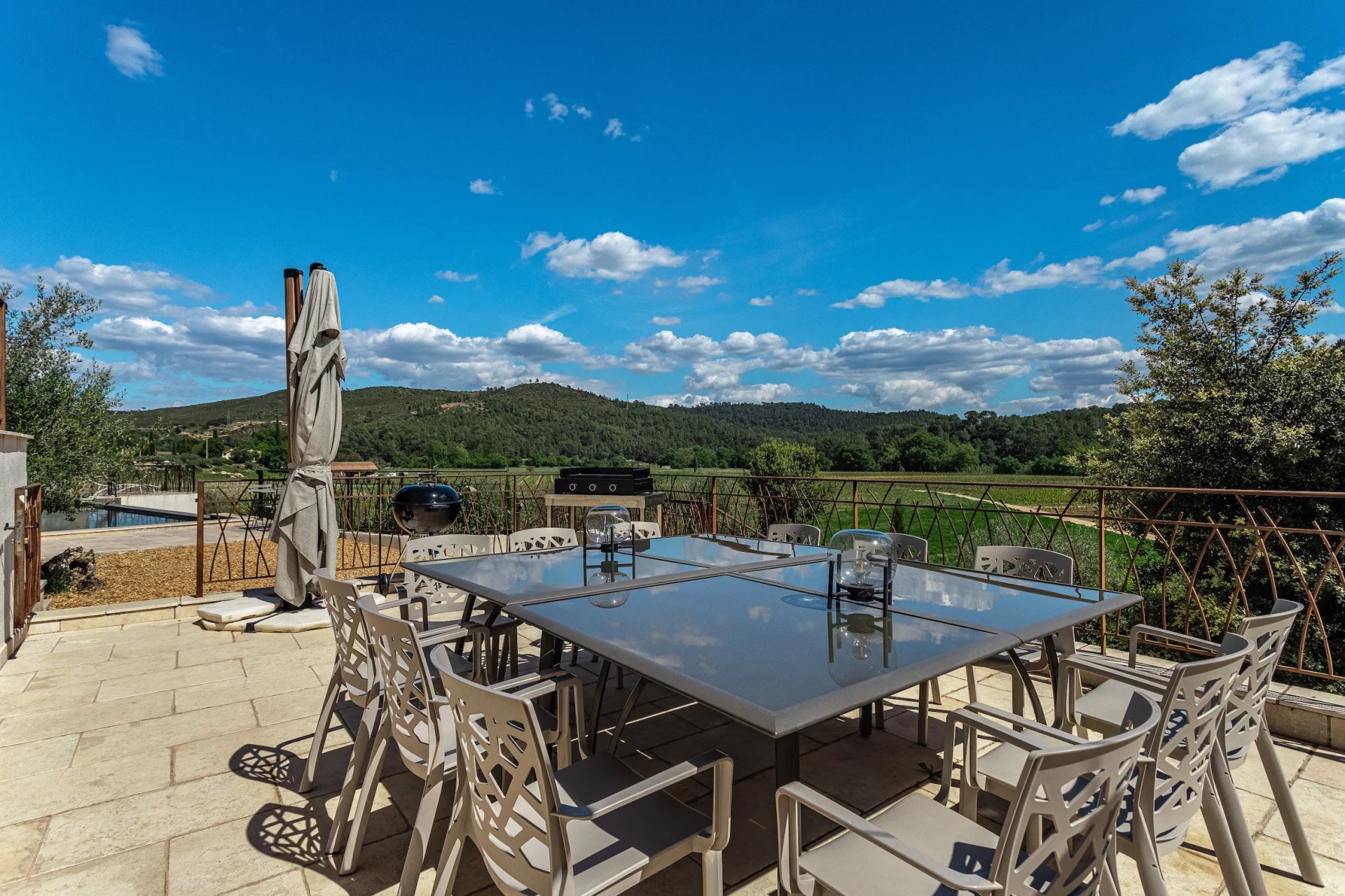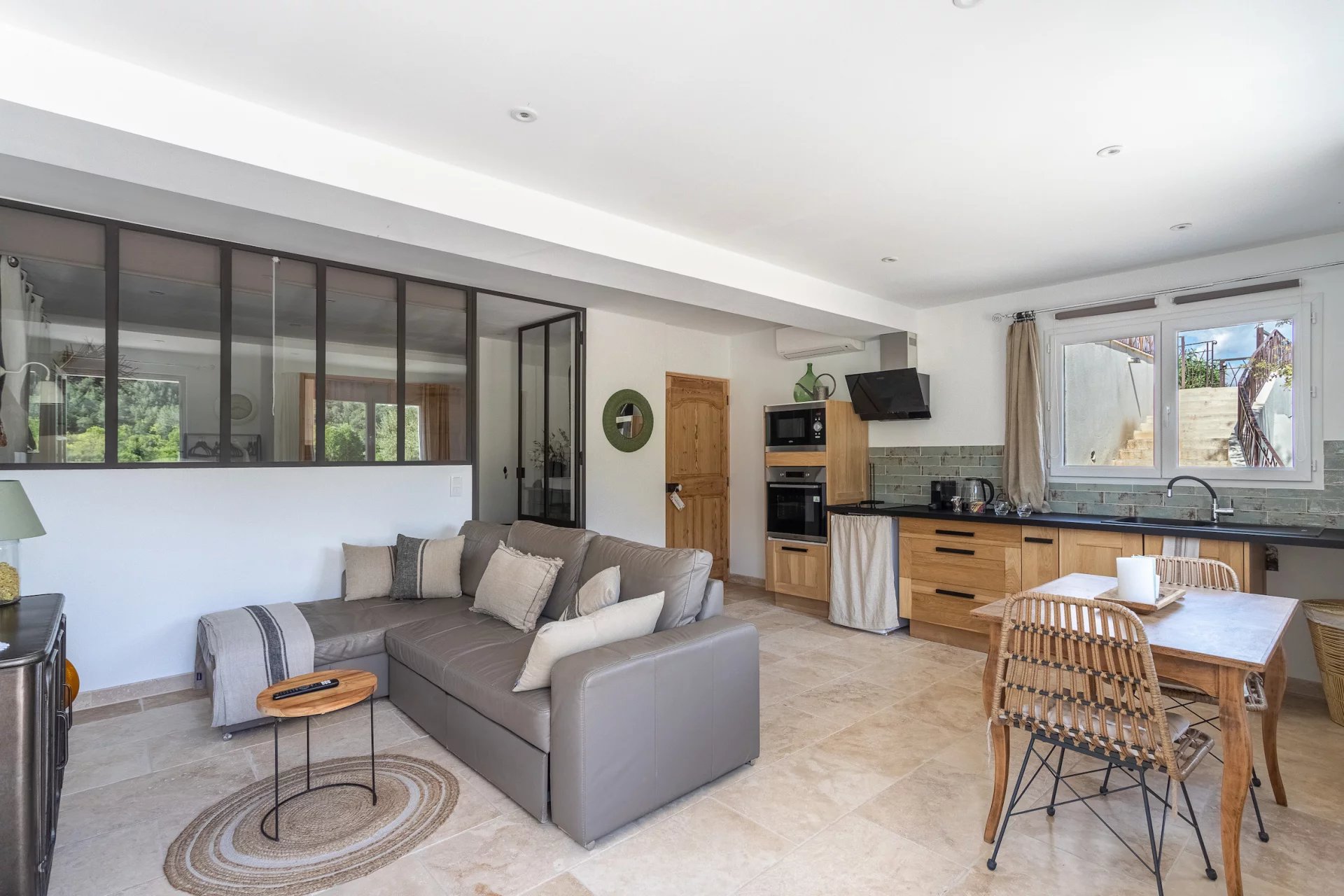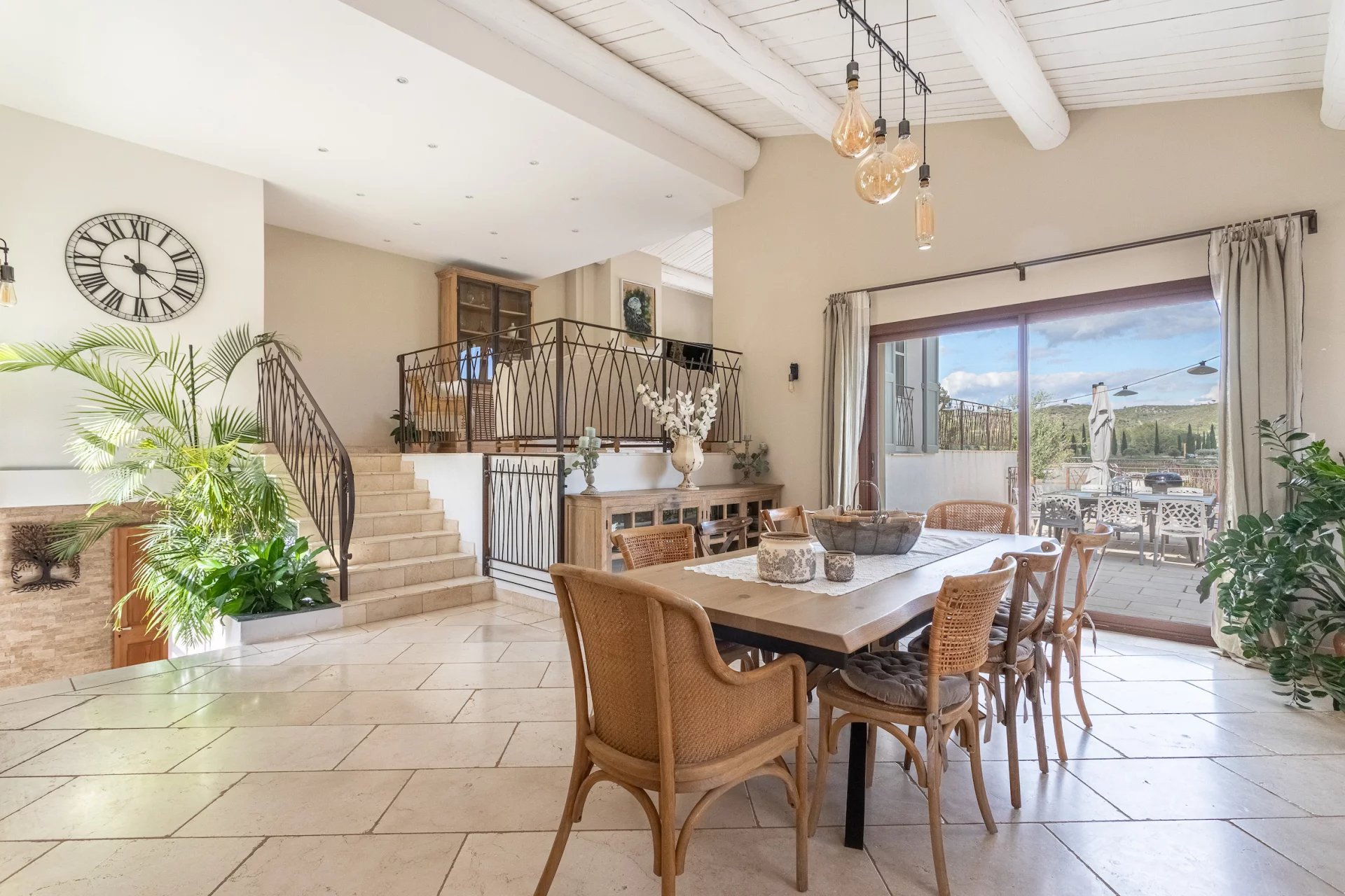 In a dominant position, it offers a unique and exceptional panoramic view on the surrounding countryside. Entrance, toilet, small lounge, living room with chimney, dining room, superb Provencal furnished kitchen. These different living rooms open onto terraces and a small patio with its fountain which will invite you to relax. Laundry room. 1 comfortable master bedroom with dressing room, private shower room, toilet and a pretty mezzanine. On another wing of the house, an independent part to receive your guests with 3 beautiful bedrooms each with private shower room, toilet and all opening onto terraces and the garden. Independent apartment (communicating with the house) : lounge space, furnished kitchen, 1 bedroom, shower room with toilet. Garage, storage room, wine cellar, floor heating, photovoltaic solar panels. . . Good exposition, the house is light and pleasant to live in. In perfect condition, low energy consumption, quality materials, generous dimensions and harmonious volumes. This quality house, tastefully decorated, full of charm offers many possibilities. It will be a peaceful place for holidays or in permanent residence. Excellent seasonal rental ratio possible. Information on the risks to which this property is exposed is available on the Géorisks website: georisks.gouv.fr