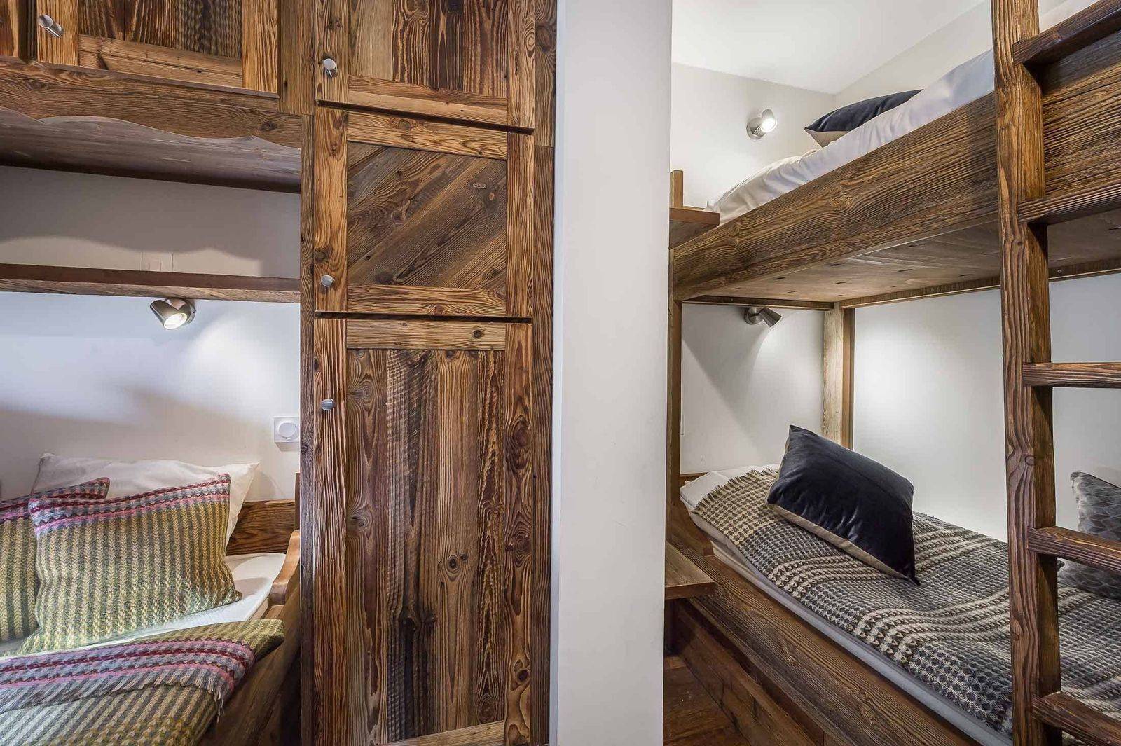 The interior features warm mountain-style decor, blending authenticity with contemporary touches. Designed to comfortably accommodate a family of 4 to 5 people, it offers a lovely living area, a double bedroom, a bedroom with a bunk bed and a single bed, as well as optimized layouts for everyone’s comfort.