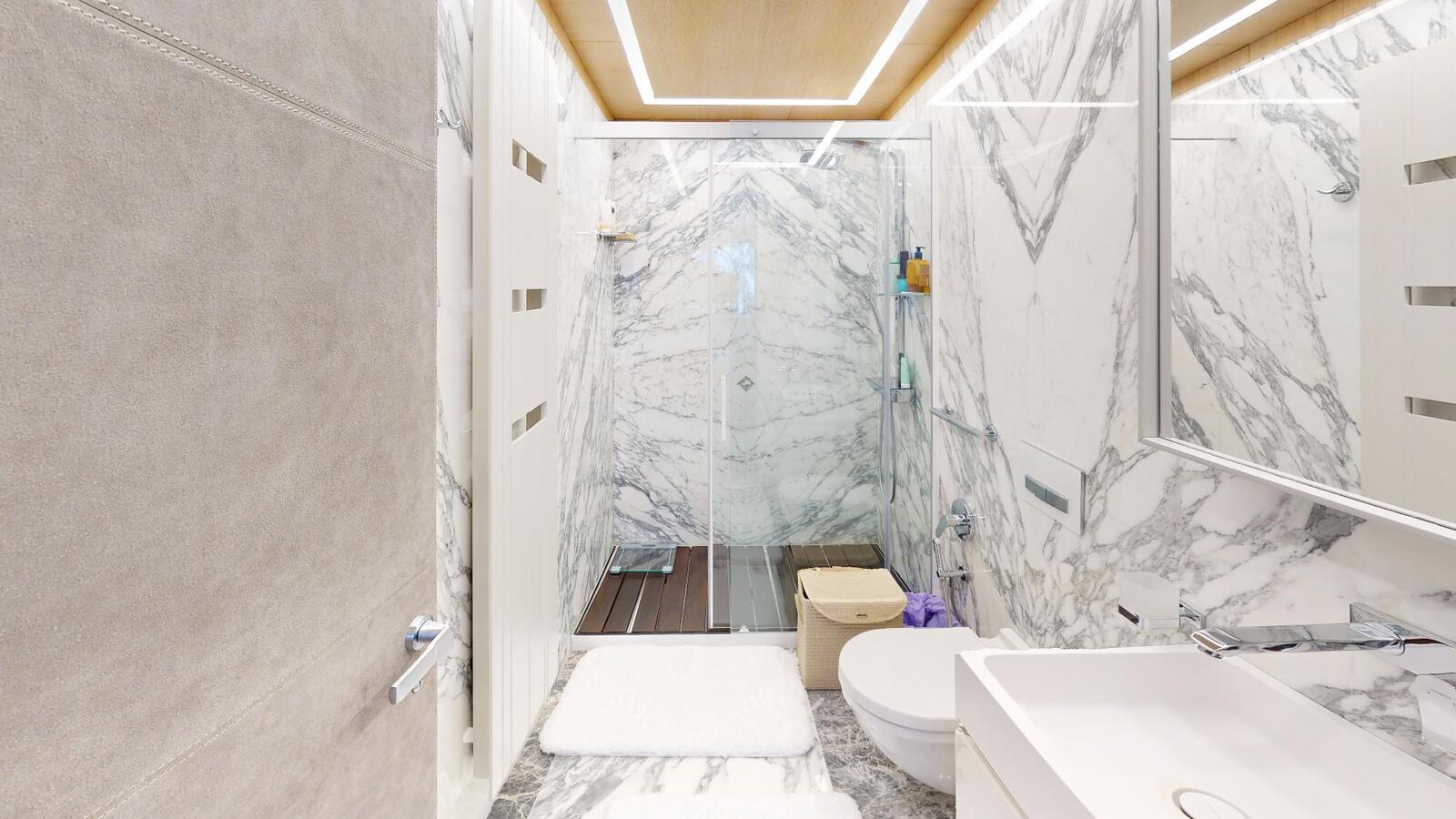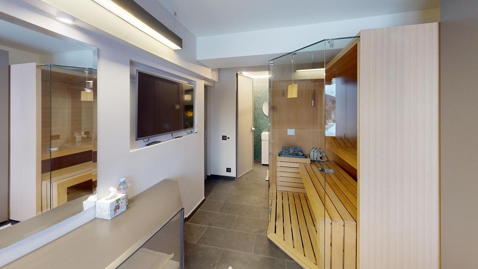 Discover this modern luxury apartment of 114,59 sqm with view over the slopes and a sauna of 15,48 sq m annexed.