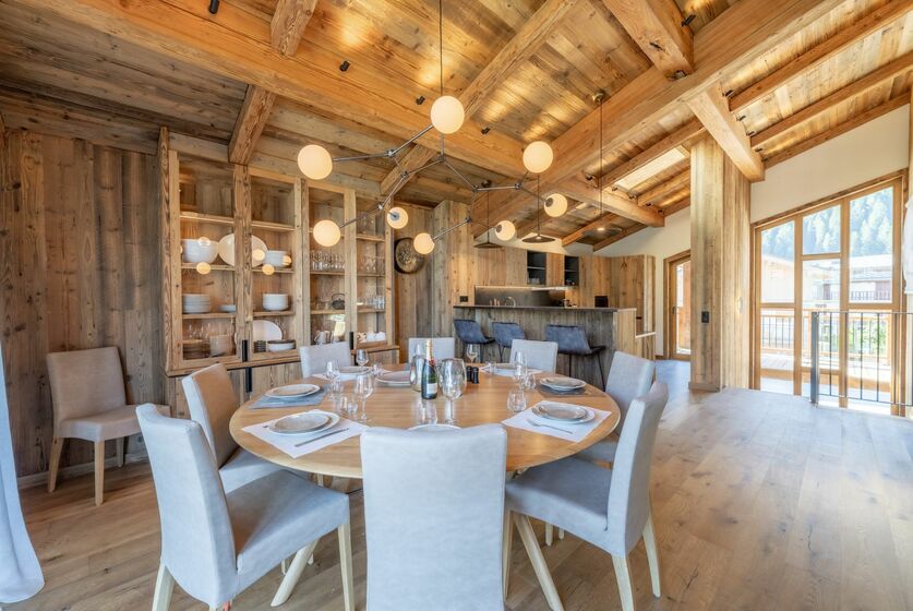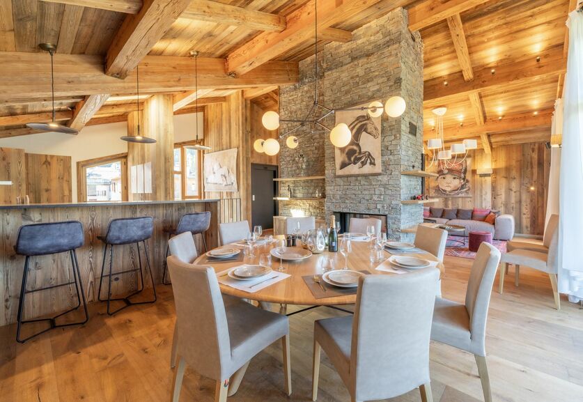 Discover this exceptional 264 sq. m. semi-detached chalet, designed to offer you absolute comfort. With its 4 bedrooms, including a family suite, each with en suite bathroom, this chalet can accommodate up to 12 guests in optimum comfort. It boasts a magnificent cathedral living room bathed in light, with a fully equipped kitchen ideal for convivial moments with family or friends. Enjoy breathtaking views of the surrounding peaks from your terrace, and thanks to the south-facing aspect, benefit from generous sunshine throughout the day. A SPA with swimming pool and sauna awaits you for unrivalled moments of relaxation. There’s also secure indoor parking, a spacious cellar and several terraces where you can enjoy the fresh mountain air.