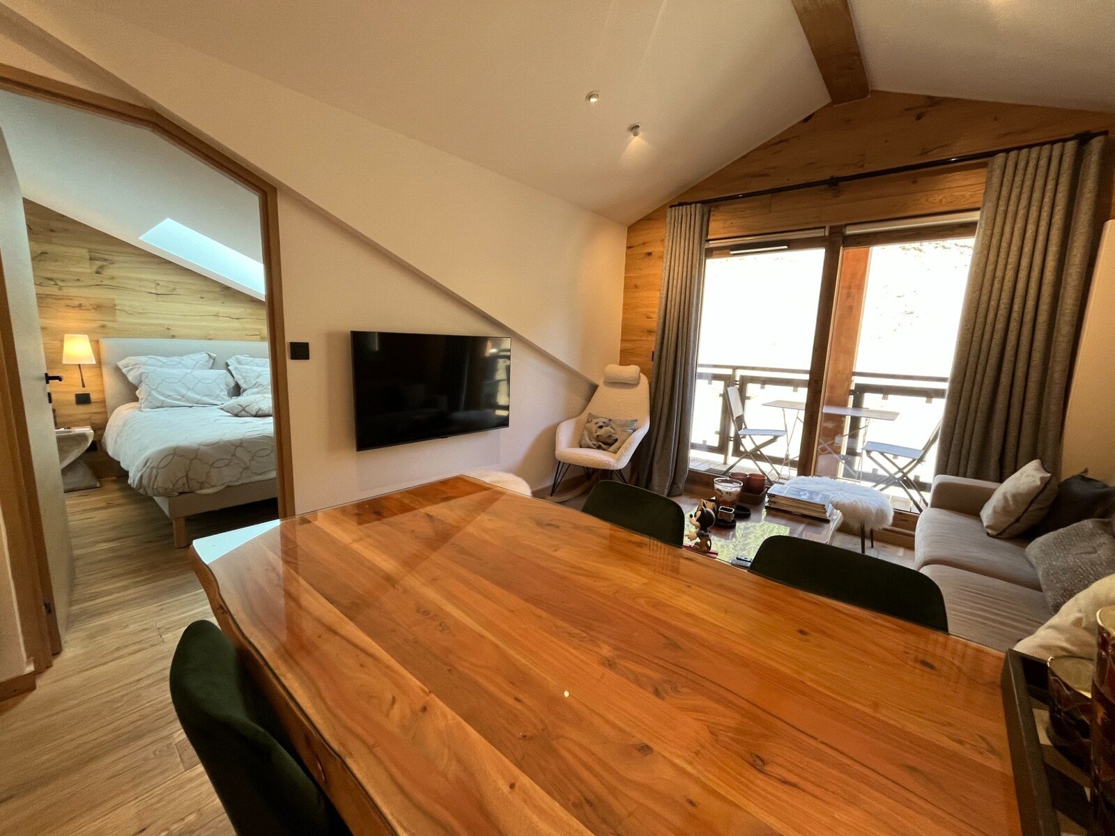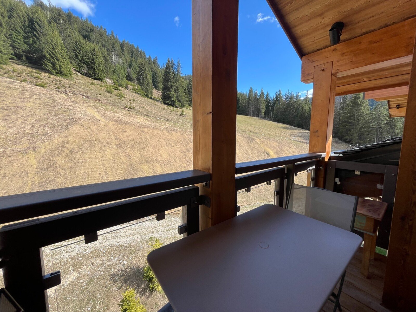 Located on the top floor of a small condominium, this apartment stands out for its elegance, peaceful setting, and unobstructed mountain views.