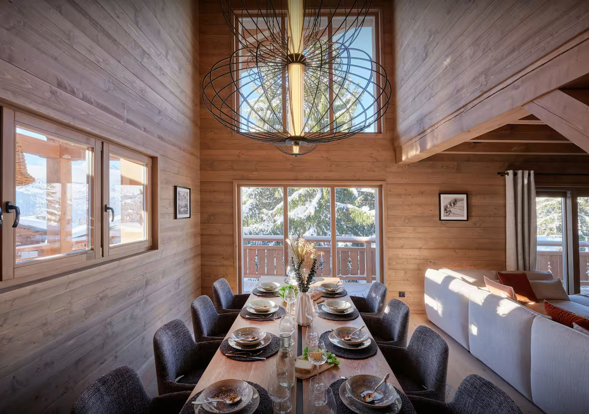 Discover this exceptional new chalet, ideally located in Crest-Voland, just 200 meters from the slopes and a short walk from the center of the resort. Combining mountain authenticity with high-end amenities, this property offers a unique living environment to enjoy the mountains all year round. The chalet features a spacious living area of approximately 87sq.m with a fireplace that extends onto a large terrace, 5 generous bedrooms, a children’s dormitory, as well as a ski room and a relaxation area with a sauna, herbal tea room, bar, billiards, and TV. Built in a traditional post-and-beam style, with a shingle roof and copper finishes, this chalet harmoniously blends into the alpine landscape, offering stunning views of the Aravis mountain range and Mont Charvin. Spread over three levels, it combines a natural stone basement with wooden floors, creating a perfect mix of charm and modernity. The chalet is delivered turnkey, with a double garage and outdoor parking spaces. Delivery is scheduled for the end of 2026.
