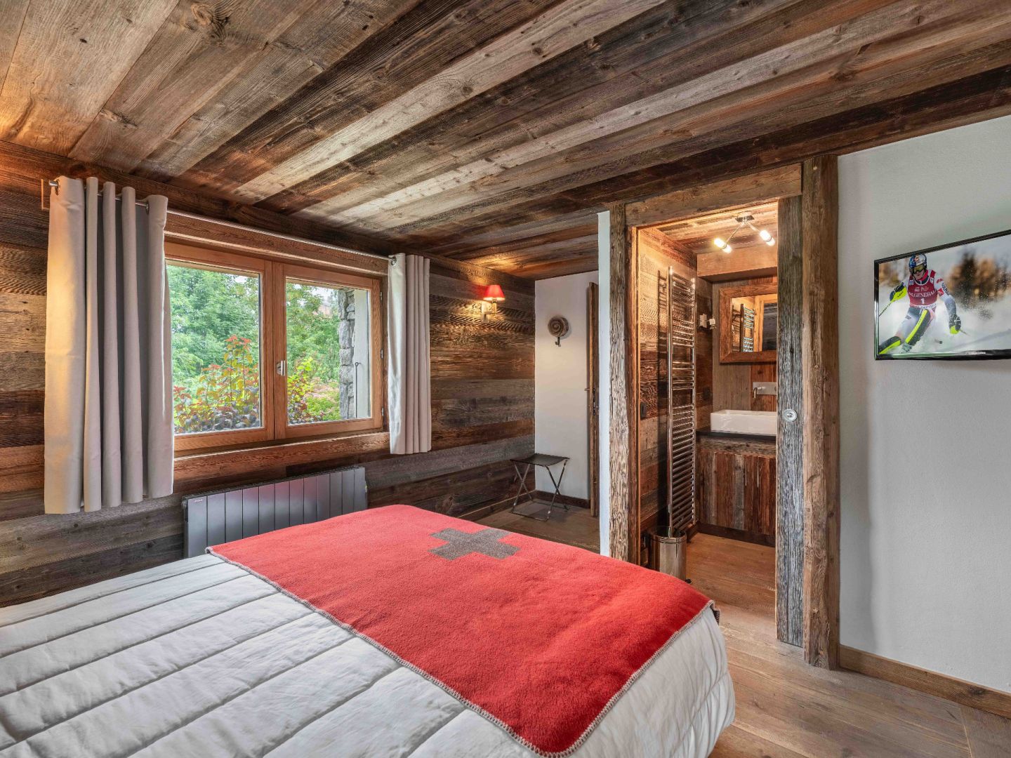 Magnificent character apartment with a 147.46 sq.m loi carrez surface area (165.31 sq.m) total surface area), located in a renovated former farmhouse. A unique space combining charm and comfort, with its own entrance and private garage, ideal for your peace and quiet. Located in a quiet, natural area between the village of Megève and Mont d’Arbois, this apartment offers an exceptional living environment. Spacious and duplex, with four en suite bedrooms and a living room opening onto a large private garden, it’s perfect for mountain lovers looking for an authentic place to live.
