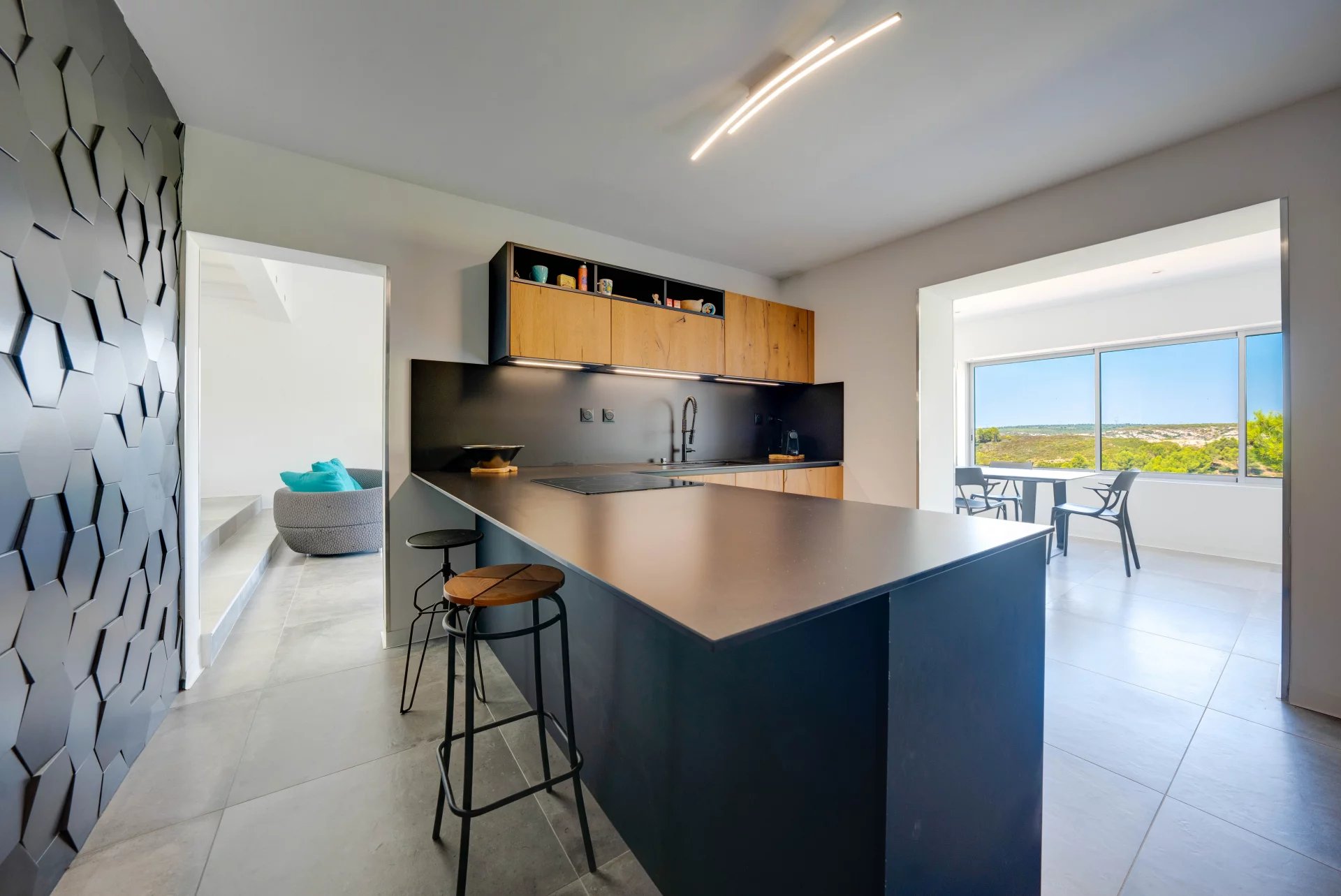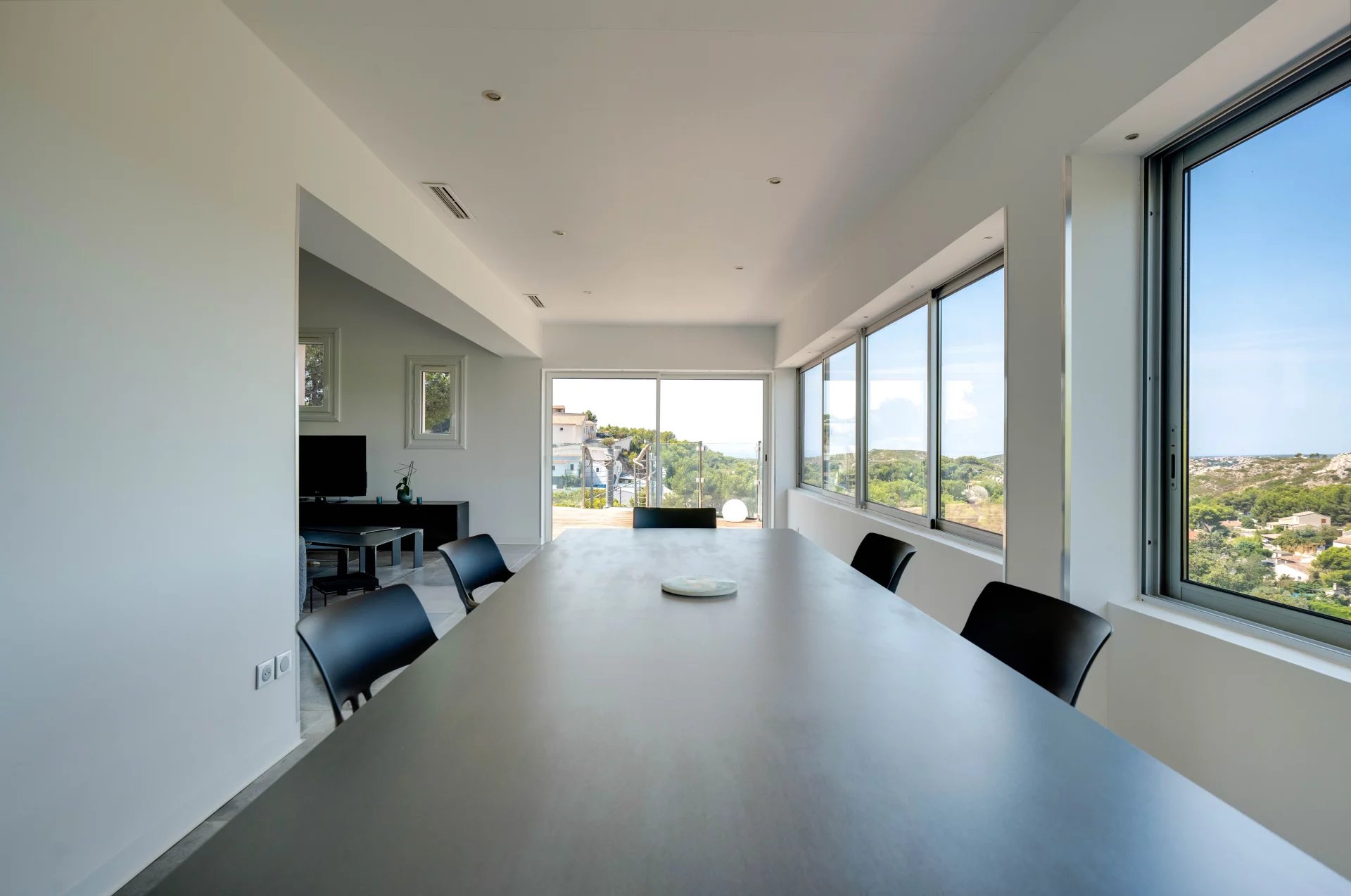Set on a 1,650m2 plot of land with no overlooked views, it offers an exclusive panoramic view of the Mediterranean horizon and is just a few minutes’ walk from the famous calanques of Eaux Salees, La Redonne, Mejean de l’Escalayolle, and the surrounding beaches.