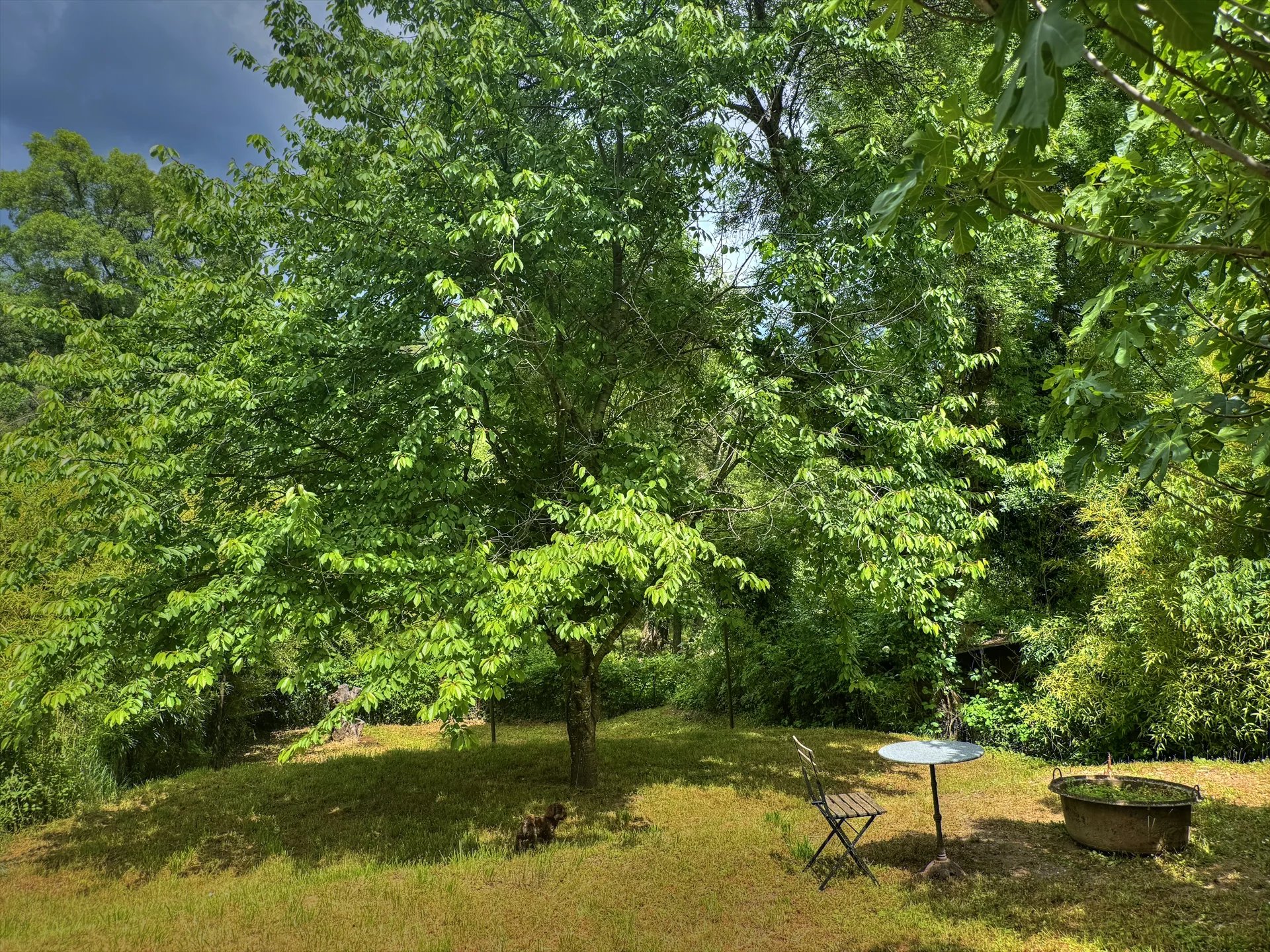 Outside, a 506 m² wooded garden bordering the river promises peace and relaxation. A superb patio hosts a swimming pool and a sunny terrace, ideal for enjoying beautiful days.
