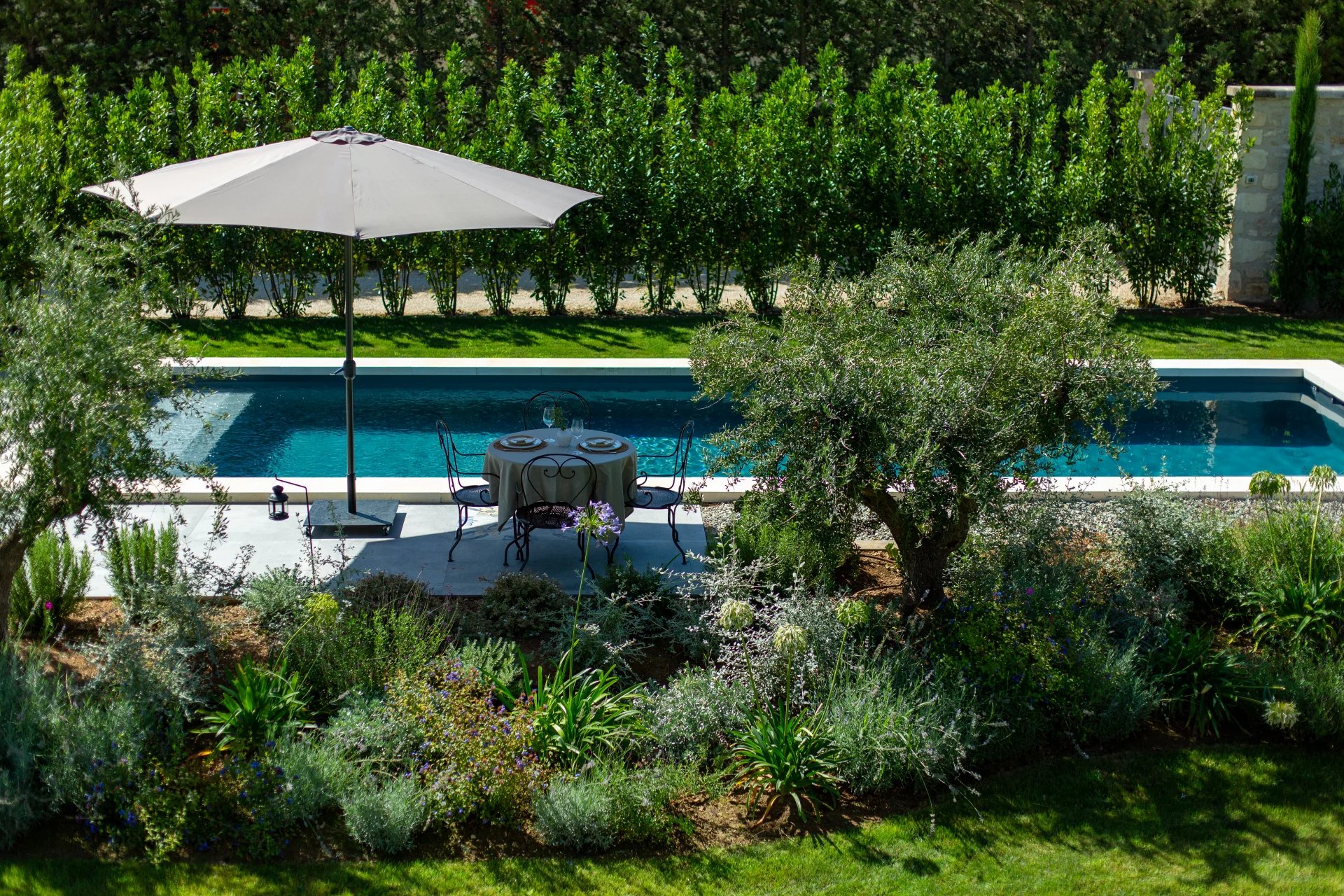 Numerous terraces, both covered and with arbors, allow you to lunch or dine in the shade, while a heated swimming pool blends harmoniously into the landscaped, bucolic garden. For parking, up to six vehicles can be parked without obstructing the view.