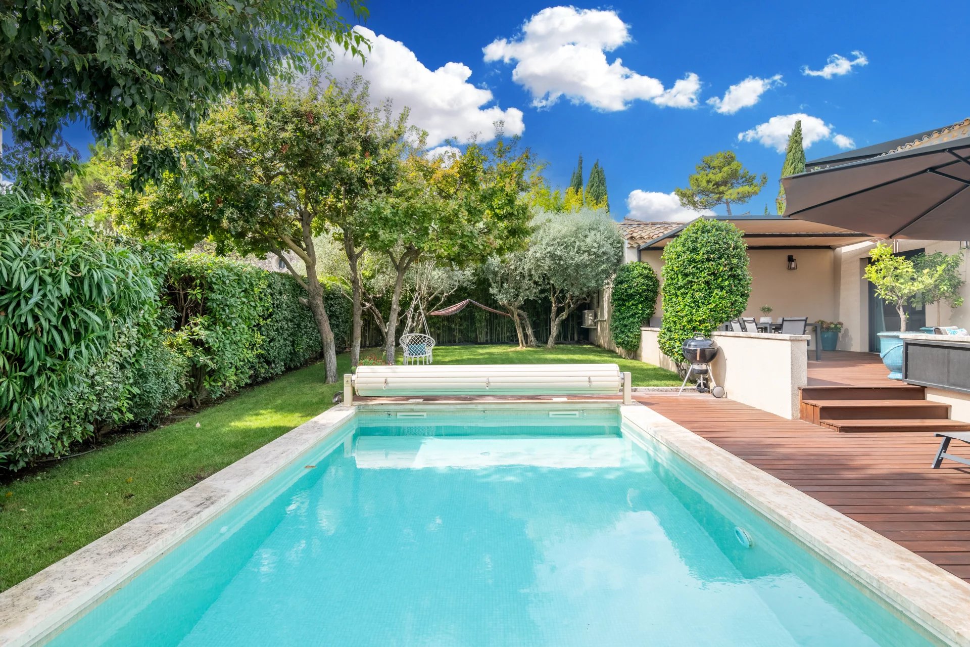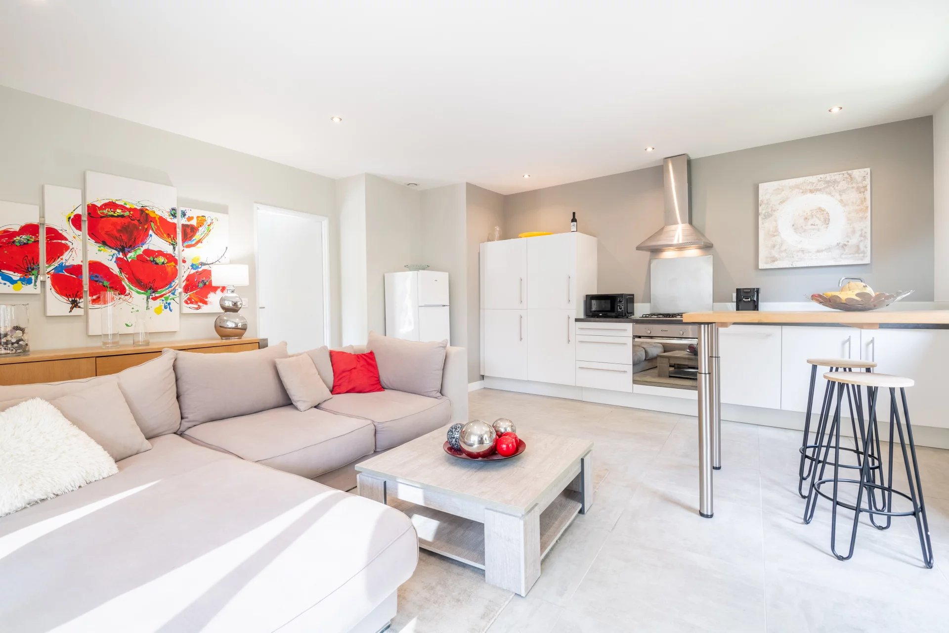 A stylish property fitted out with quality materials. The exterior reflects a typically Provencal style while the contemporary interior has sleek clean lines. The main house has an open-plan kitchen and living area, and there are 4 bedrooms including a master suite with dressing room and shower room.