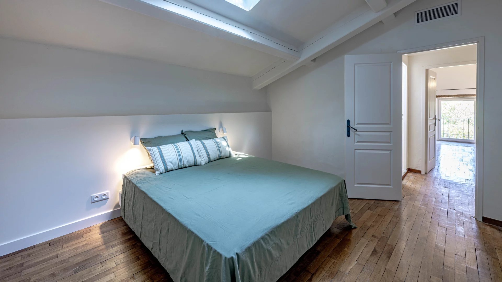 Upstairs, there are 4 further bedrooms: a large bedroom (41m2) with en-suite shower room and a comfortable mezzanine that can accommodate up to 4 single beds (ideal for a children’s dormitory), another en-suite bedroom (29m2) with bathroom and 2 further bedrooms that share a shower room. There is also another en-suite bedroom (34m2) with shower room in the orangery.