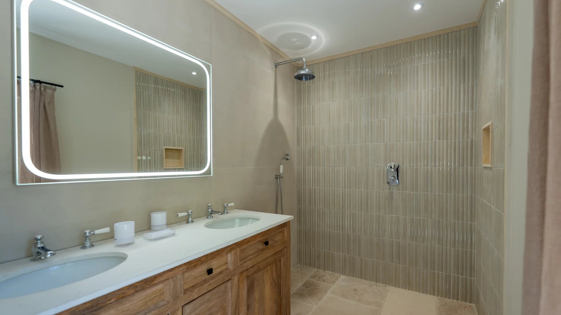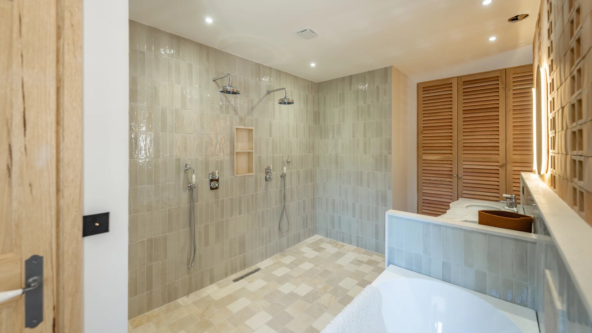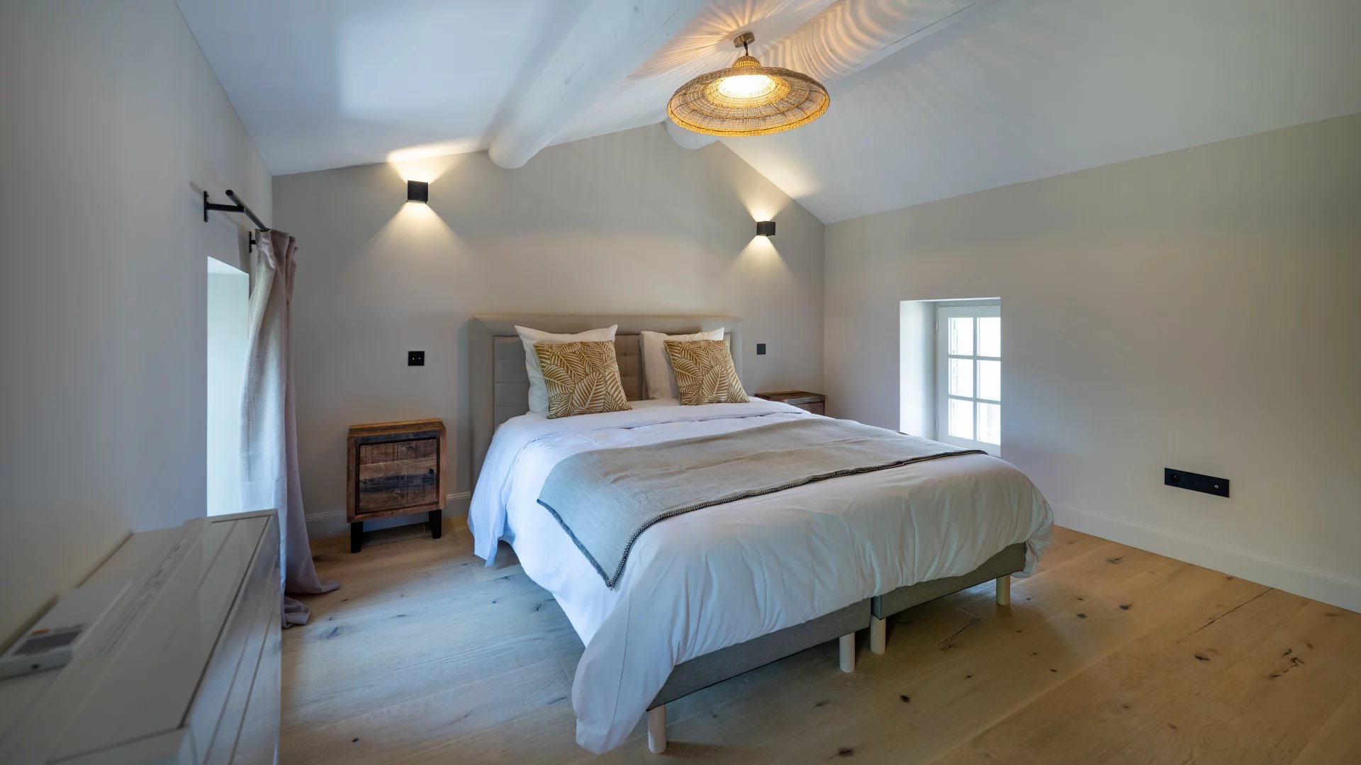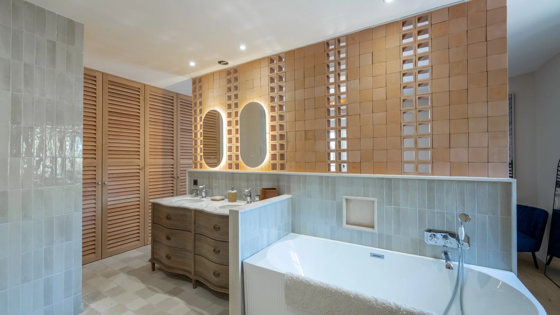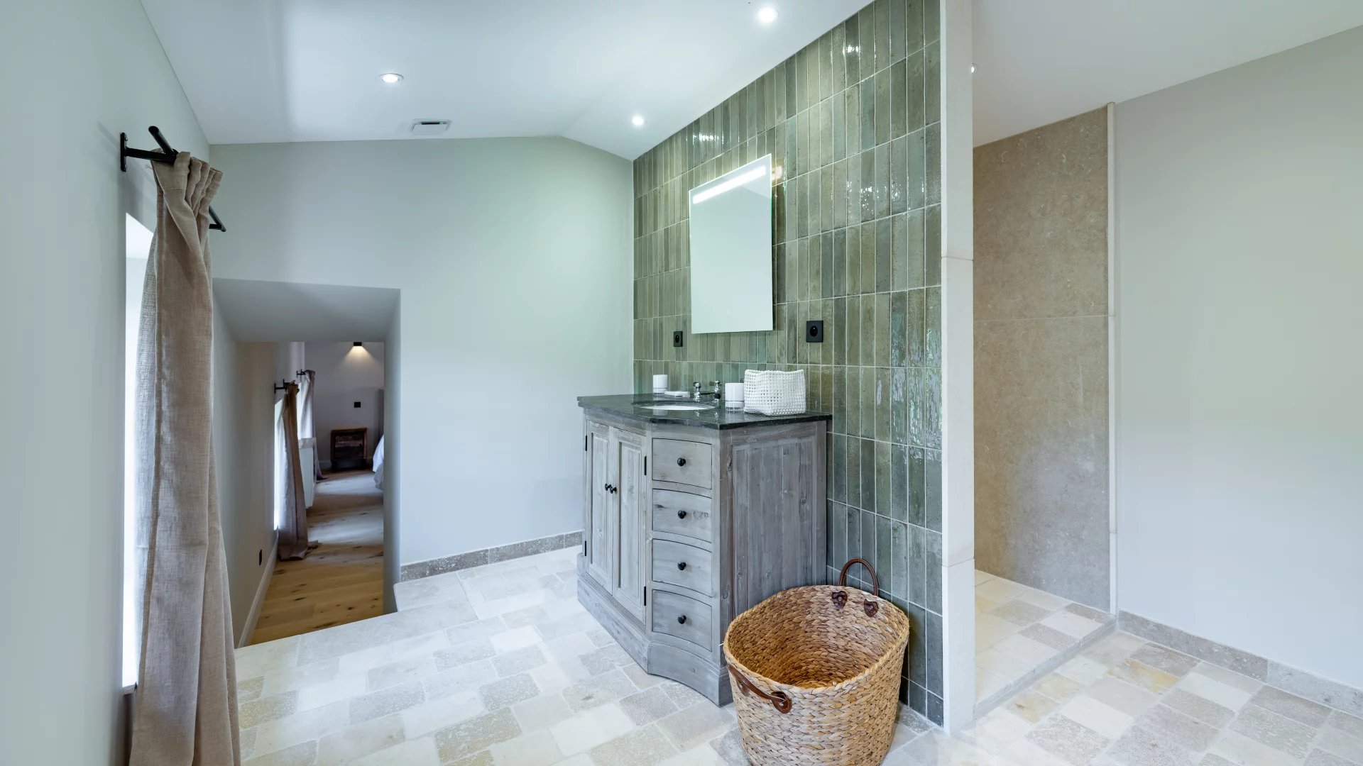 Spanning over 310 m2, the house opens onto a magnificent double-height living room with exposed beams, creating a grand yet inviting atmosphere. The spacious kitchen and dining area set the stage for convivial gatherings, while six en-suite bedrooms — including a ground-floor suite and an independent guest suite — offer privacy and comfort for family and friends.