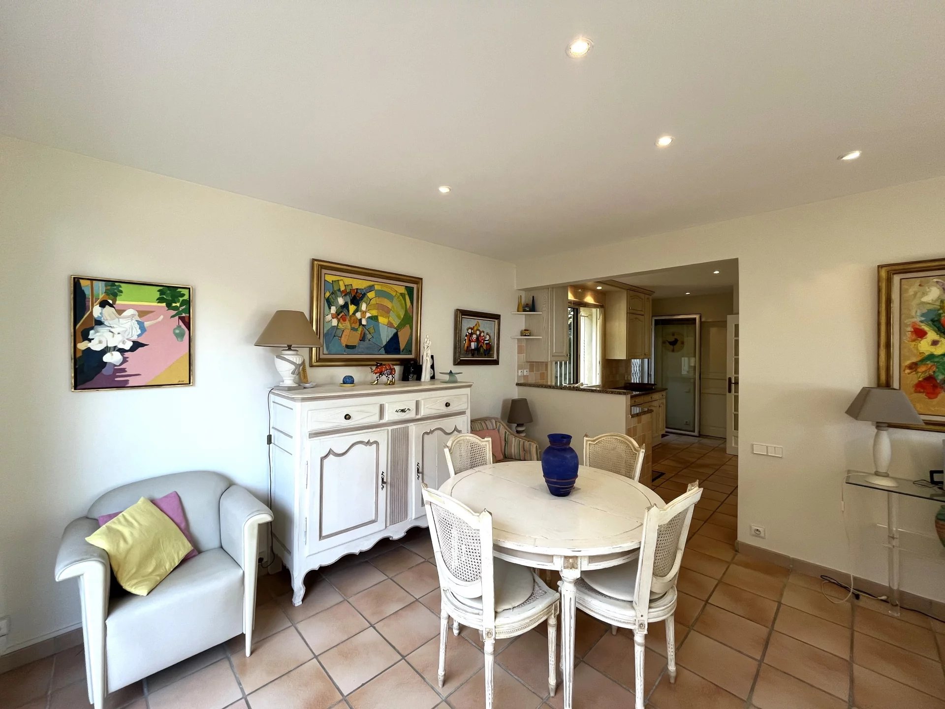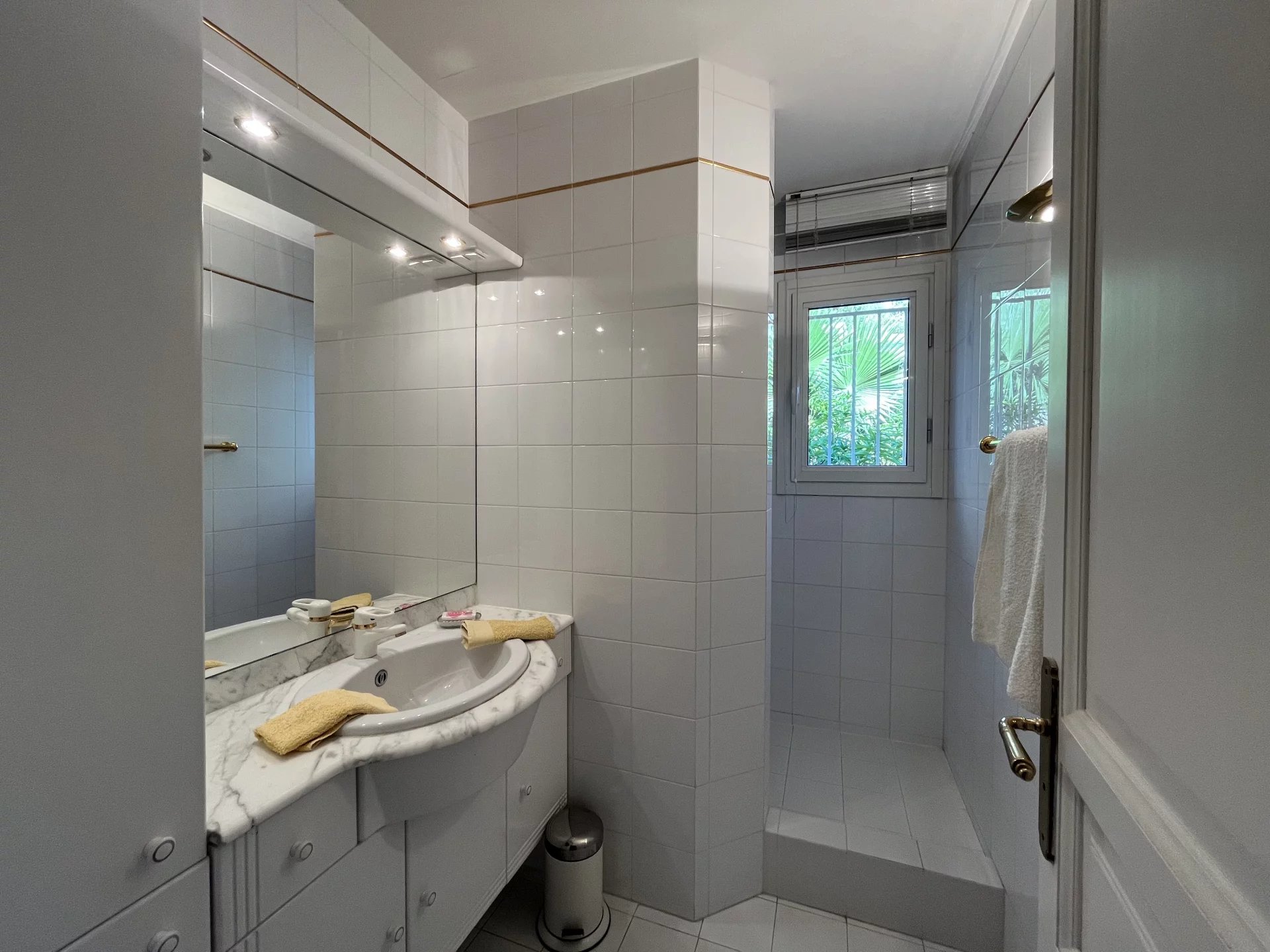 On the garden floor, there is a pleasant living room opening onto a large corner terrace and a garden at the rear, semi-open fitted kitchen, bedroom with bathroom, and guest toilet.