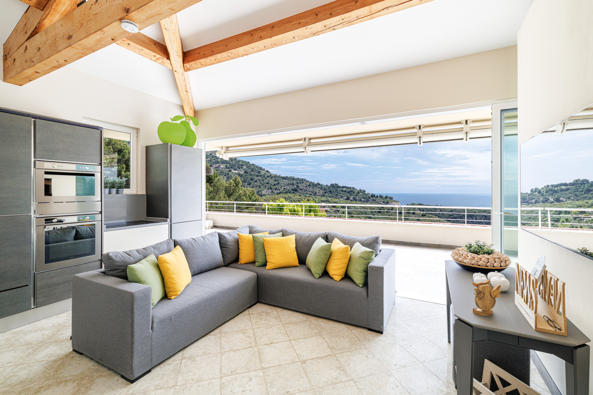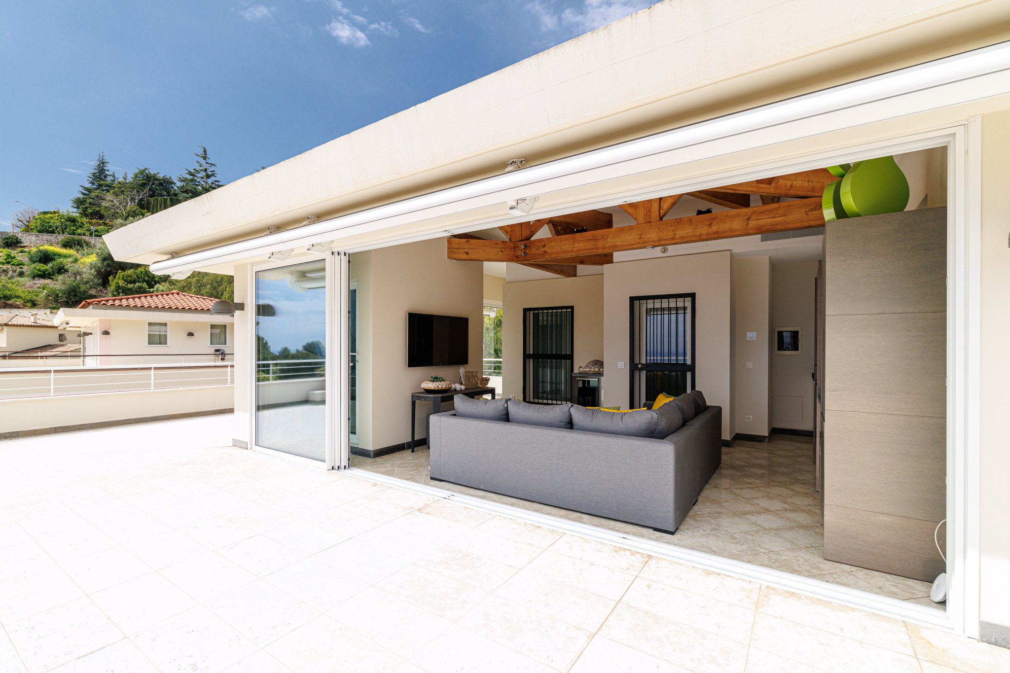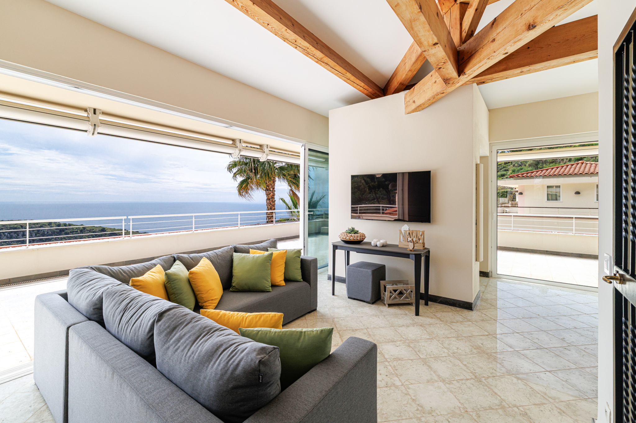 A spectacular roof terrace completes the property, featuring a fully equipped summer kitchen and lounge area—perfect for entertaining or dining while enjoying uninterrupted sea views.