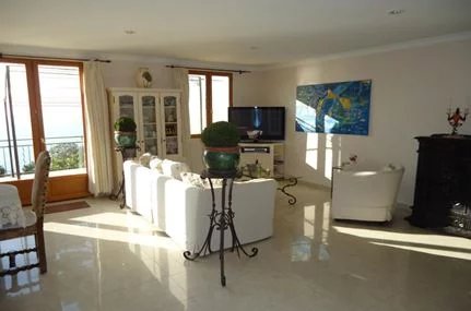 Eze Bord de Mer, in a small co-ownership of 3 residential units, charming semi-detached house of 131 m2, built on 3 levels, offering a beautiful sea view, pleasant terraces, a small garden and a small swimming pool.