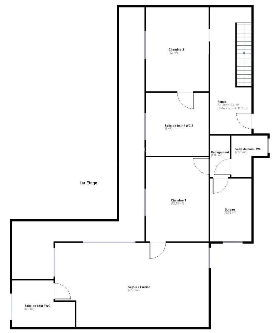 Garden level (annexes) : 1 office and 1 bedroom with shower. A superb family property with space for the family and guests as there are 4 parking spaces.