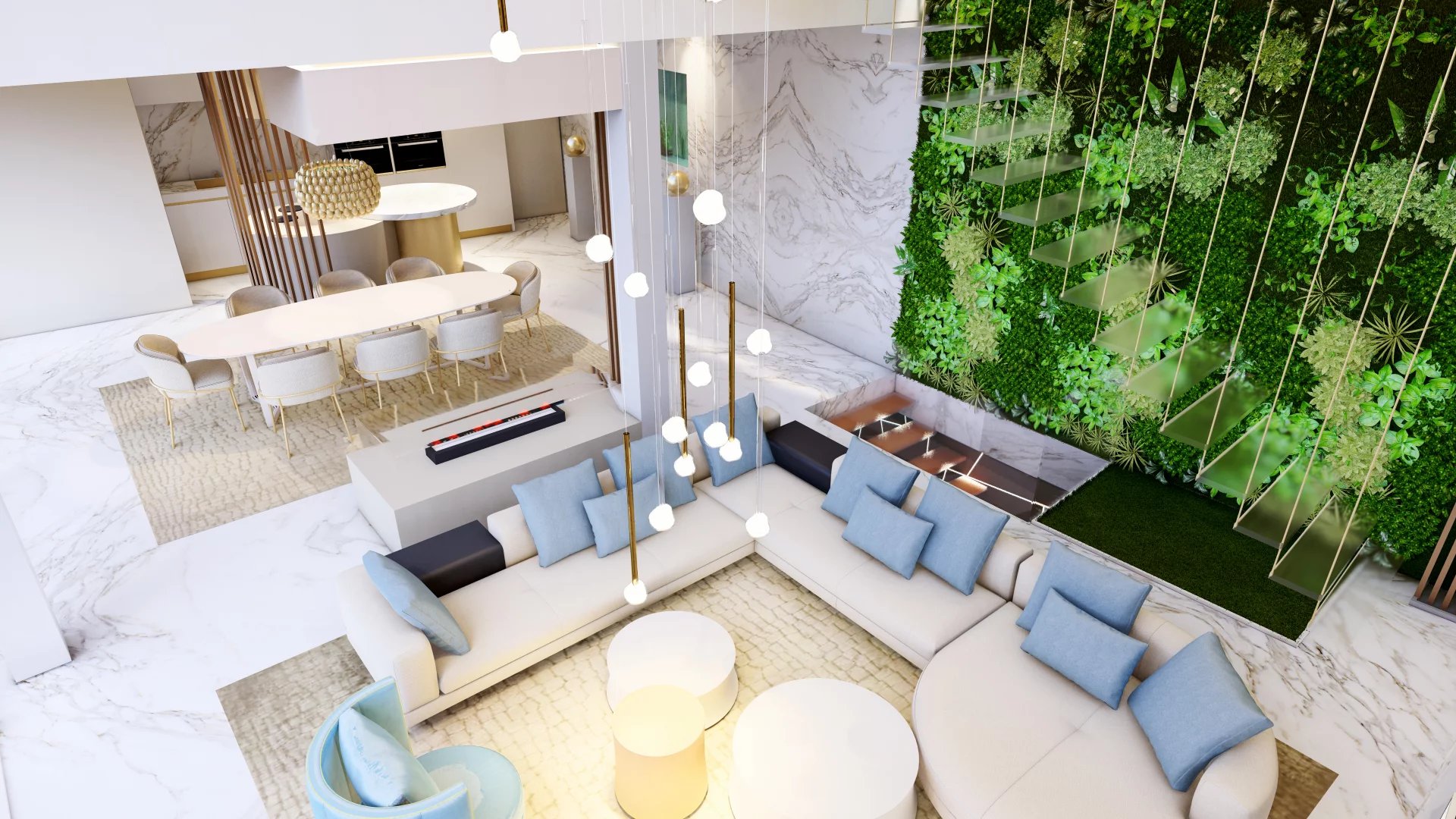 This exclusive project was designed to promote your well-being by Professor Alan Dilani, architect and public health researcher. Thanks to the curves and noble materials used in the design such as wood, marble, glass, living in this unique property is a real privilege.