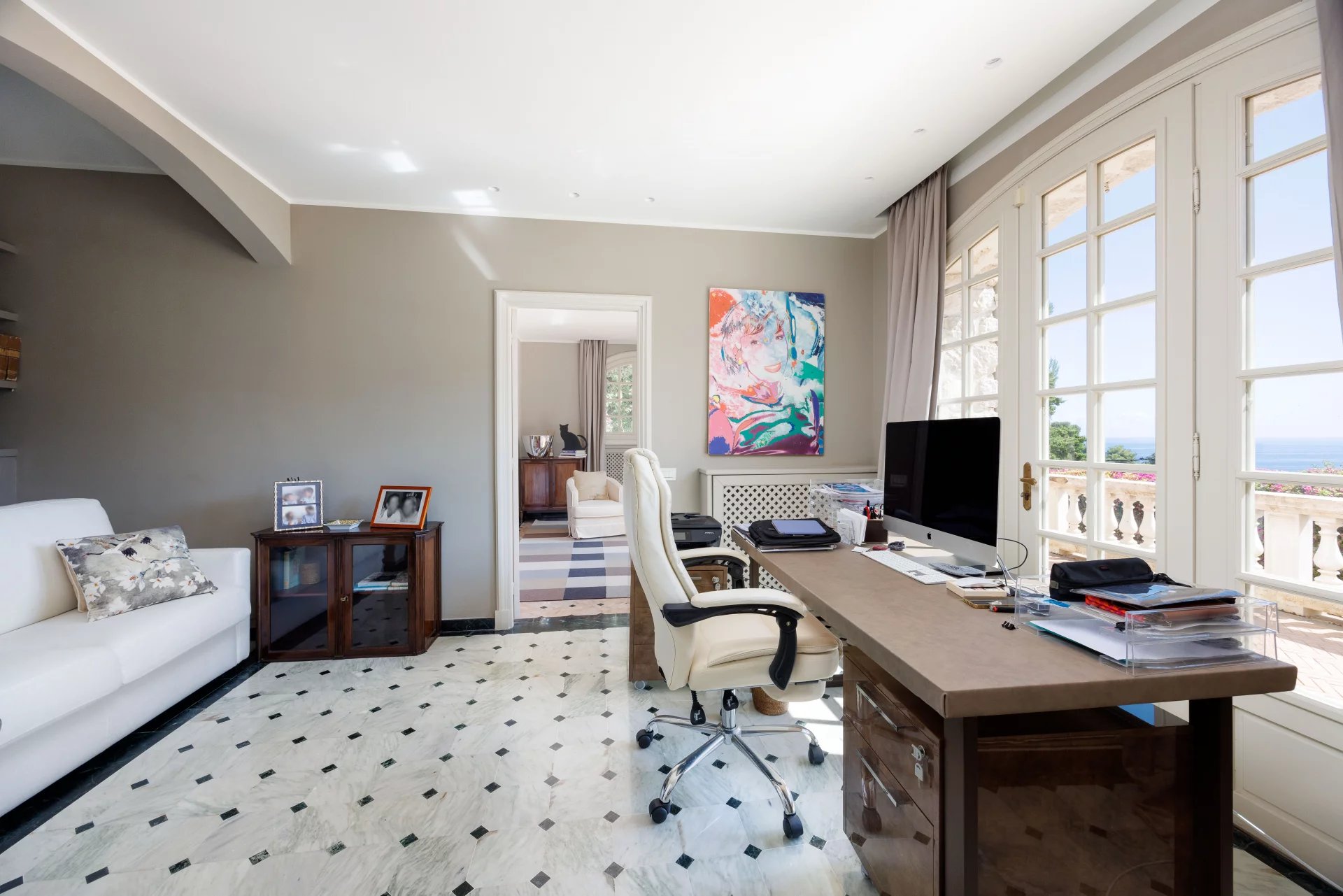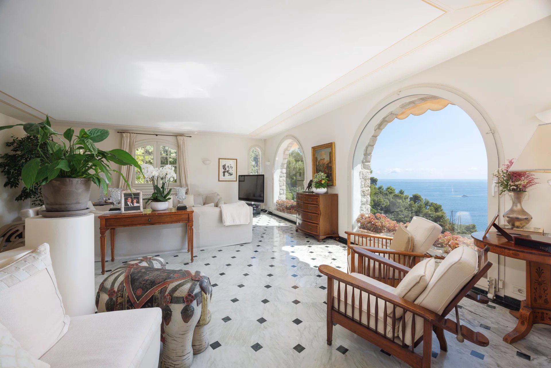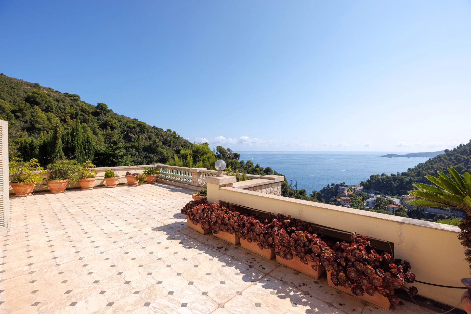 But what you’ll appreciate most of all about this 460 m2 villa is the breathtaking view over the Mediterranean Sea, with Saint-Jean-Cap-Ferrat in the background.
