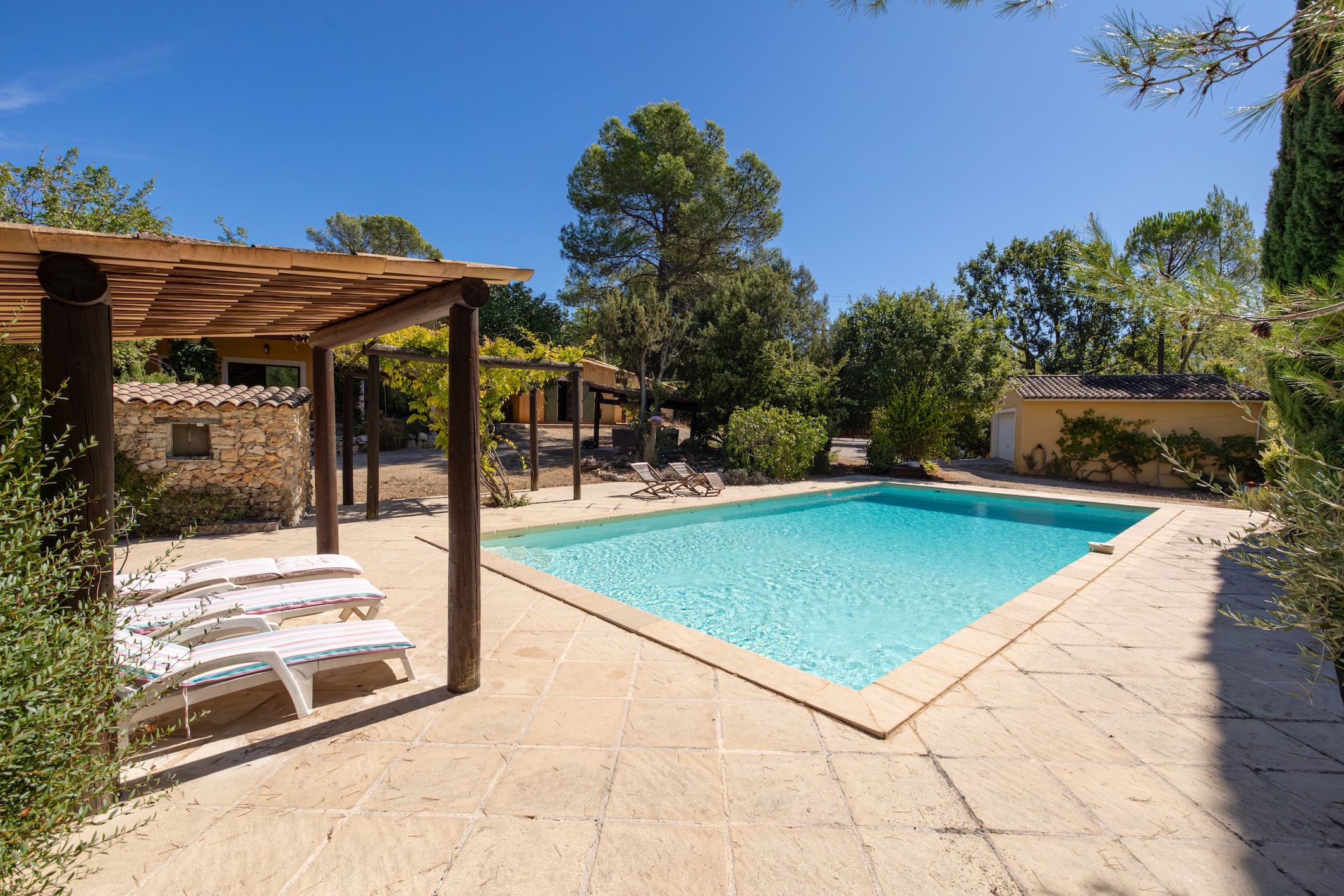 This charming, four bedroomed provencal property is located close to the sought-after hilltop village of Fayence and offers approximately 200m2 of living space including an adjoining guest house of 50m2.
