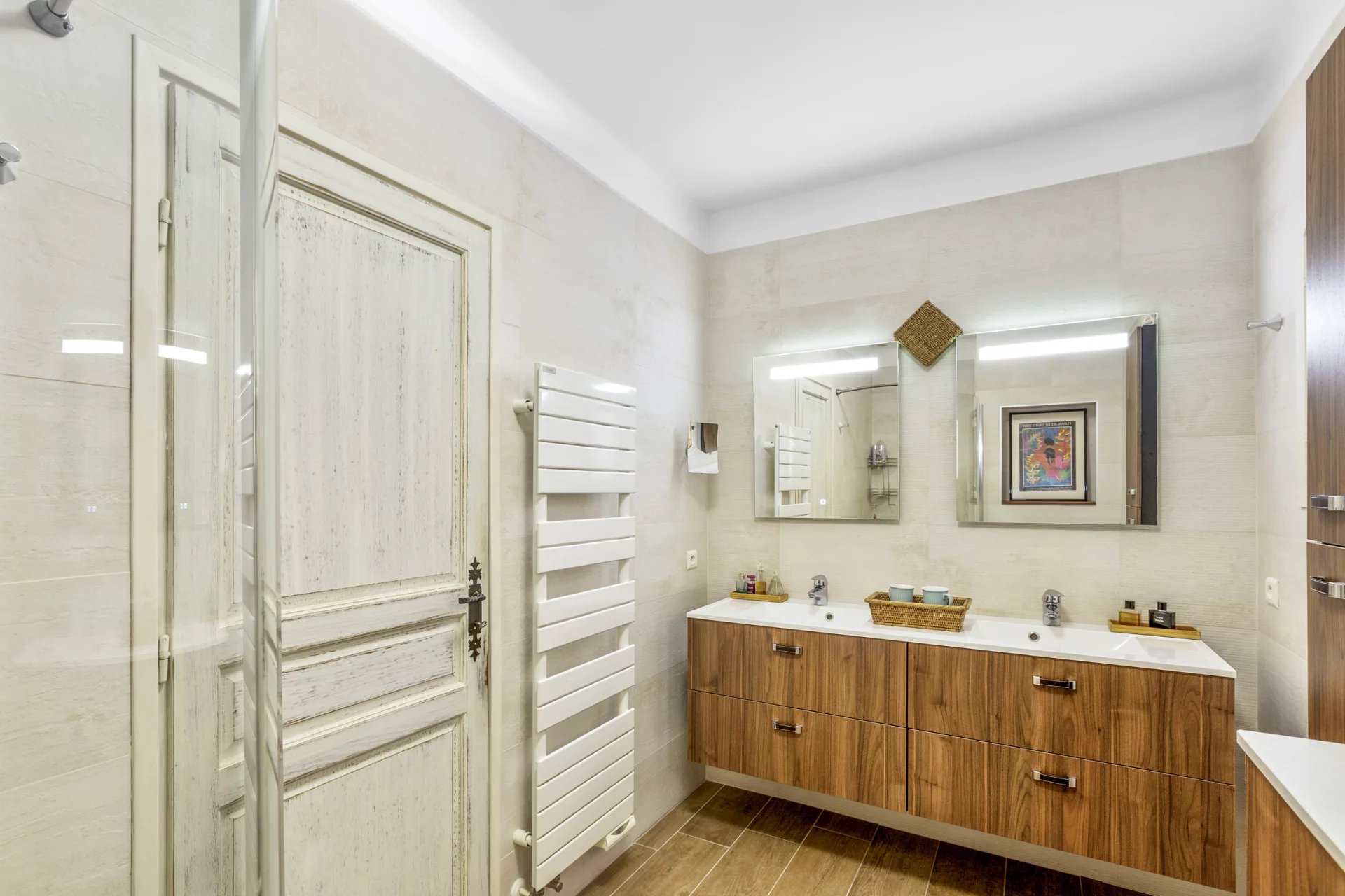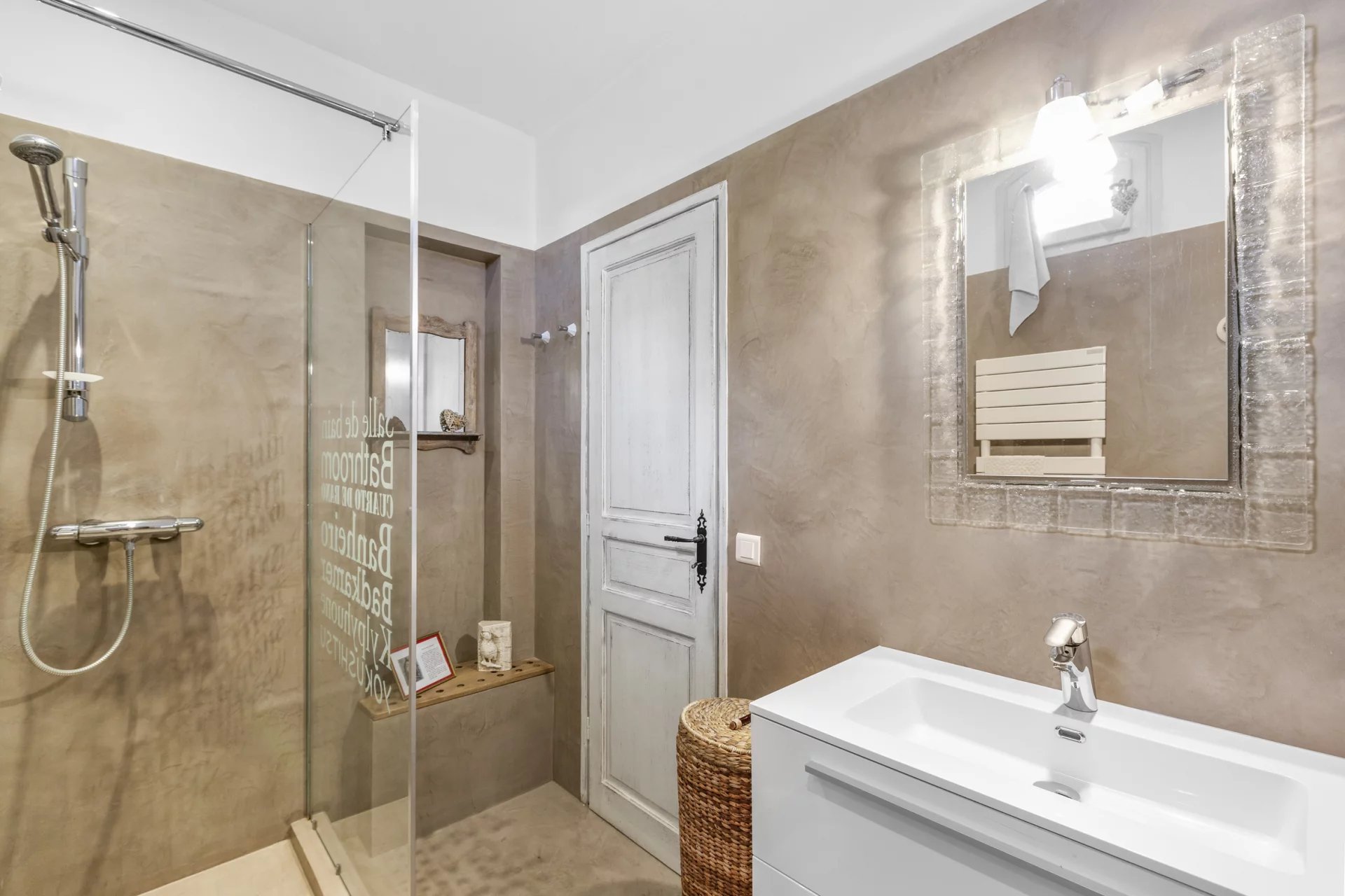 The upper level leads to an office area. Two more bedrooms and another shower room. There is currently another big room with access to a large terrace. It can therefore be used both as a salon or a fourth bedroom. All the piping is there and you can add a kitchen.