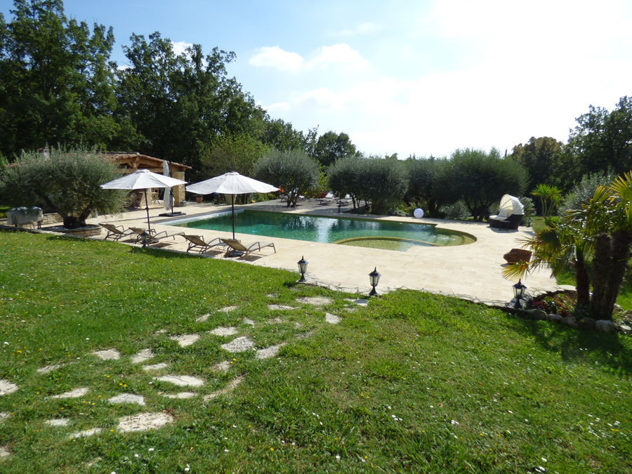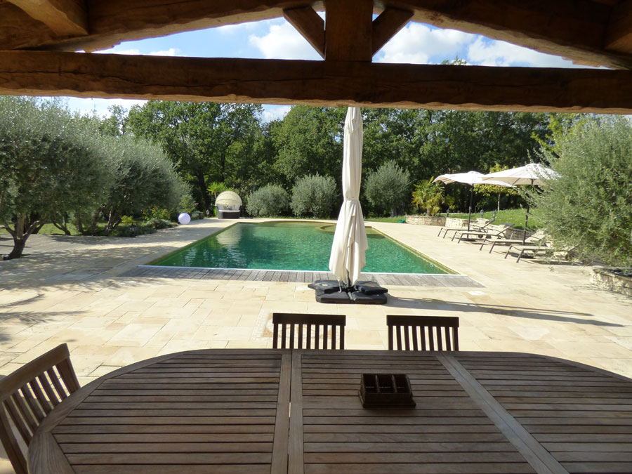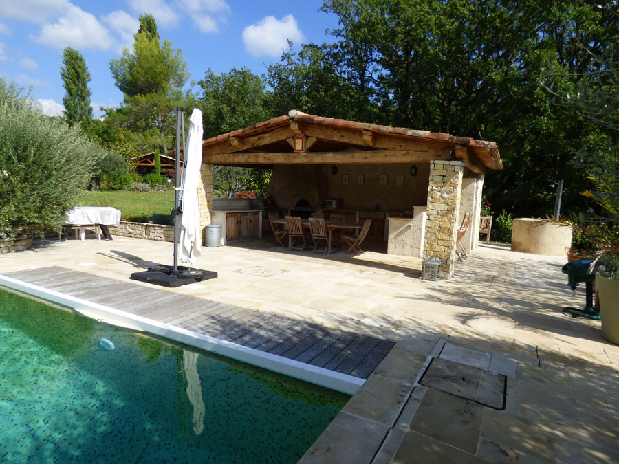 Swimming pool (12 x 6), vast summer dining area and pool-house.