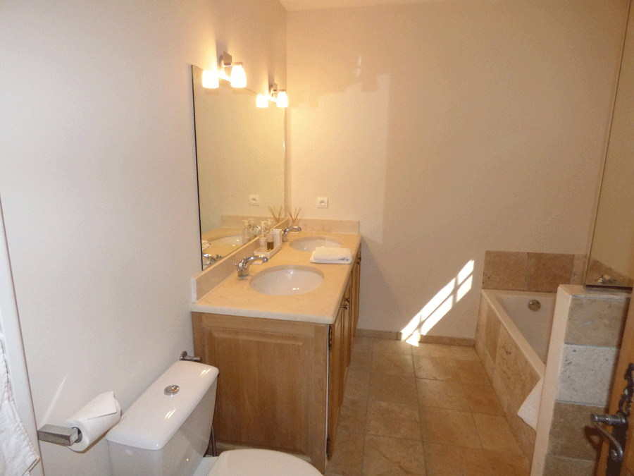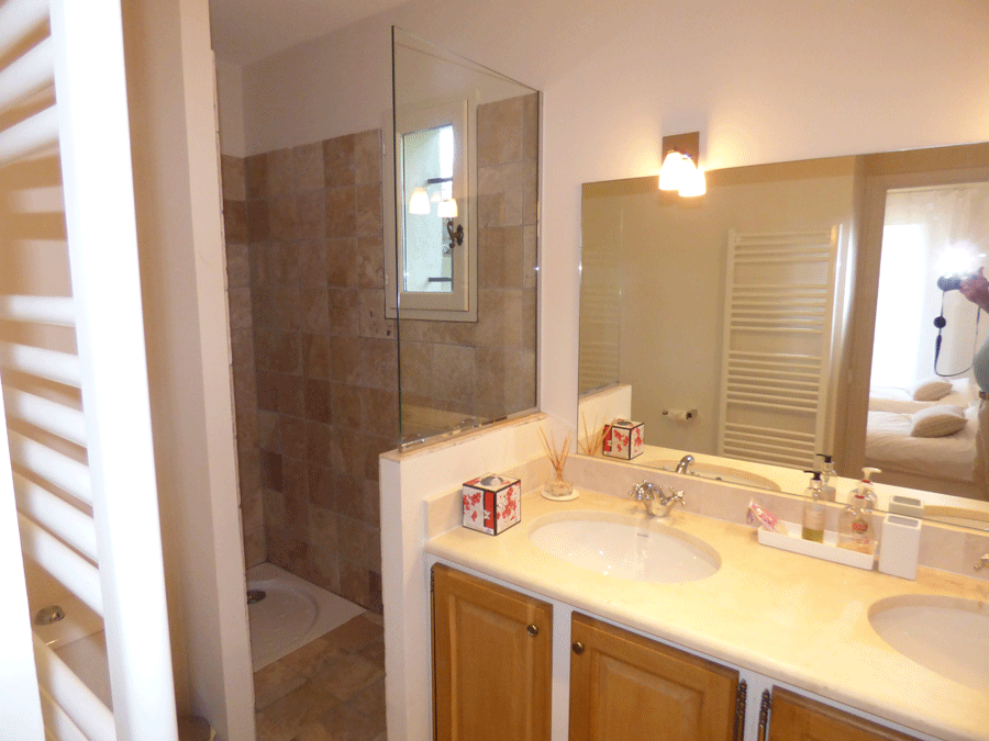Upstairs: three bedrooms, one of which opening onto a terrace, each with its own shower room.