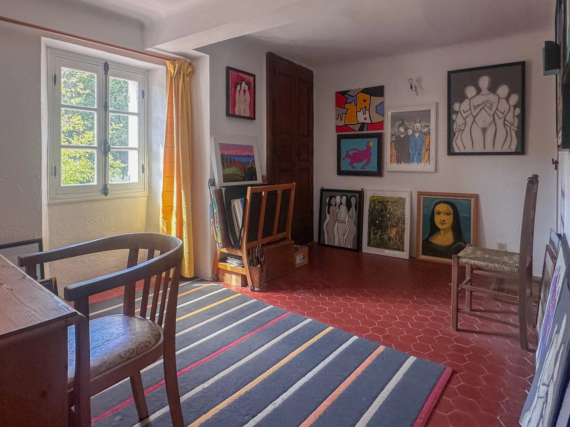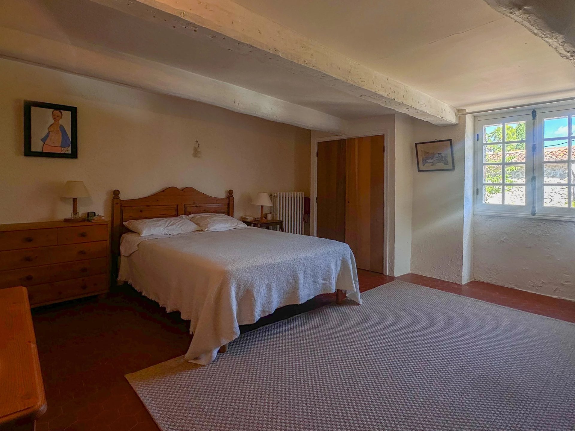 The layout is unique, with two separate night areas. In the first area, you will find a master suite with shower room and toilet, as well as a room currently used as an artist’s studio. From this level, there is also access to a convertible attic, which could easily become an additional bedroom. On the other side of the house, a second staircase leads to the second area and offers two comfortable bedrooms and a shower room.