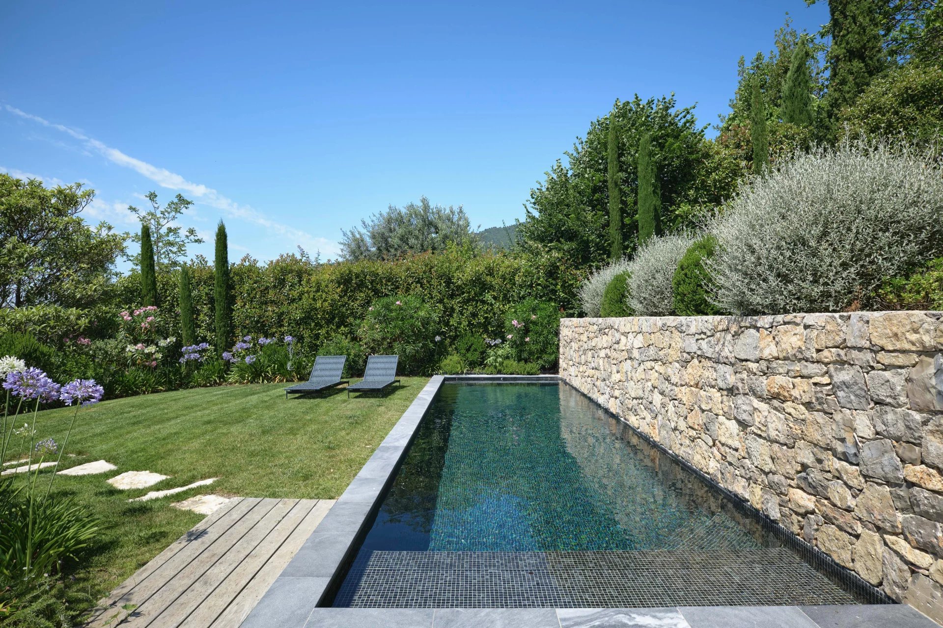 Less than an hour from Cannes, this fully renovated 6,706 m2 estate offers a peaceful view of the surrounding countryside of Fayence.