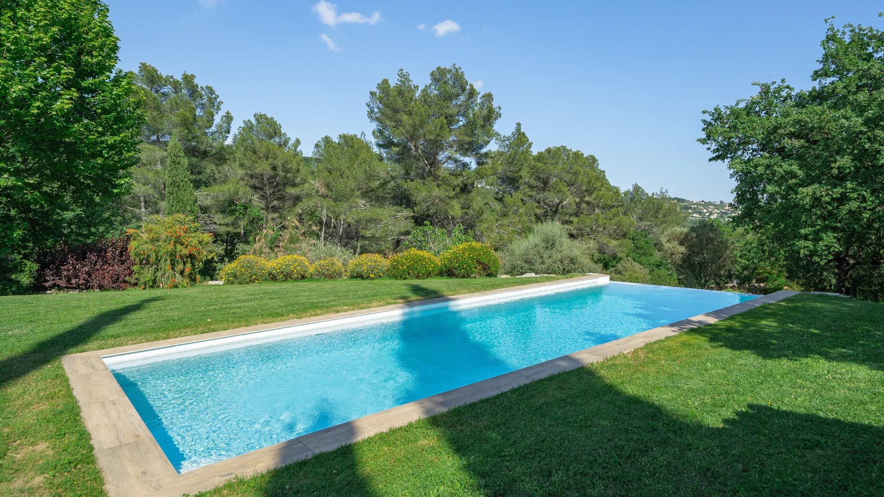 Nestled on a beautifully landscaped plot of over one hectare, adorned with olive and century-old oak trees, the property is completed by a heated swimming pool, perfect for year-round relaxation.