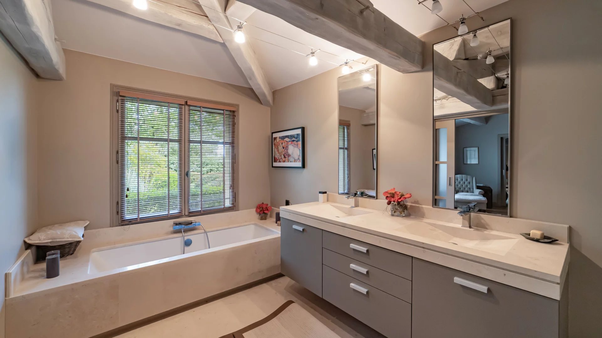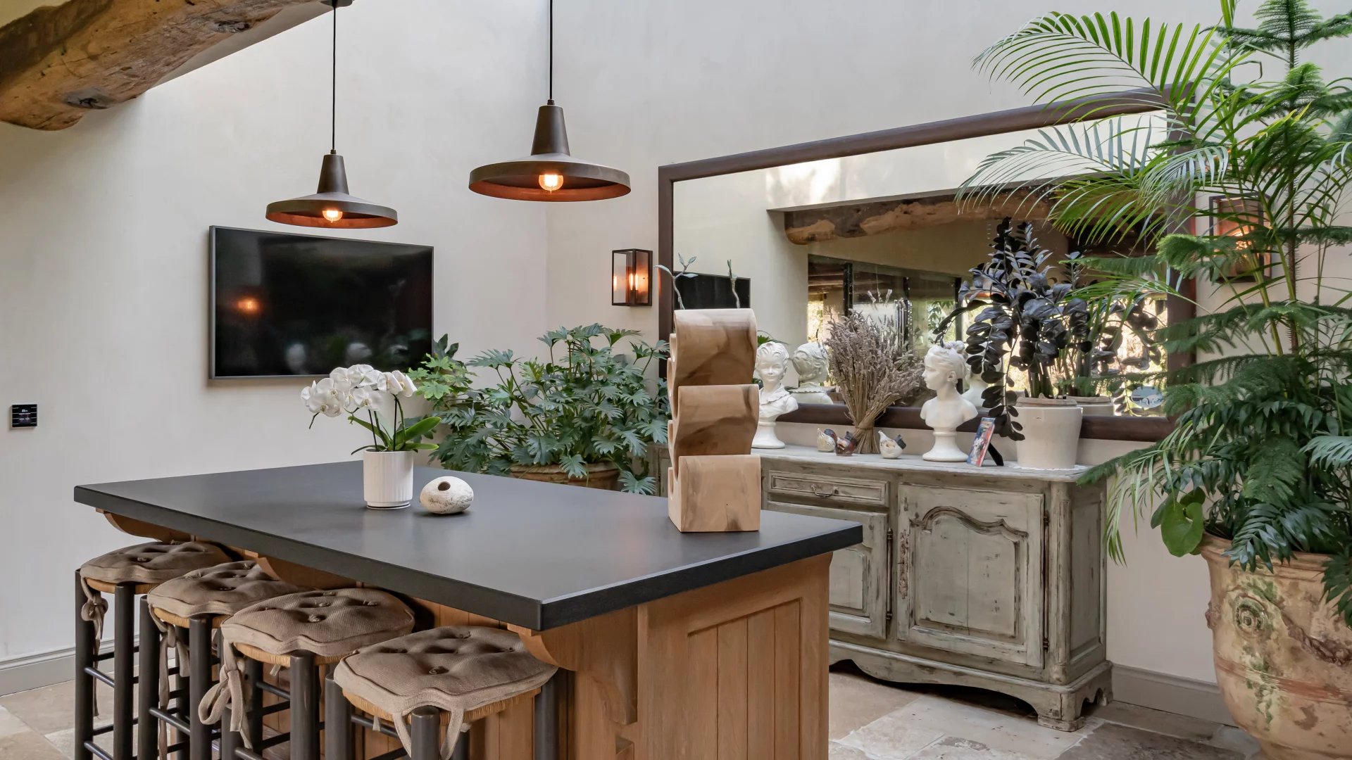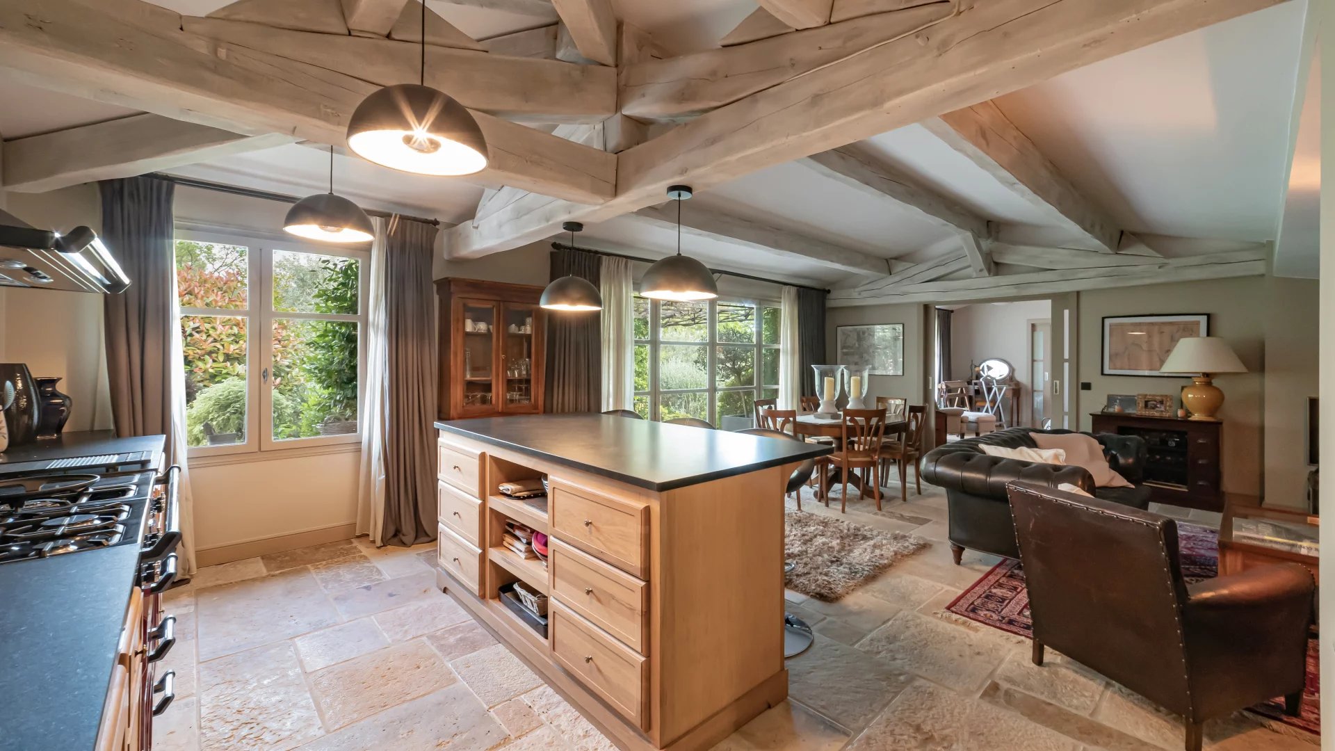 From the moment you enter, the volumes are impressive: a vast reception area of over 100 m2 bathed in natural light opens onto an elegant covered terrace overlooking a remarkable landscaped garden. The fully-equipped kitchen extends this elegant, convivial space.