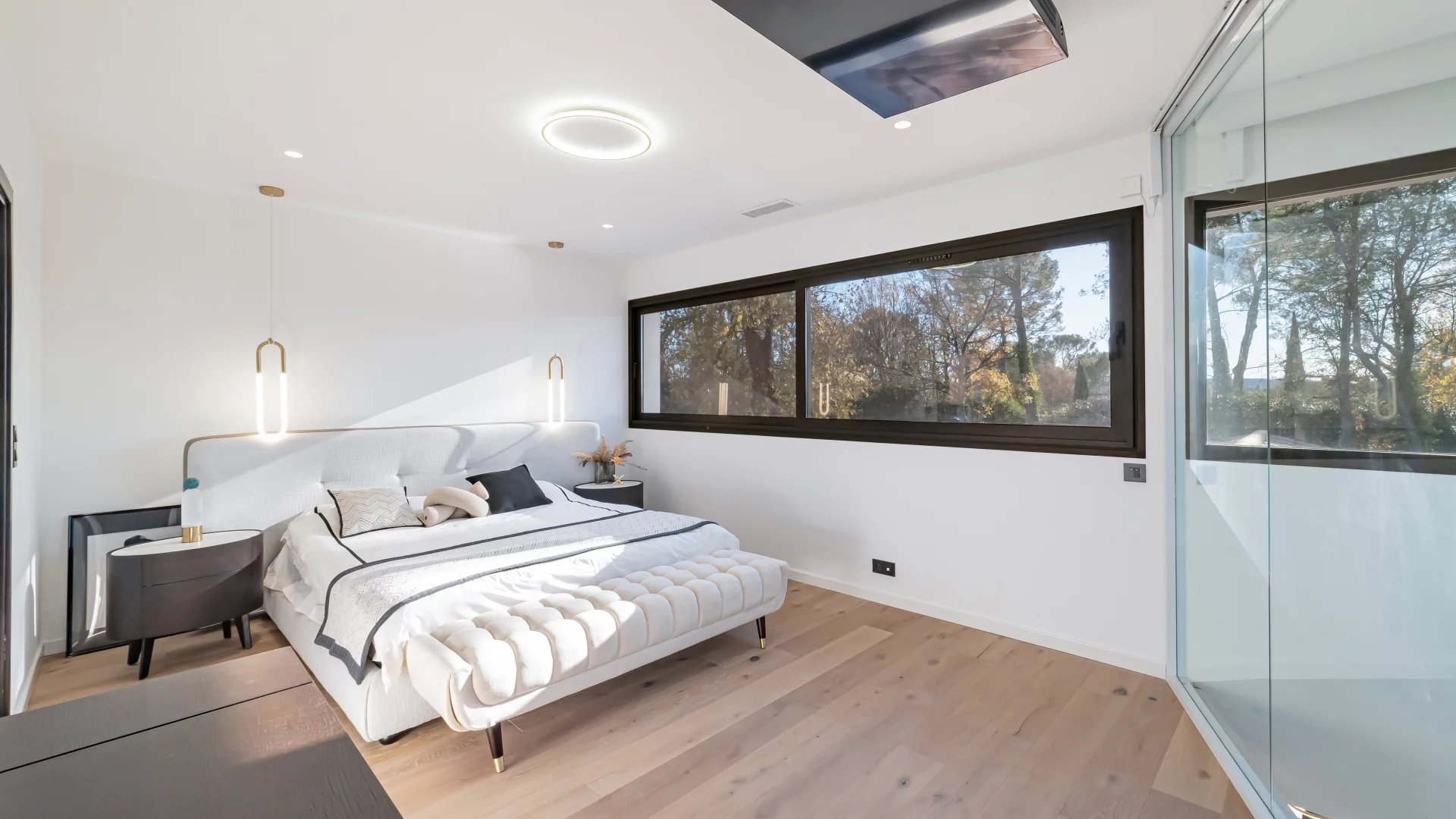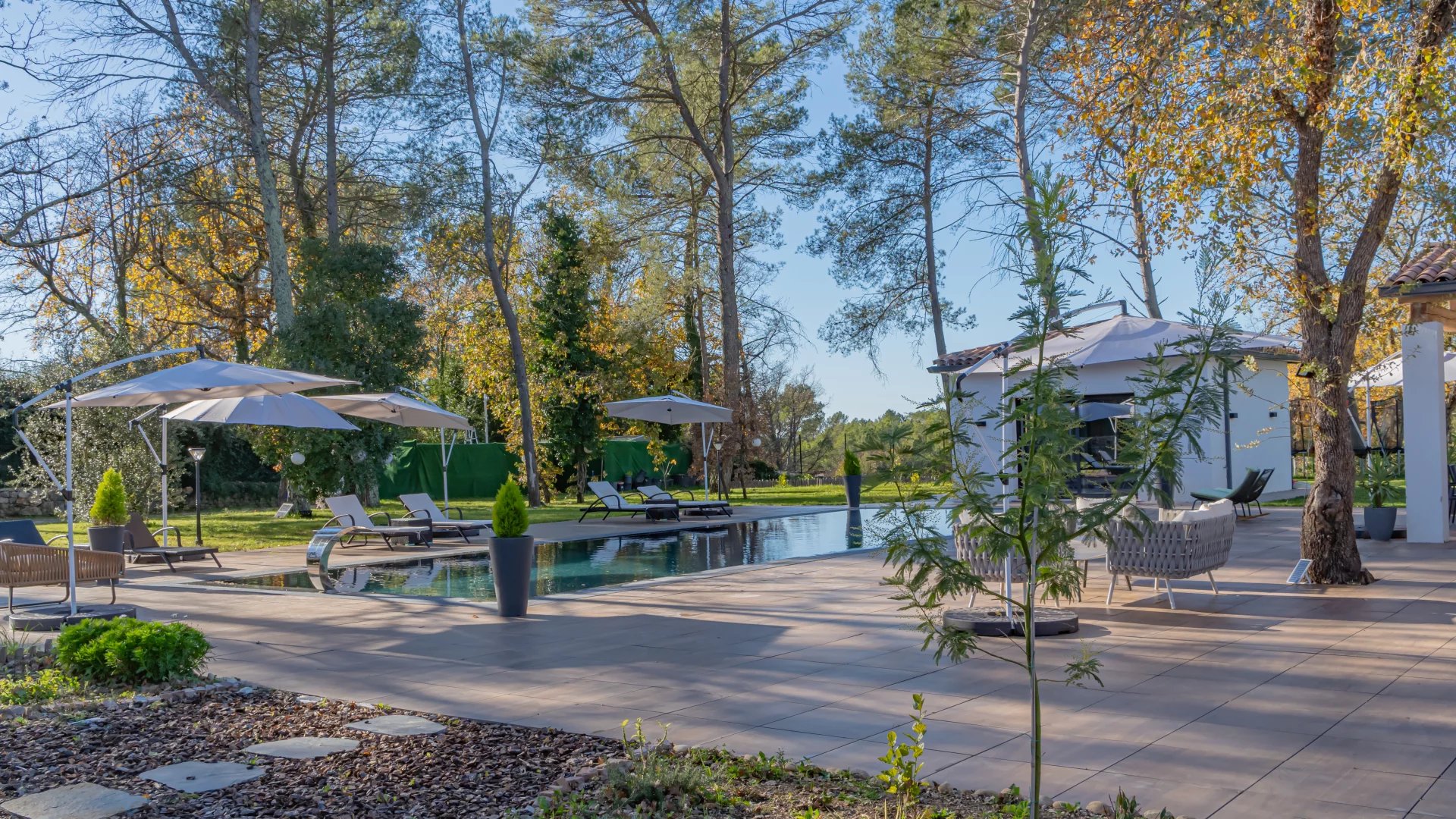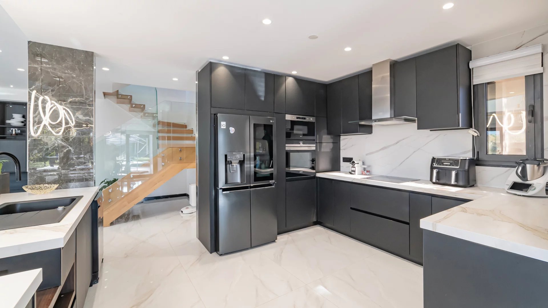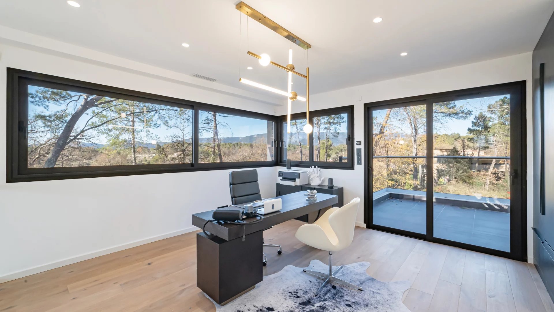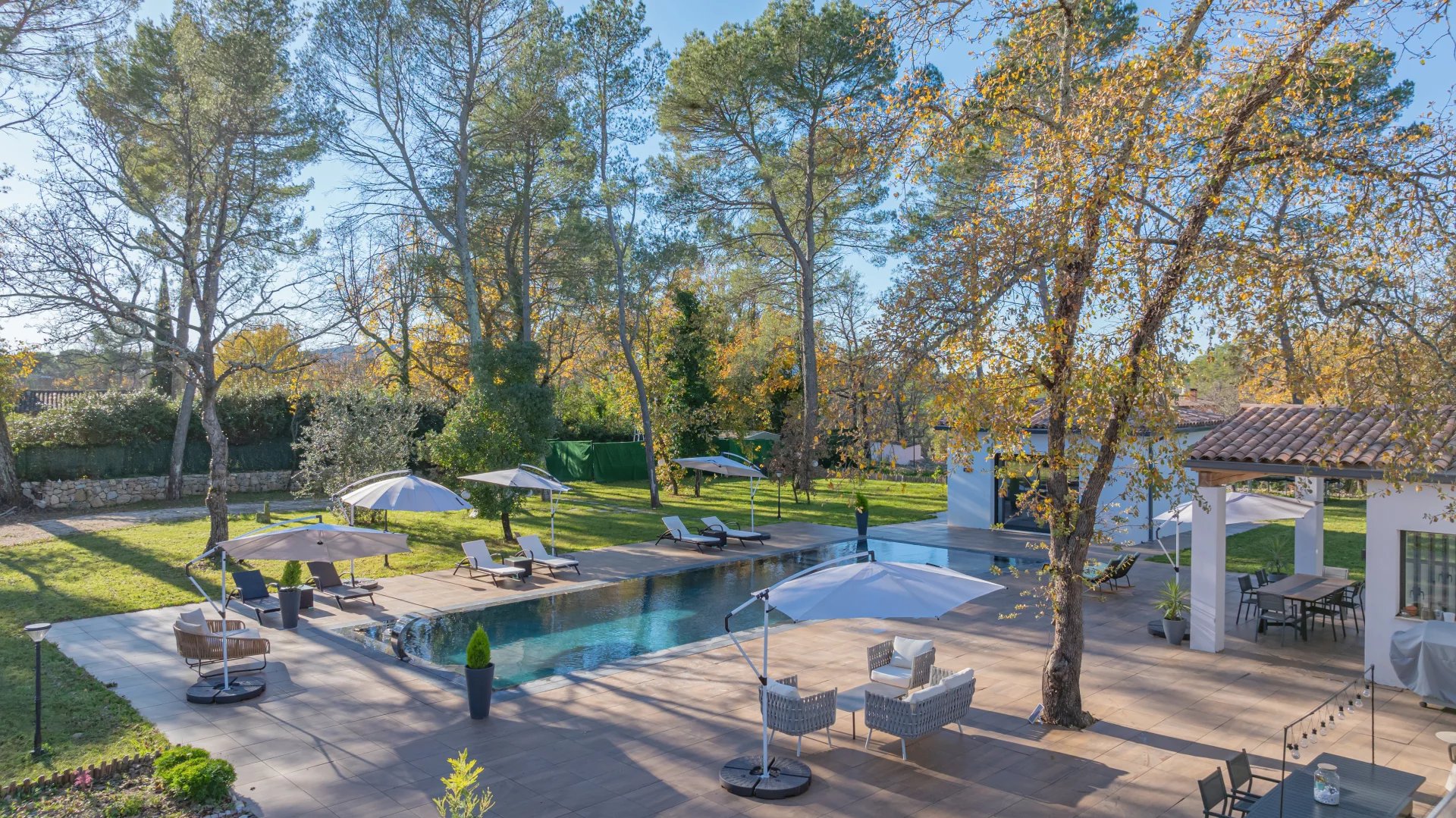 In a quiet residential area close to the Terre Blanche estate, architect-designed villa built in 2023 offering 370 m2 living space on a 4200 m2 flat plot.