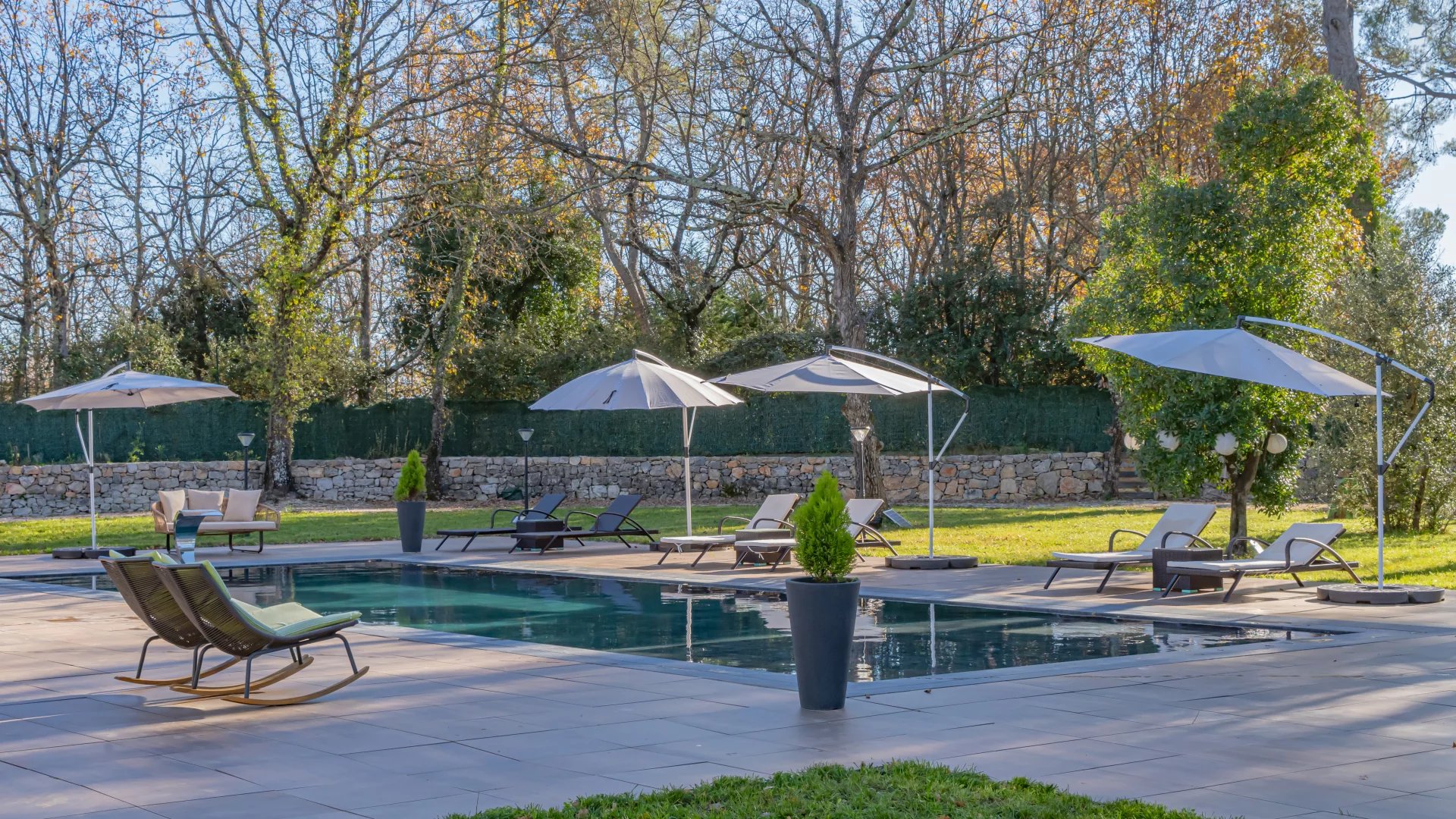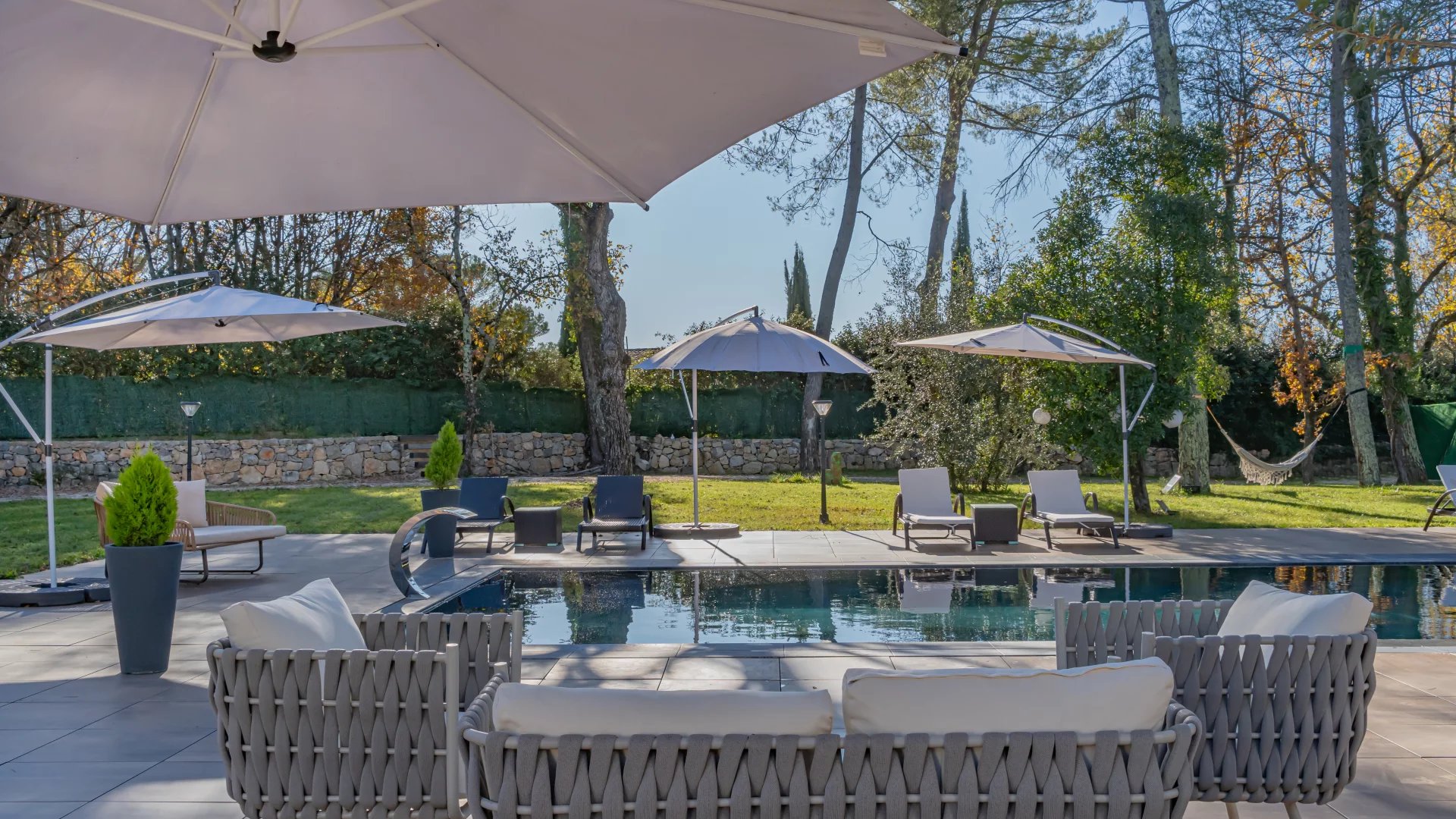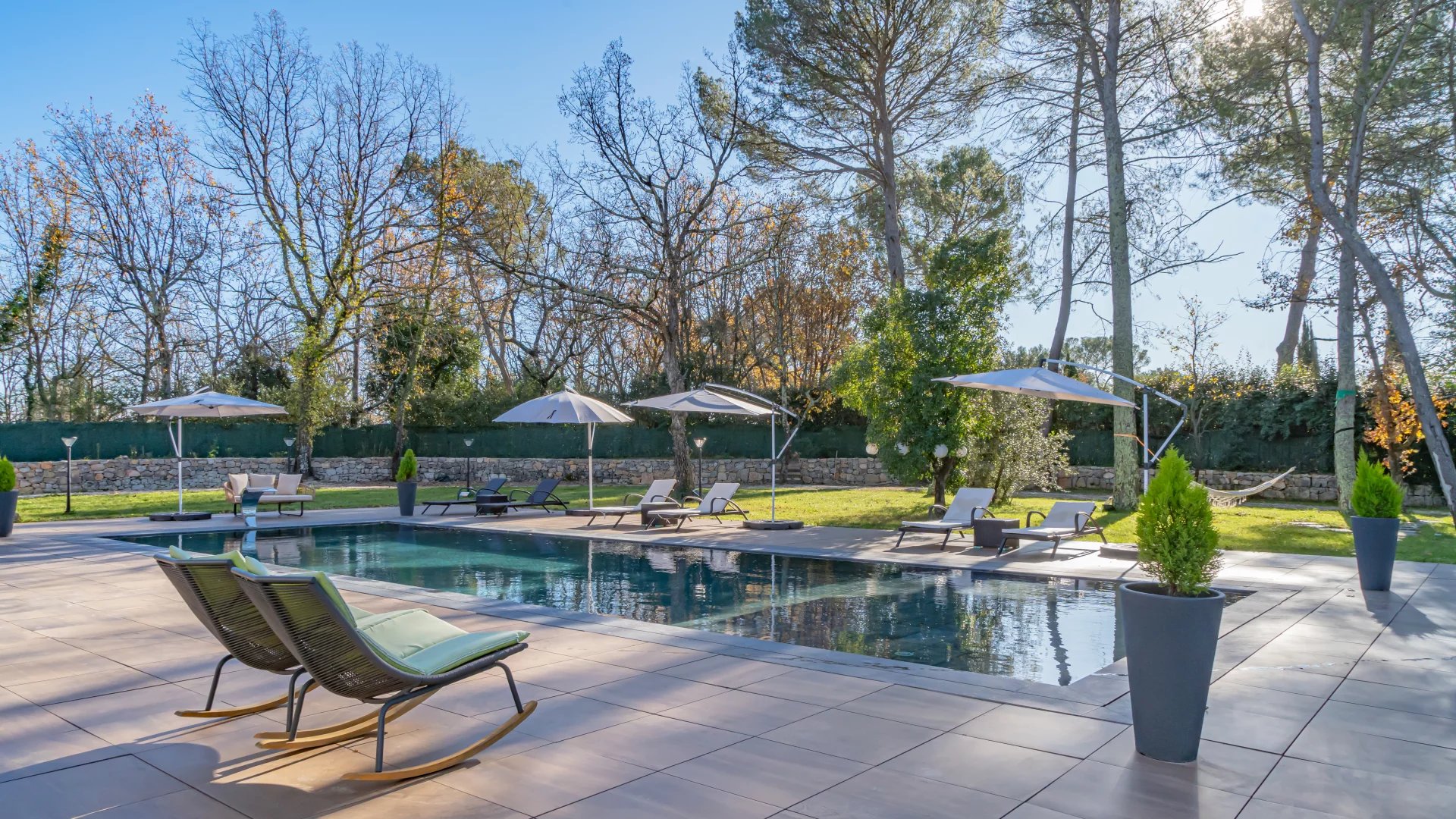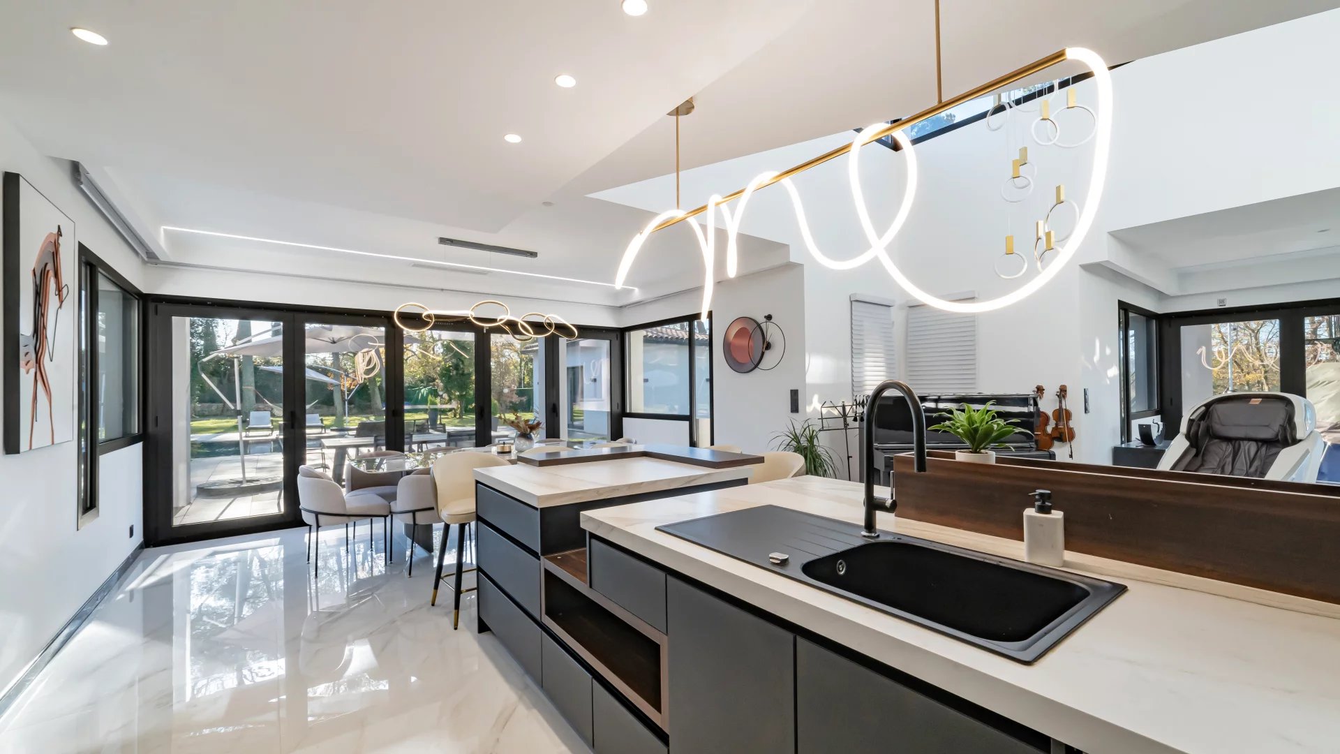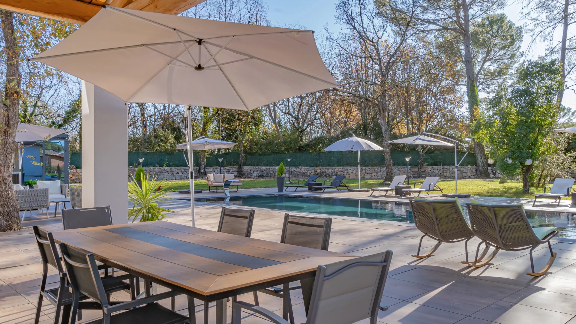 In a quiet residential area close to the Terre Blanche estate, architect-designed villa built in 2023 offering 370 m2 living space on a 4200 m2 flat plot.